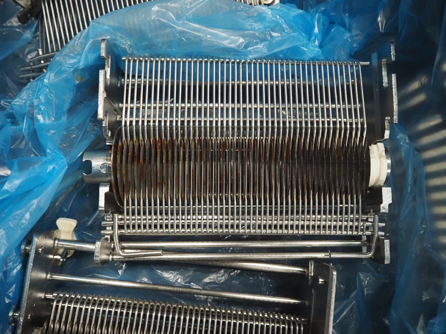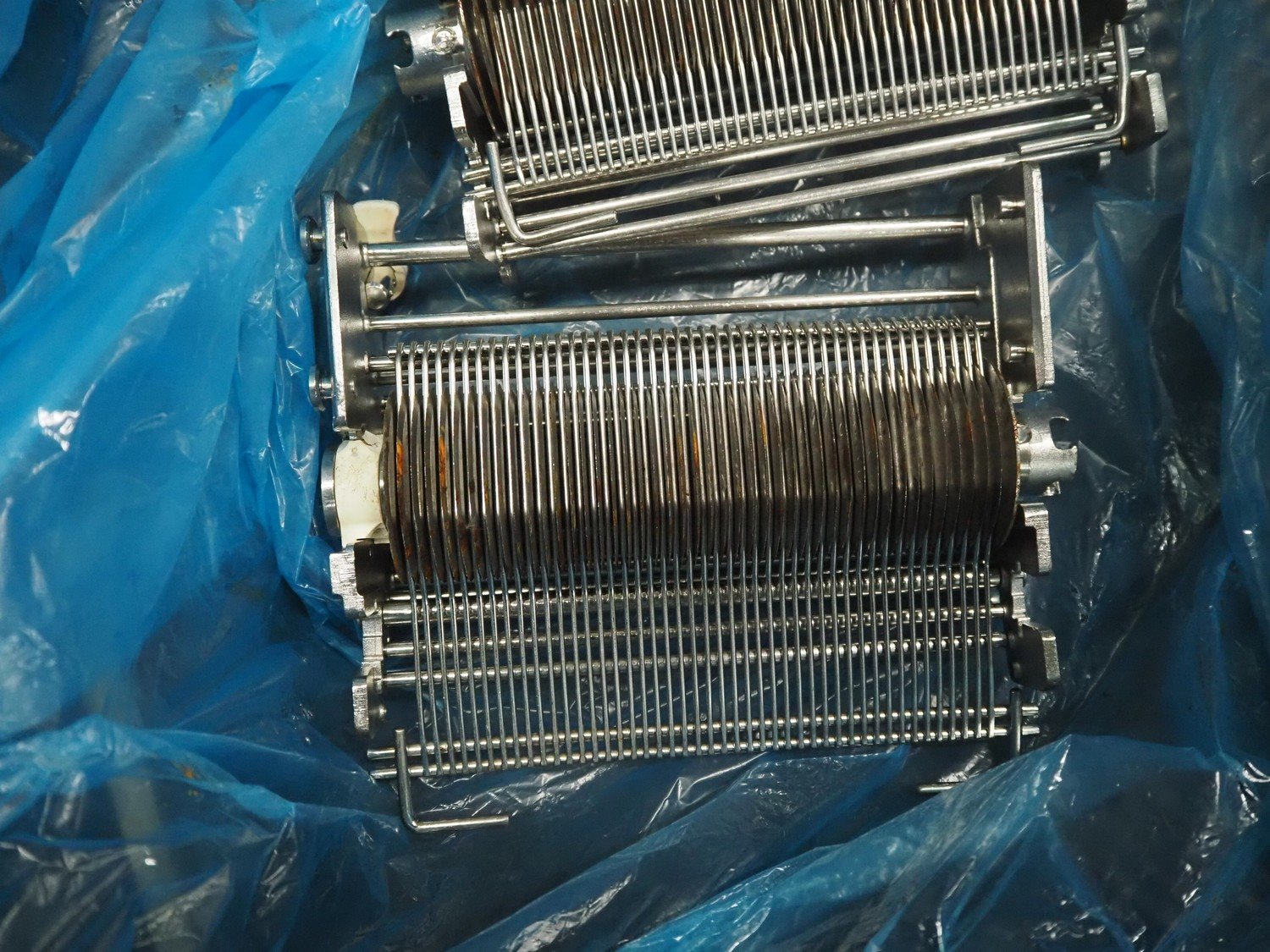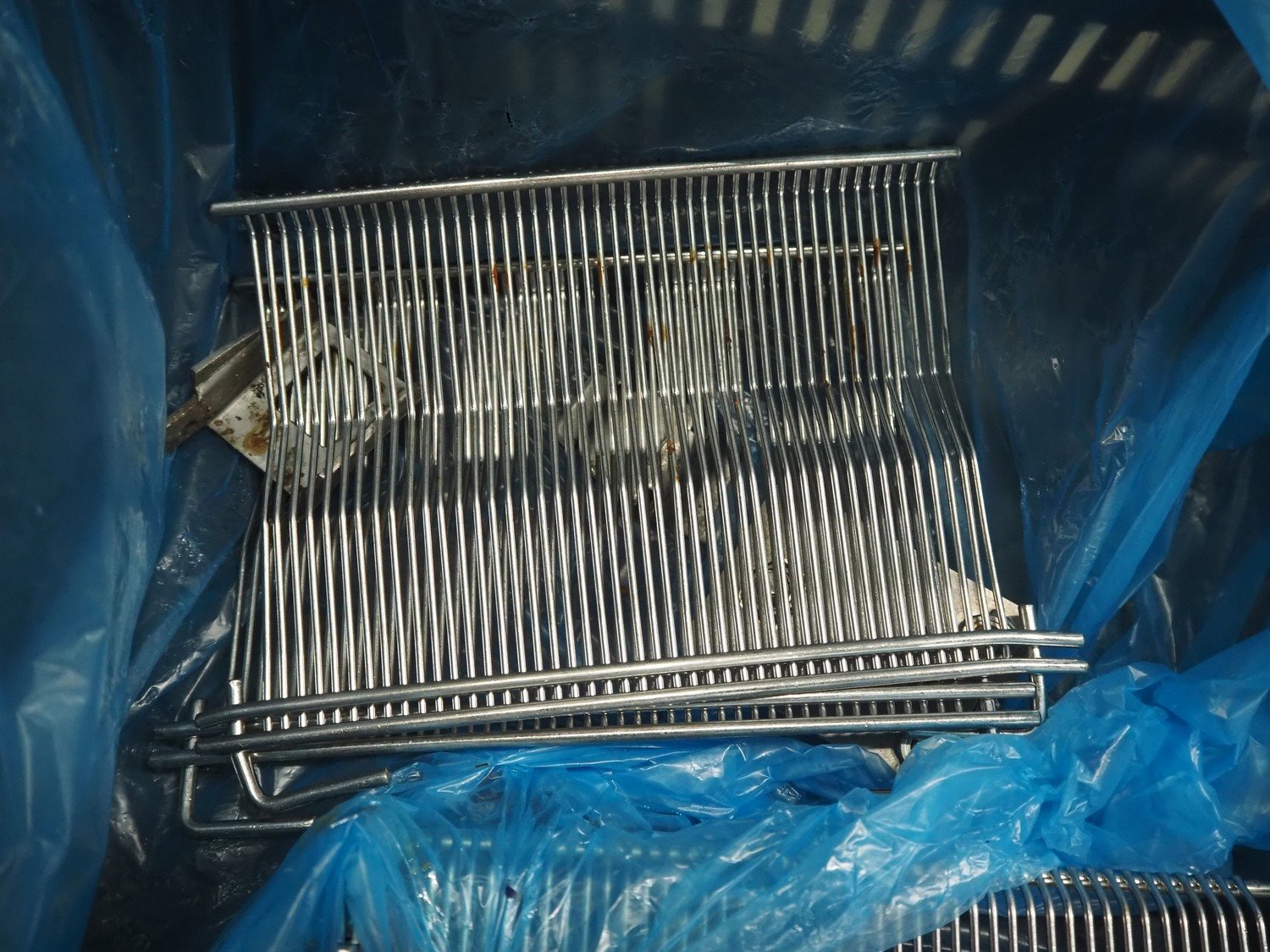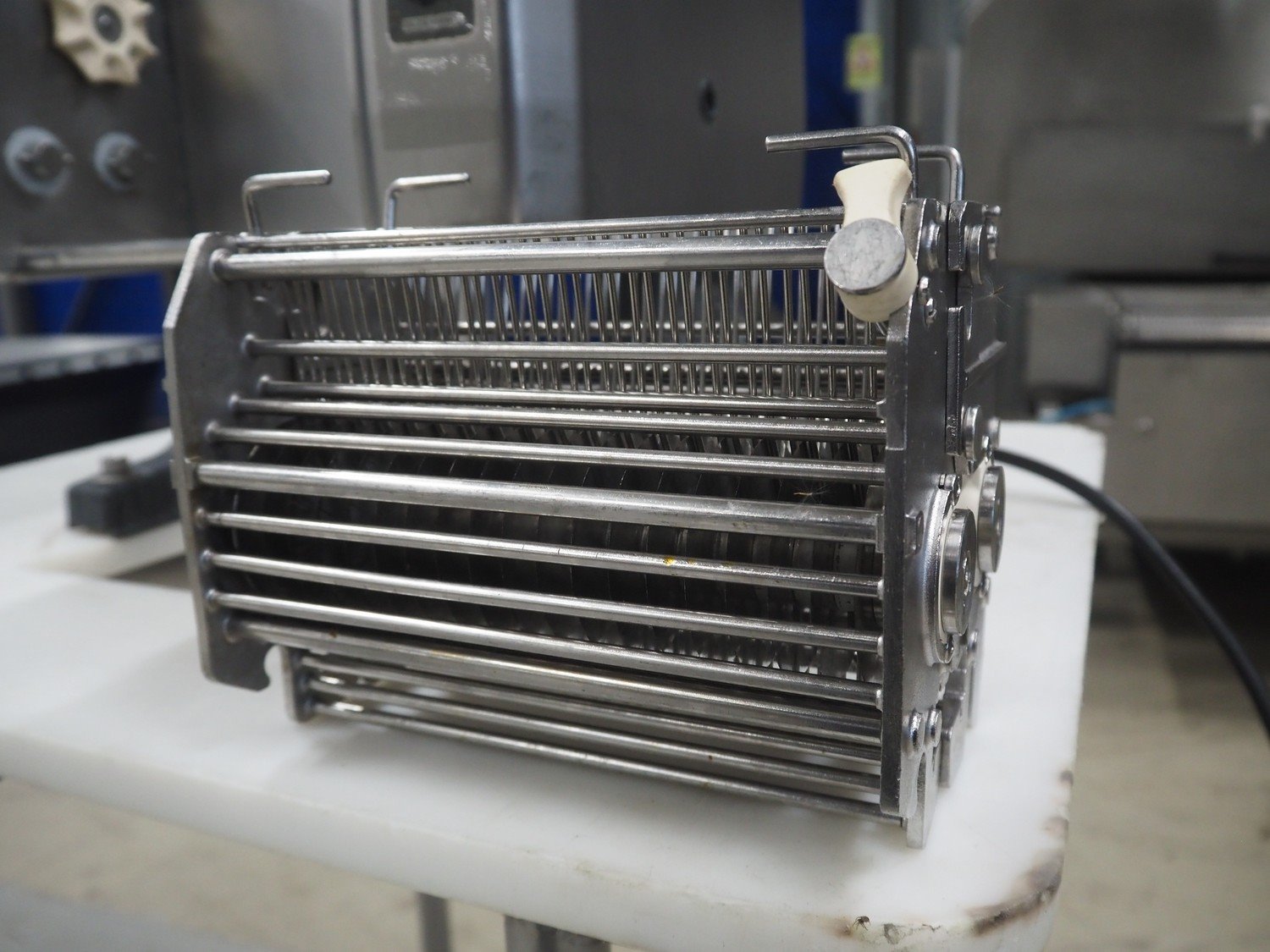 Bizerba strip cutter on s/s trolley with plastic top, model: S 111 Plus, number: 10283157, year of construction: 2006, 230 V, 1 Ph, 50 Hz, 2.7 A, dimensions: 760 mm x 650 mm x 1200 mm. With crate with knives.