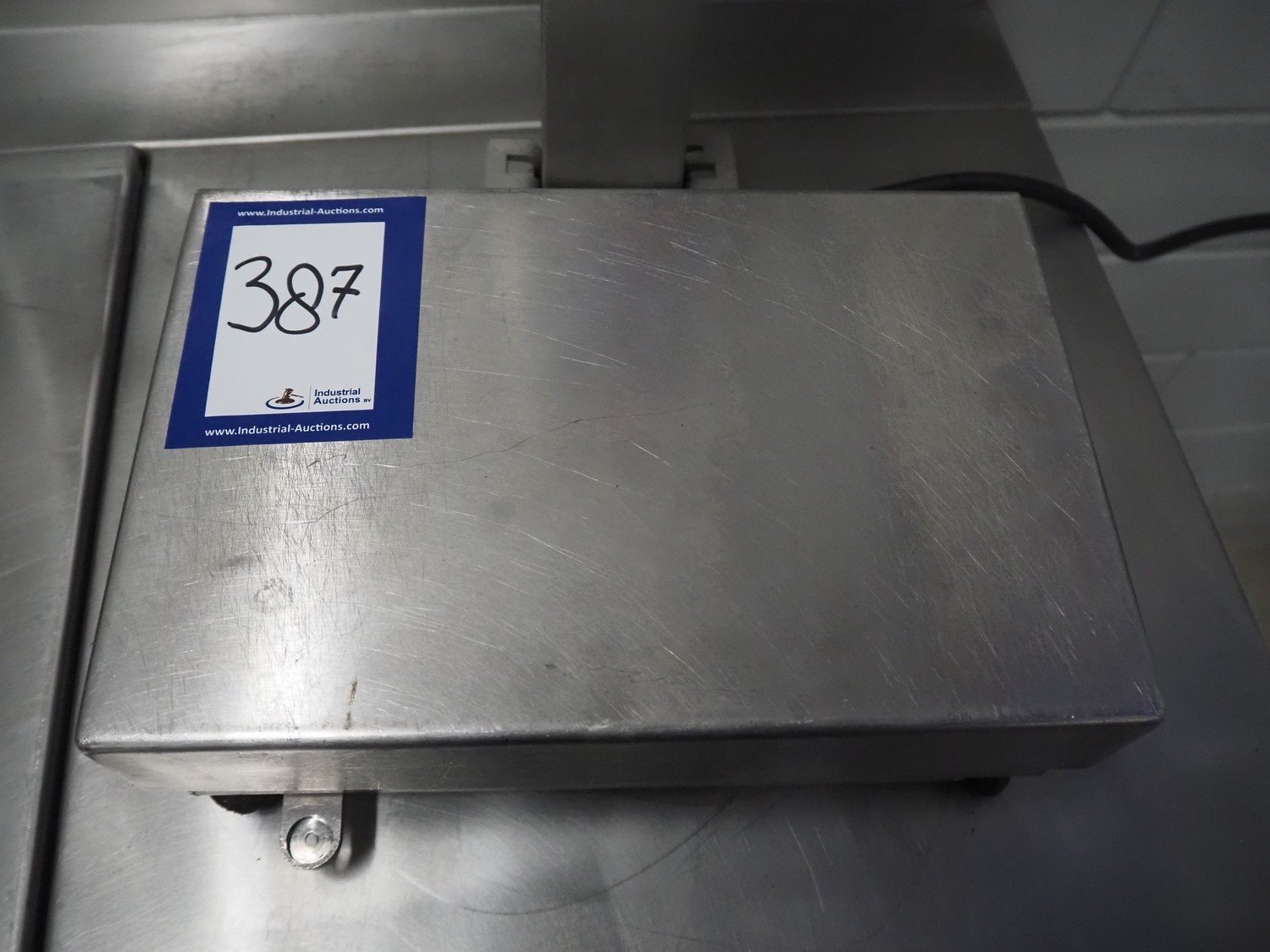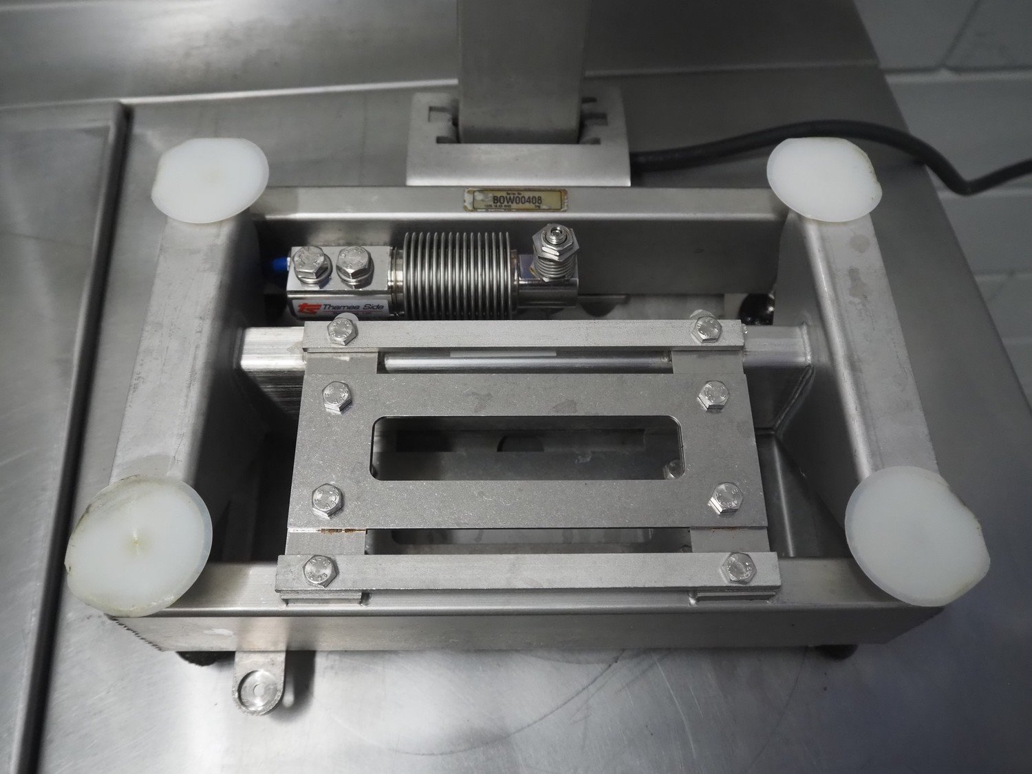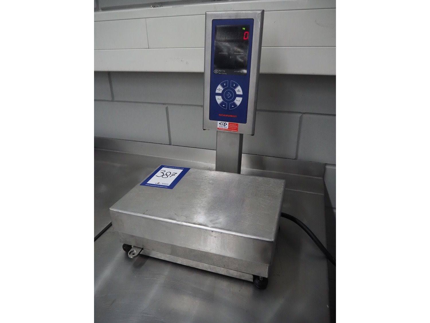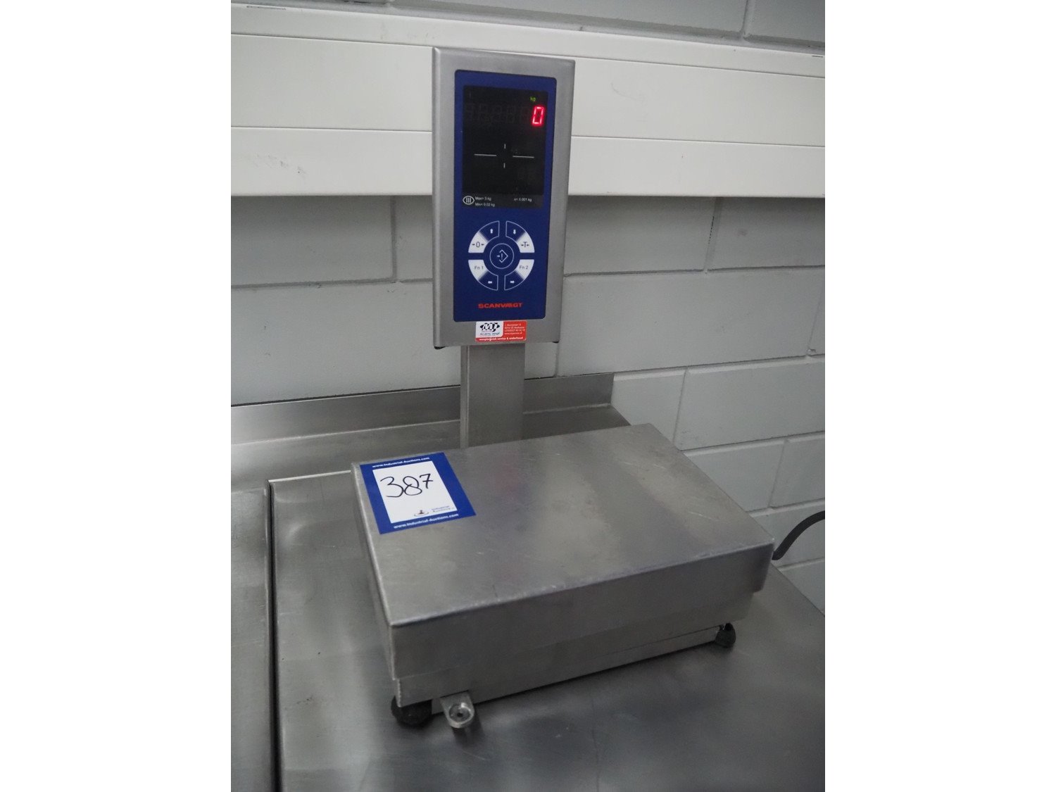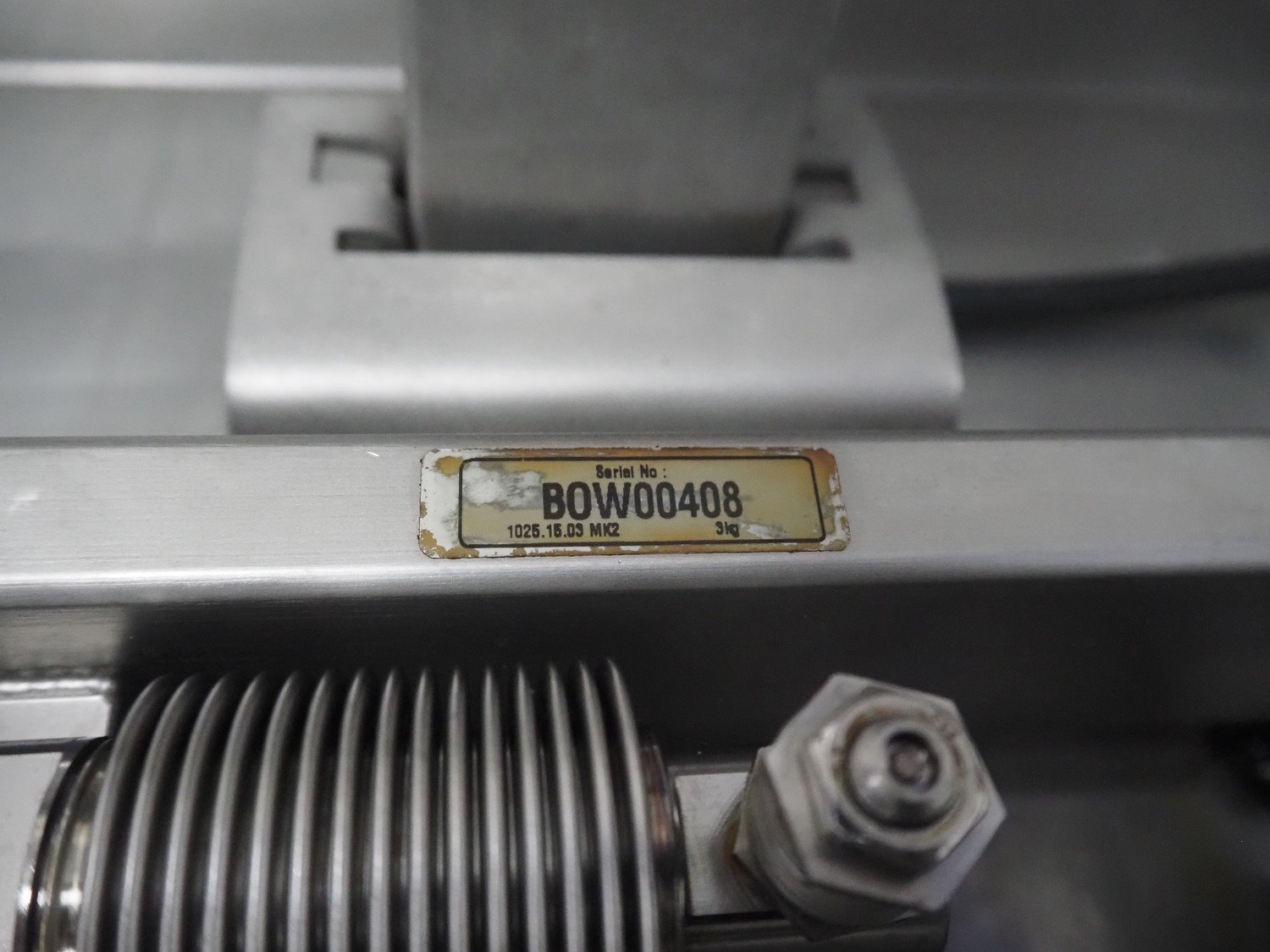 Scanvaegt weighing scale, serial number: BOW00408, maximum weight: 3 kg, minimum weight: 0.02 kg, e=: 0.001 kg, dimensions: 300 mm x 280 mm x 450 mm.