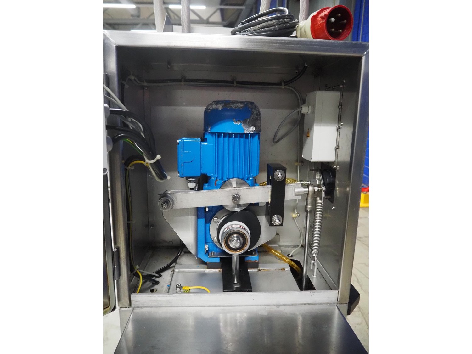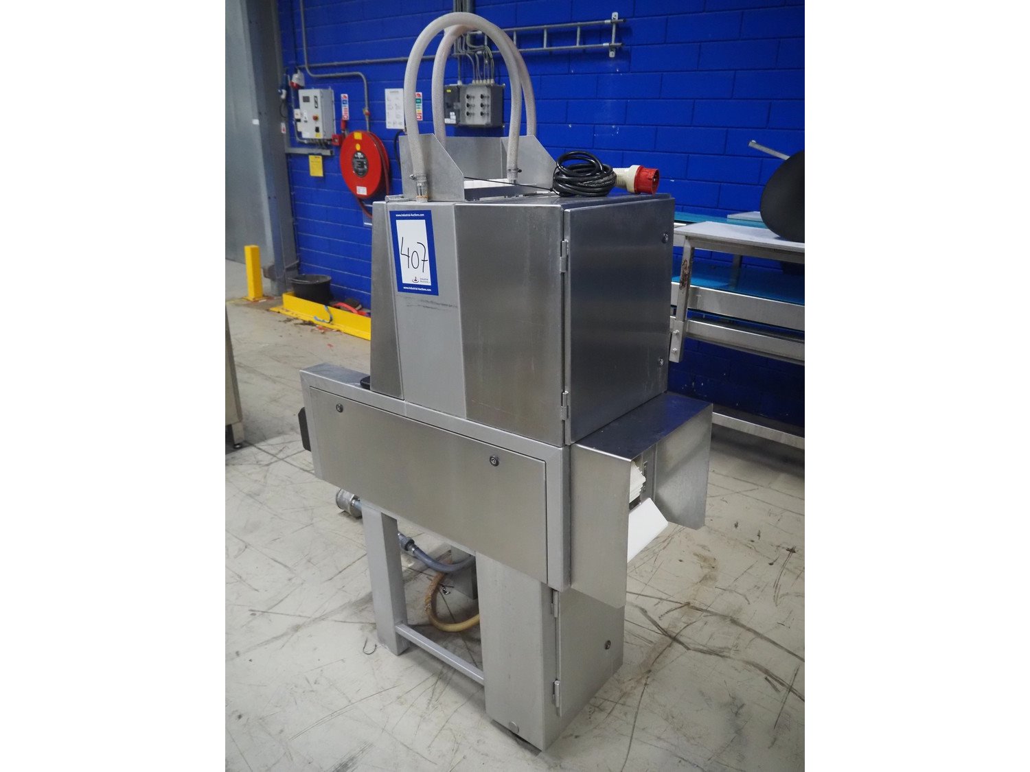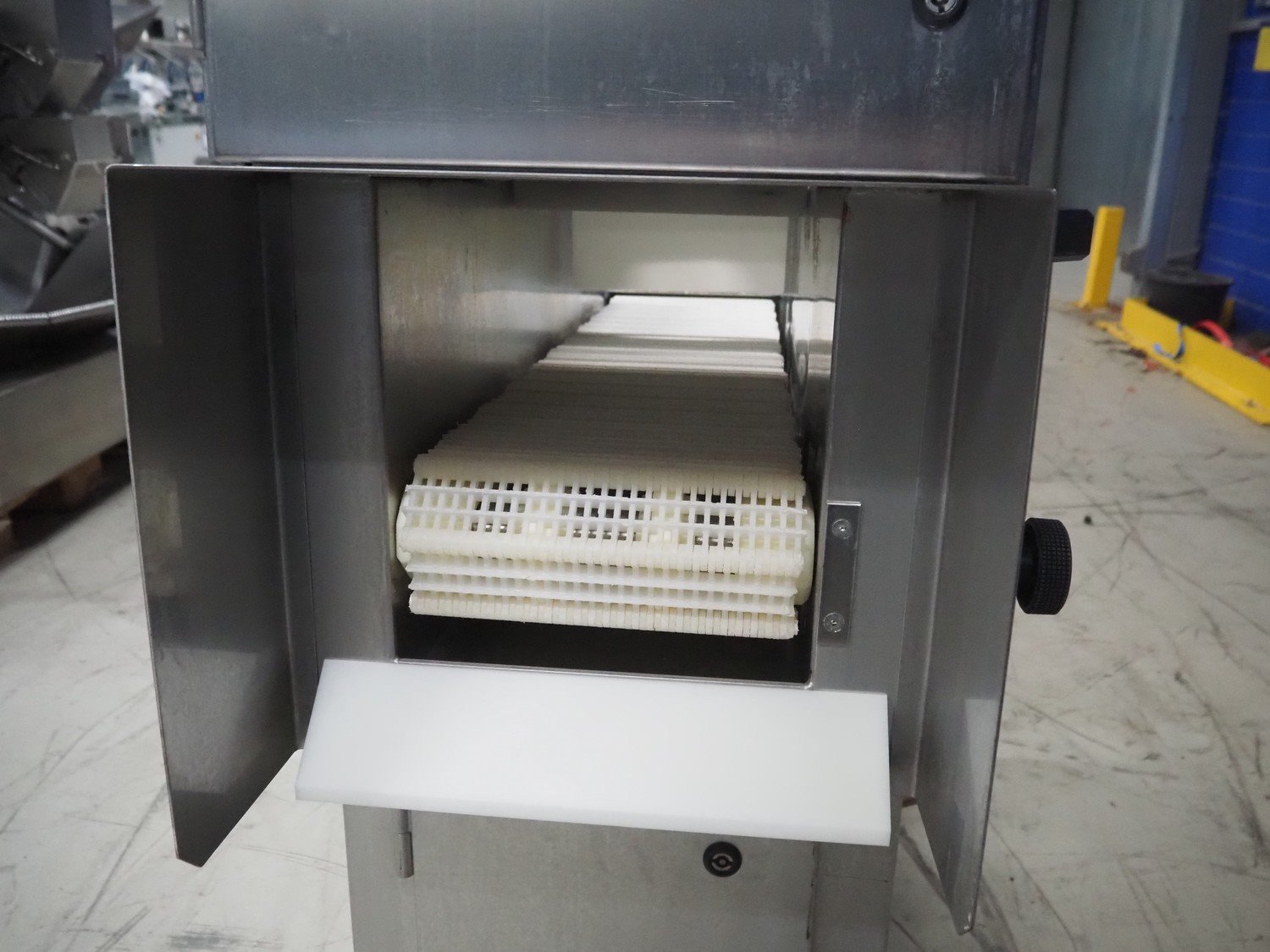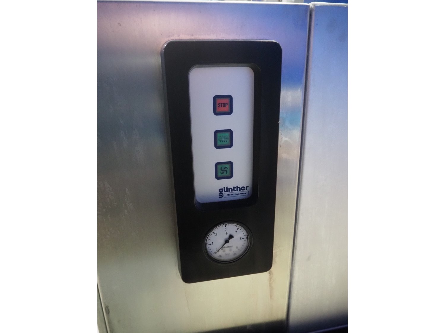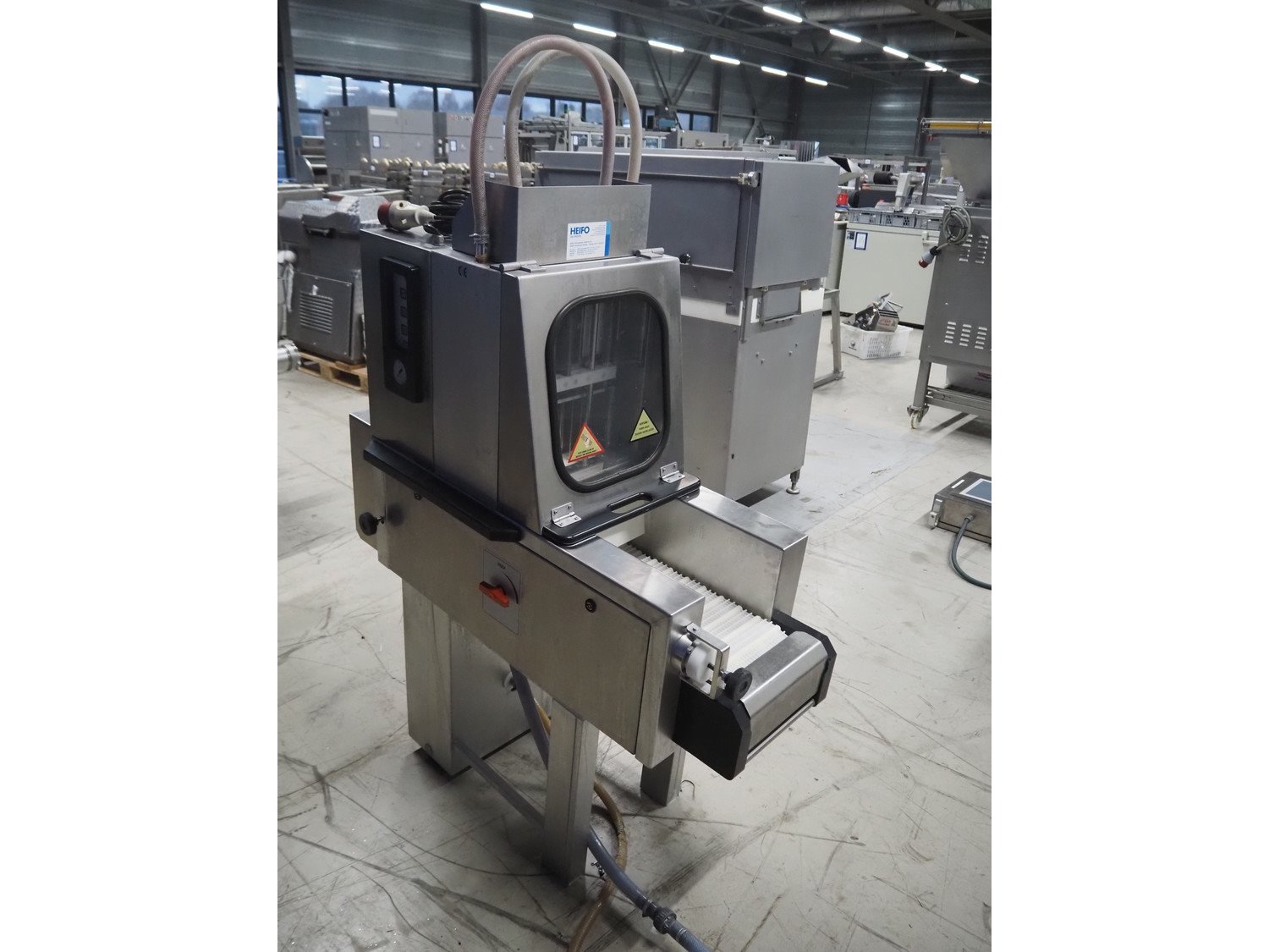 Günther injector, plastic mesh belt, belt width: 250 mm, 17 needles, clearance: 260 mm x 200 mm, total dimensions: 1300 mm x 470 mm x 1460 mm.
