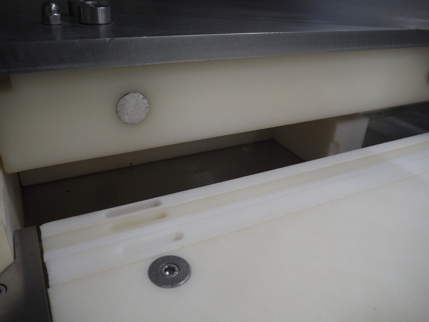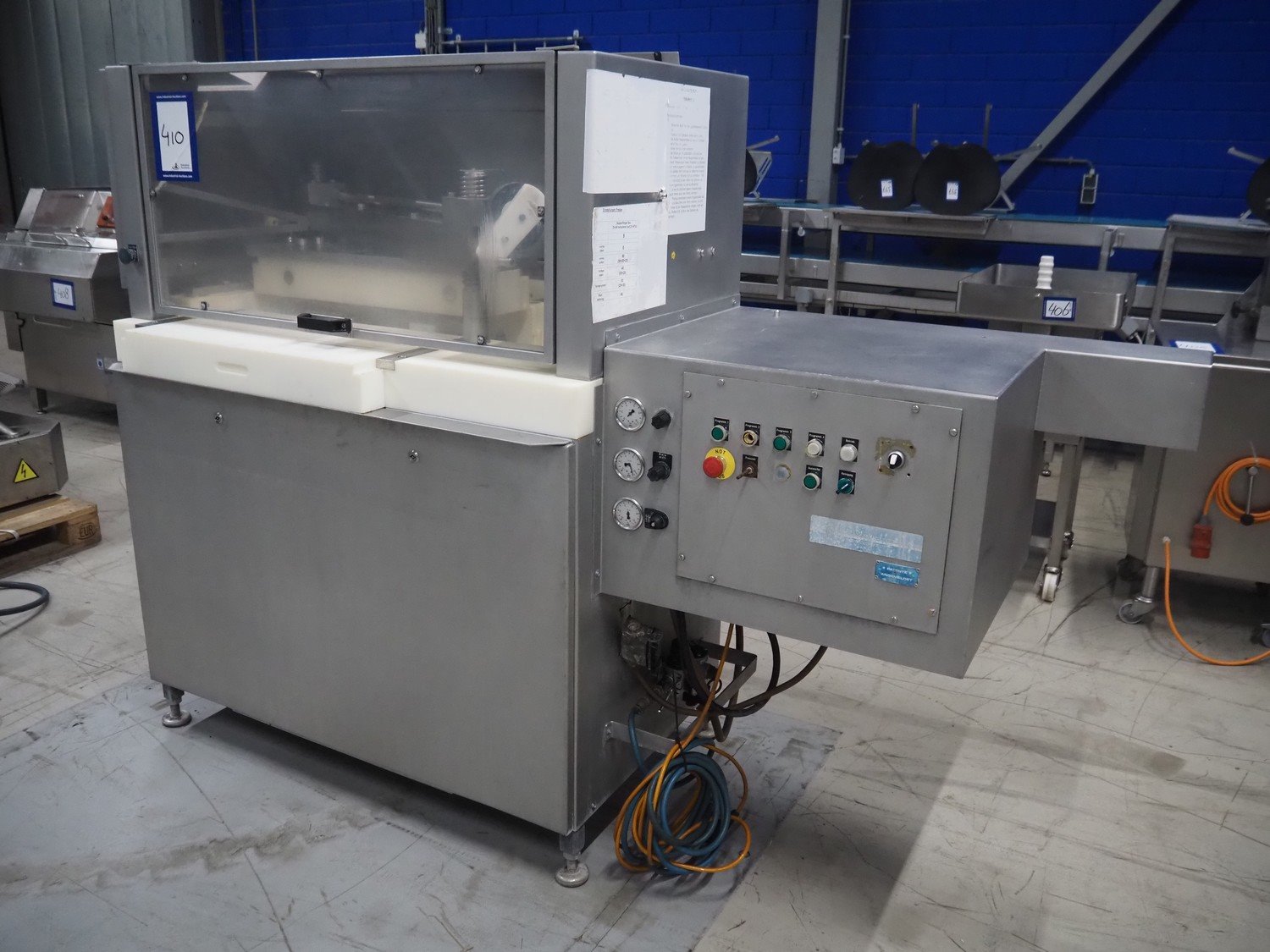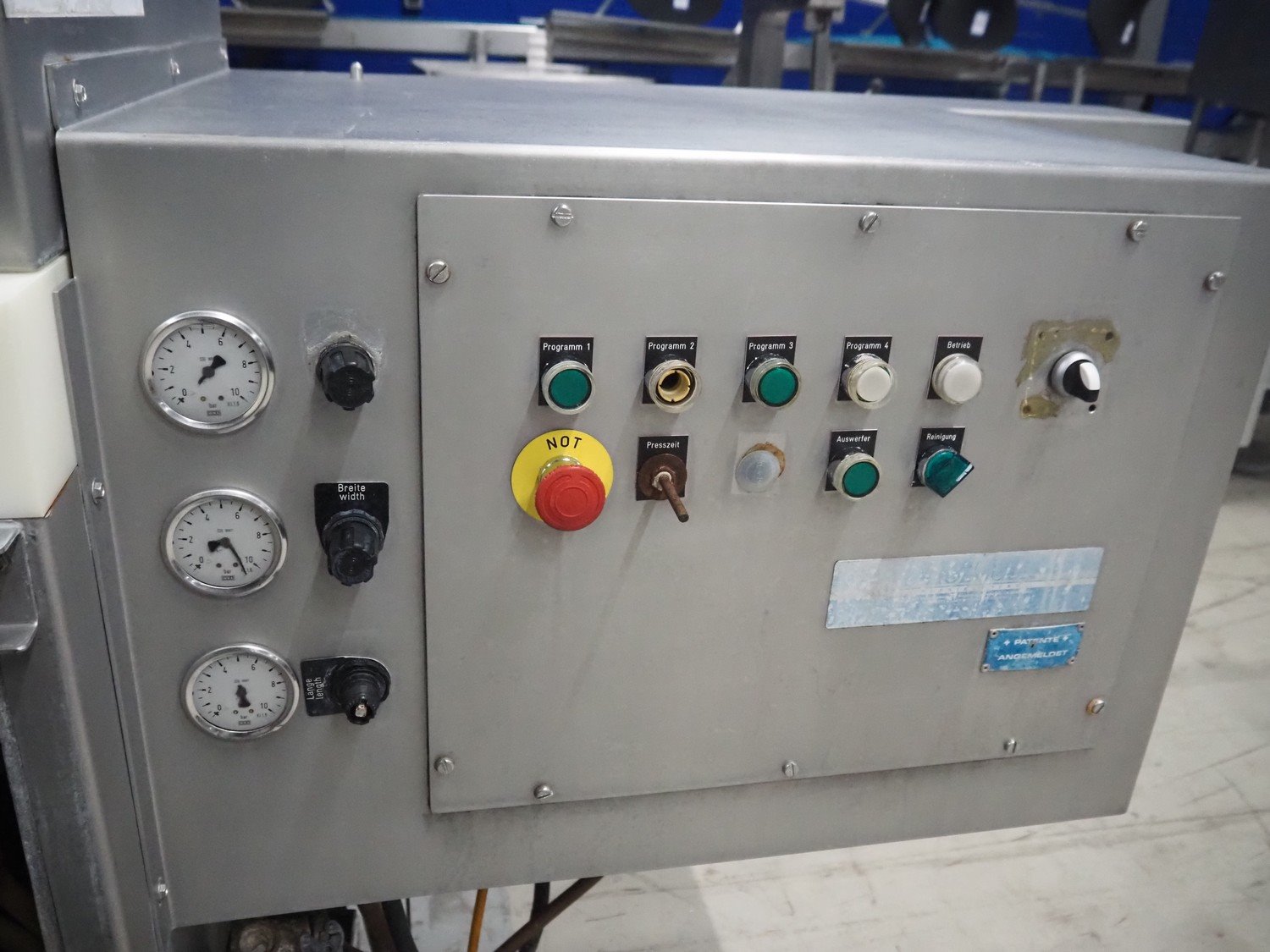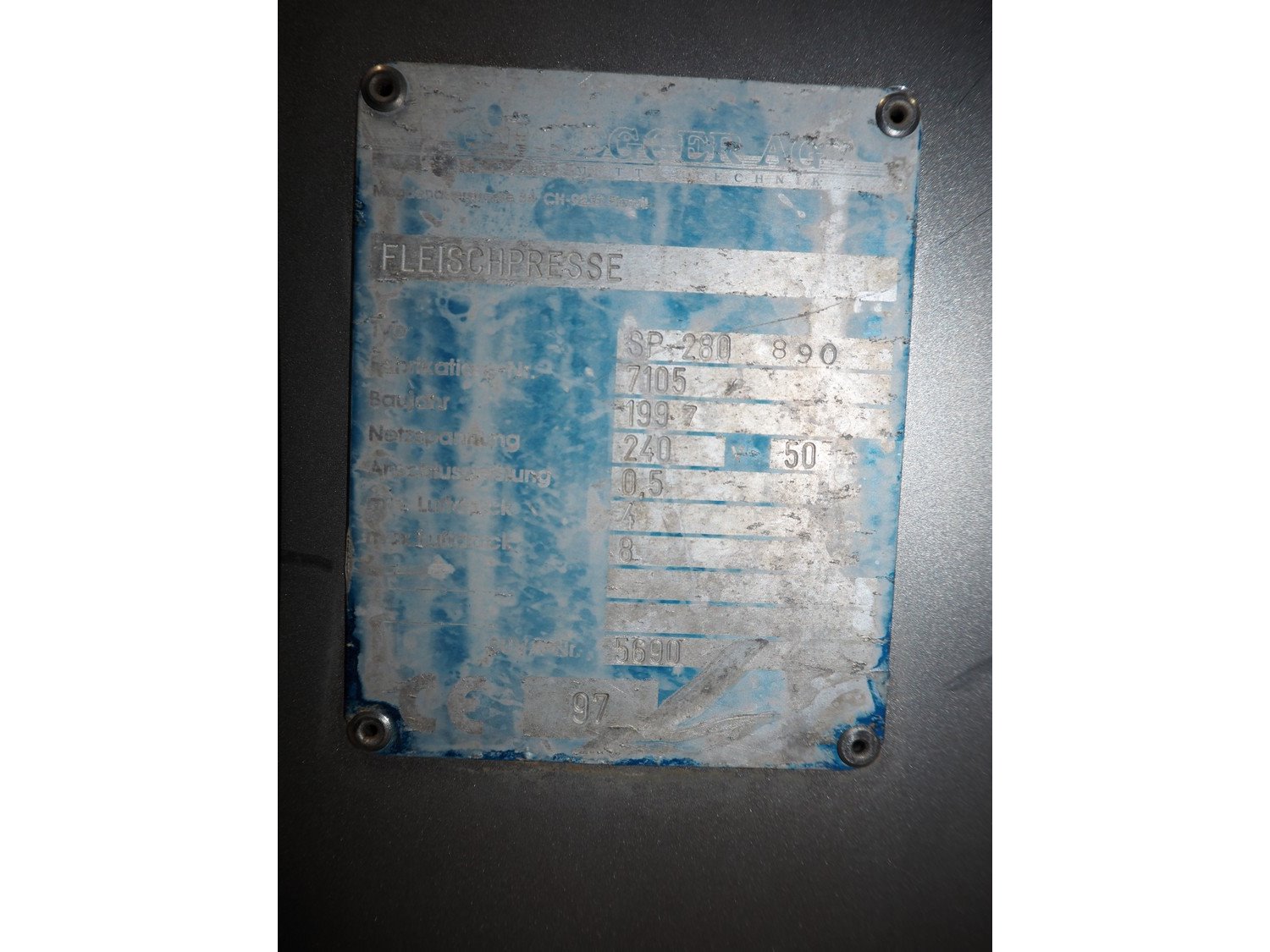 Hoegger AG meat press, type: SP-280 890, machine number: 7105, year of construction: 1997, 240 V, 50 Hz, 0.5 kW, dimensions: 2500 mm x 830 mm x 1700 mm.
