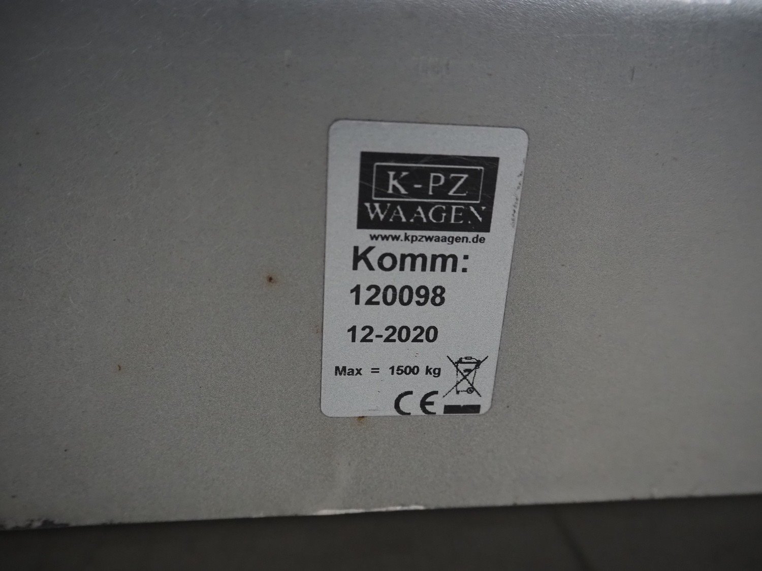KPZ Waagen floor weighing scale with Mettler Toledo indicator, number: 120098, year of construction: 12-2020, capacity: 1500 kg, dimensions: 1500 mm x 1150 mm x 95 mm.