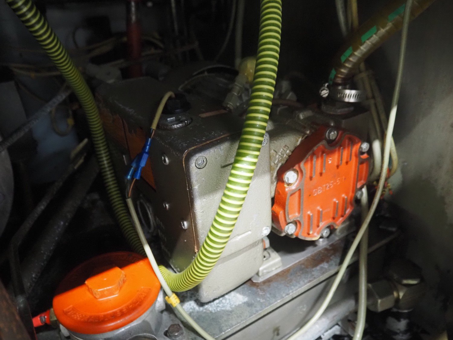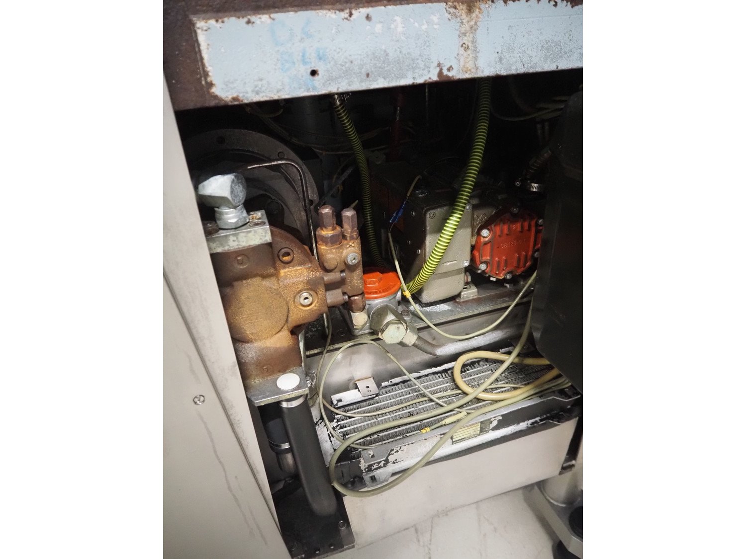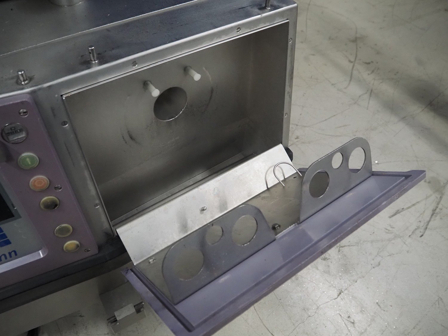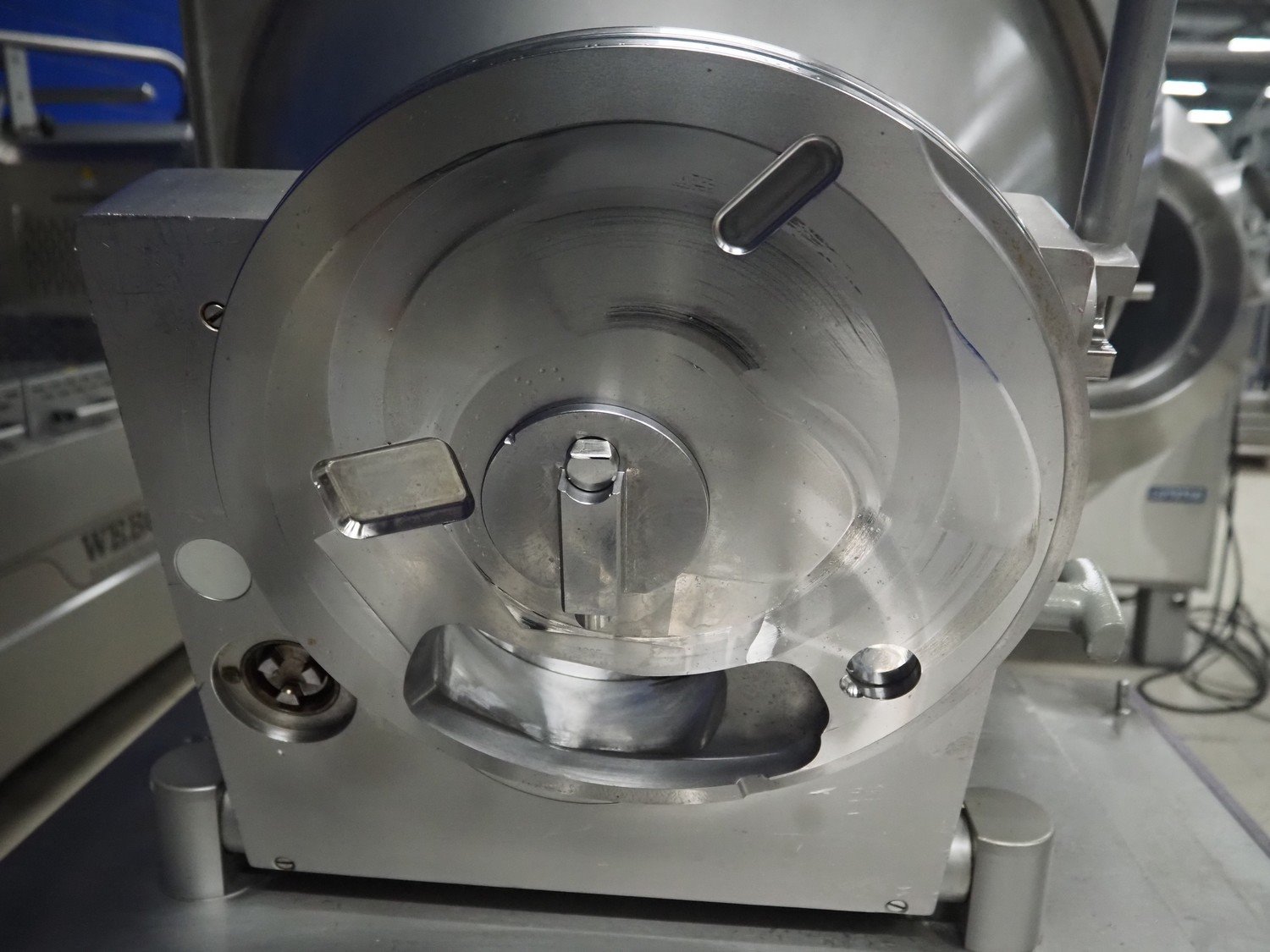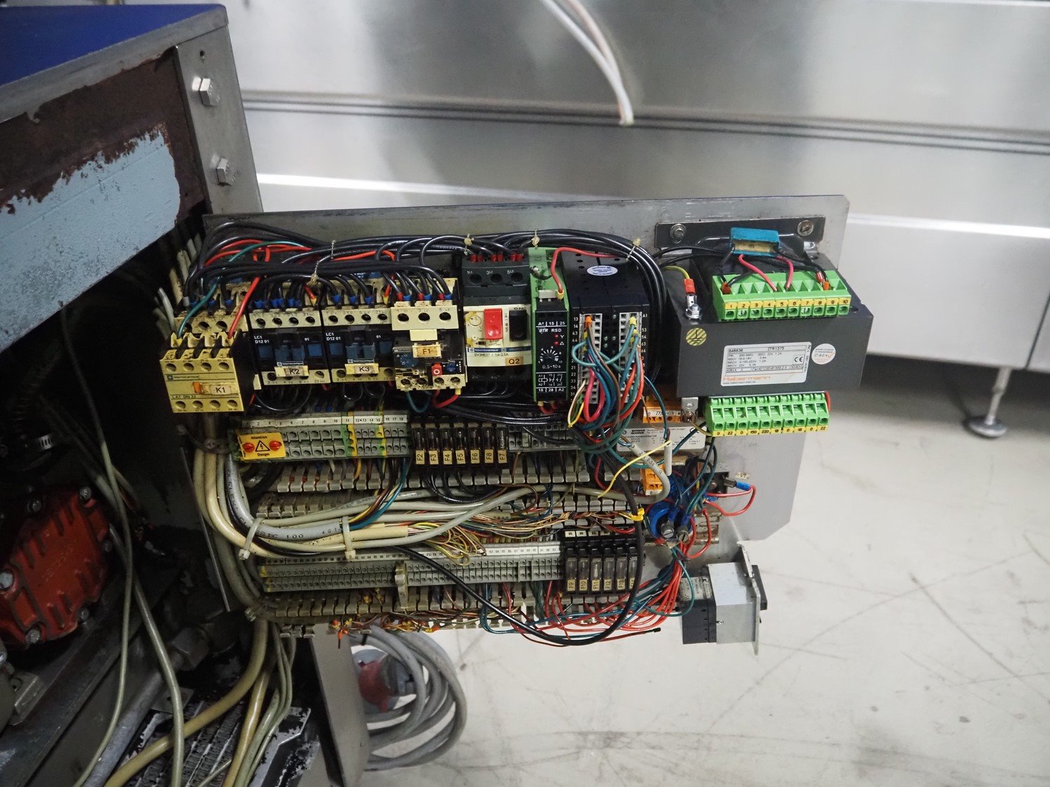 Handtmann vacuum filling machine, type: VF300, number: 15015, year of construction: 2001, 440 V, 3 Ph, 60 Hz, 21.8 A, 9 kW, dimensions: 950 mm x 920 mm x 2020 mm.