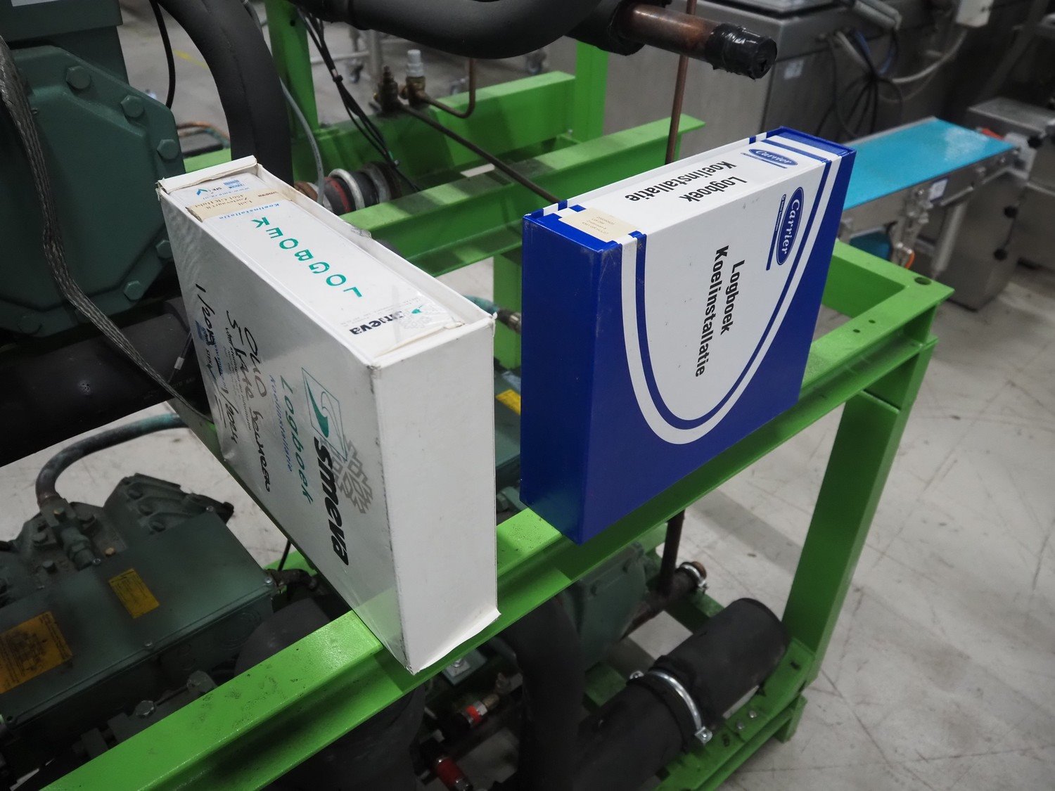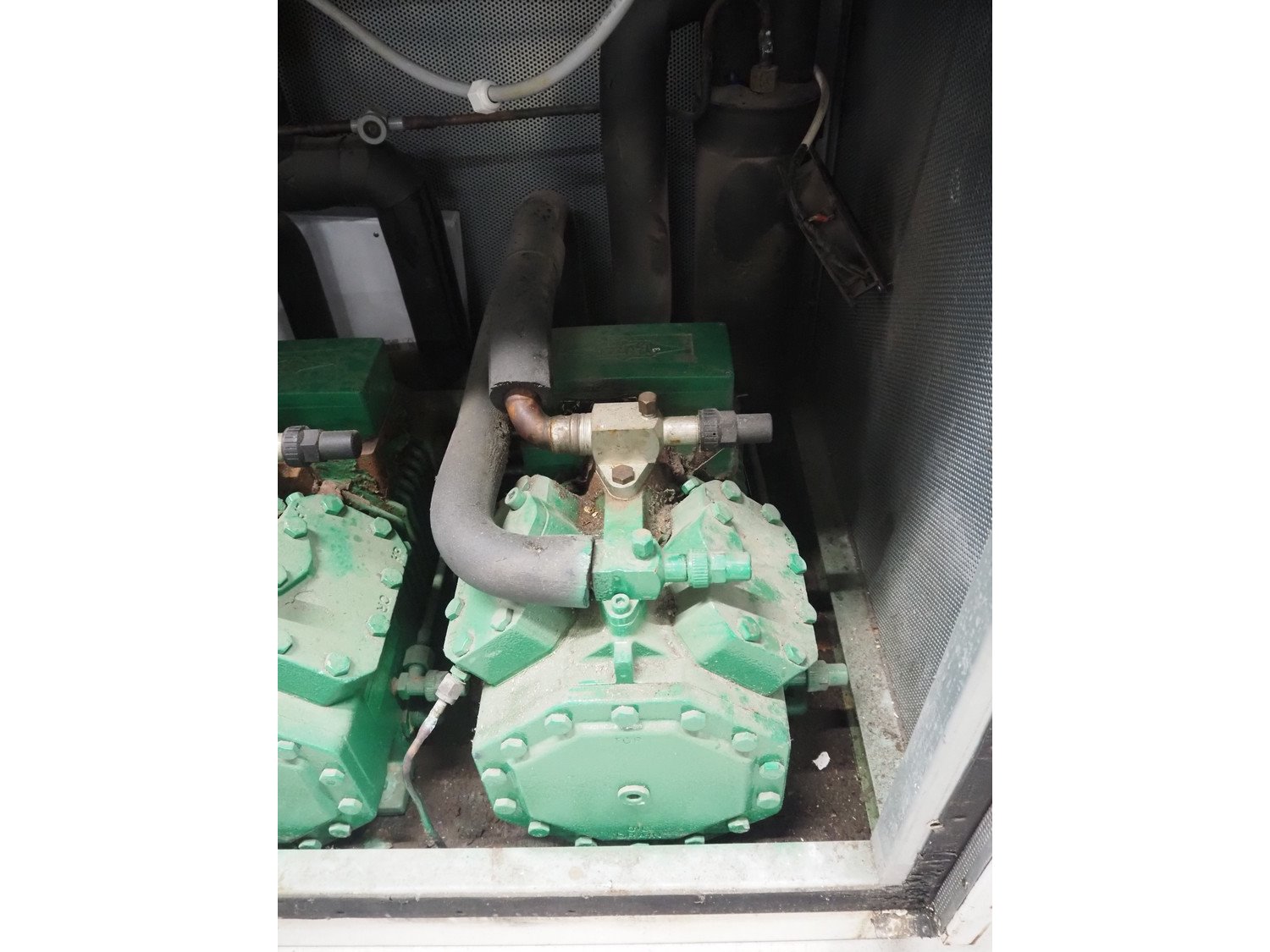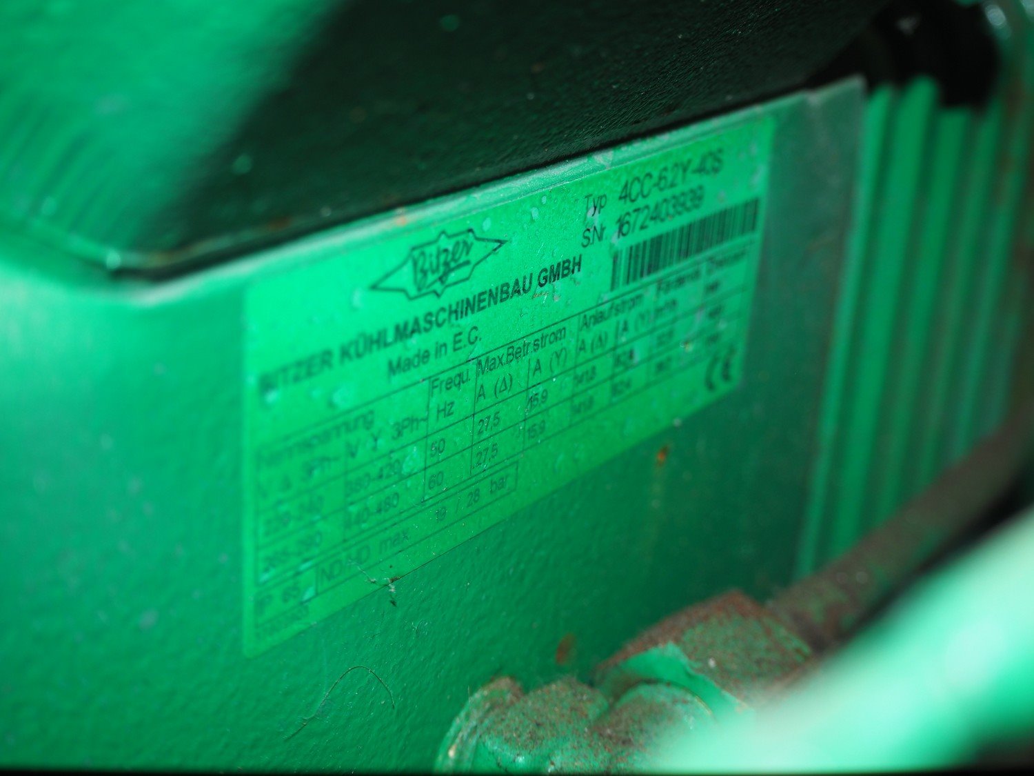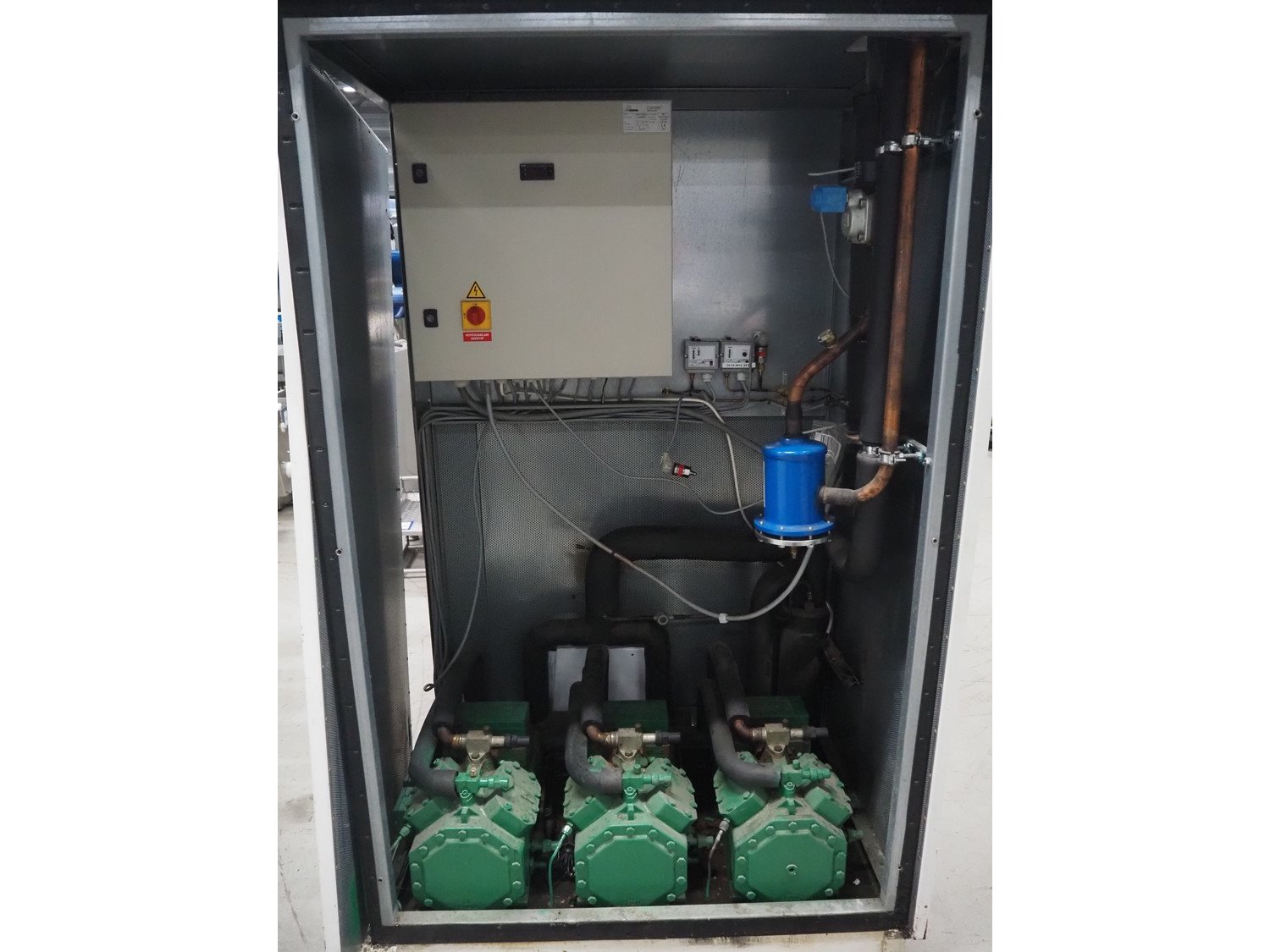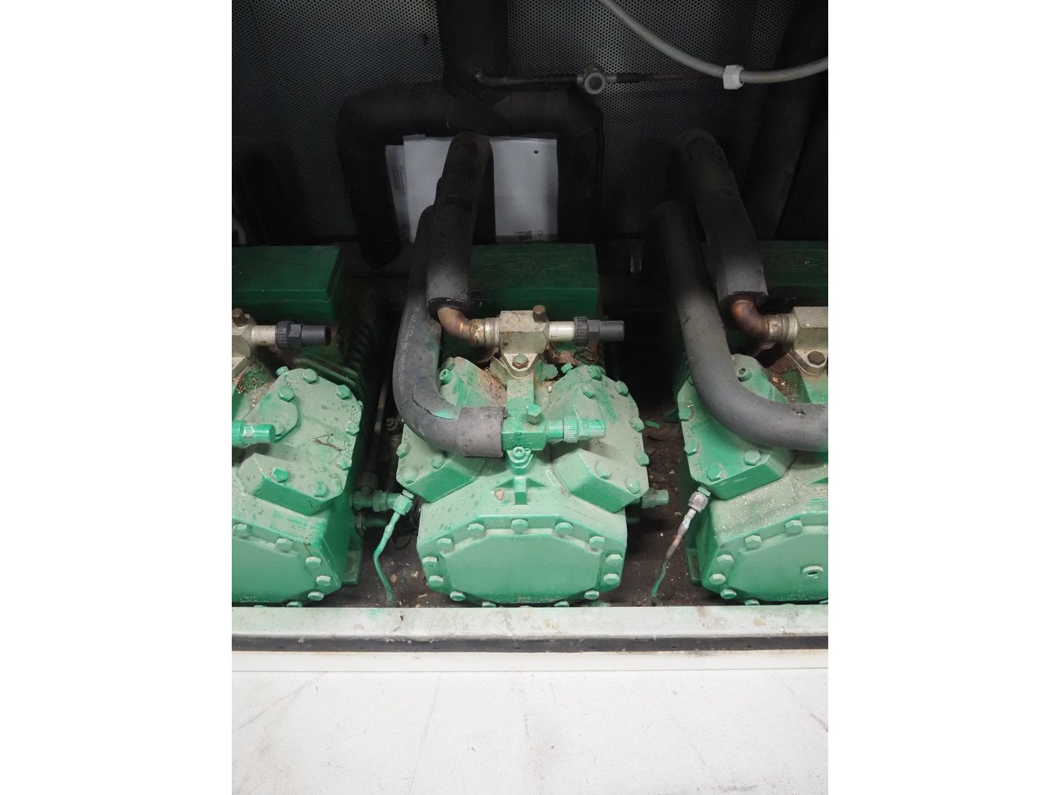 Carrier compressor rack with 3 Bitzer Kühlmaschinenbau GmbH cooling compressors, type: (3x) 4CC-6.2Y-40S, capacity: 32.5/39.2 m³ per hour, dimensions: 1200 mm x 800 mm x 2250 mm.