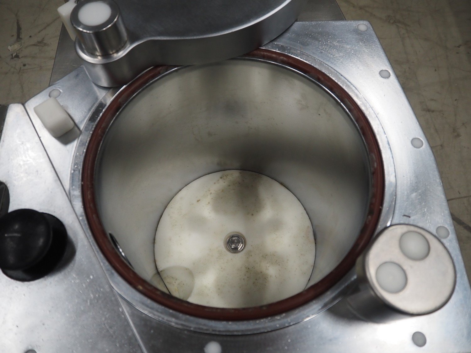 Frey piston filler, inside dimensions: Ø 320 mm x 360 mm, total dimensions: 800 mm x 750 mm x 1200 mm.