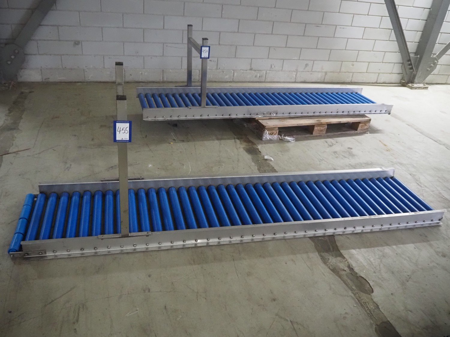 Roller conveyor, s/s frame, plastic rollers, roller width: 495 mm, total dimensions: 2570 mm x 560 mm x 830 mm.