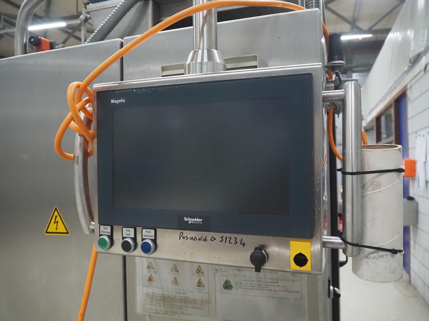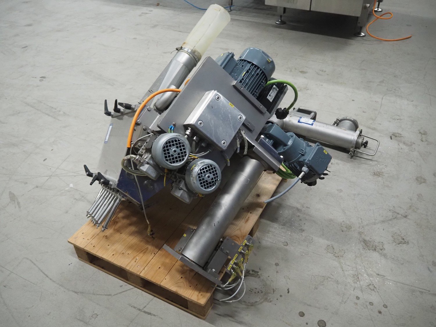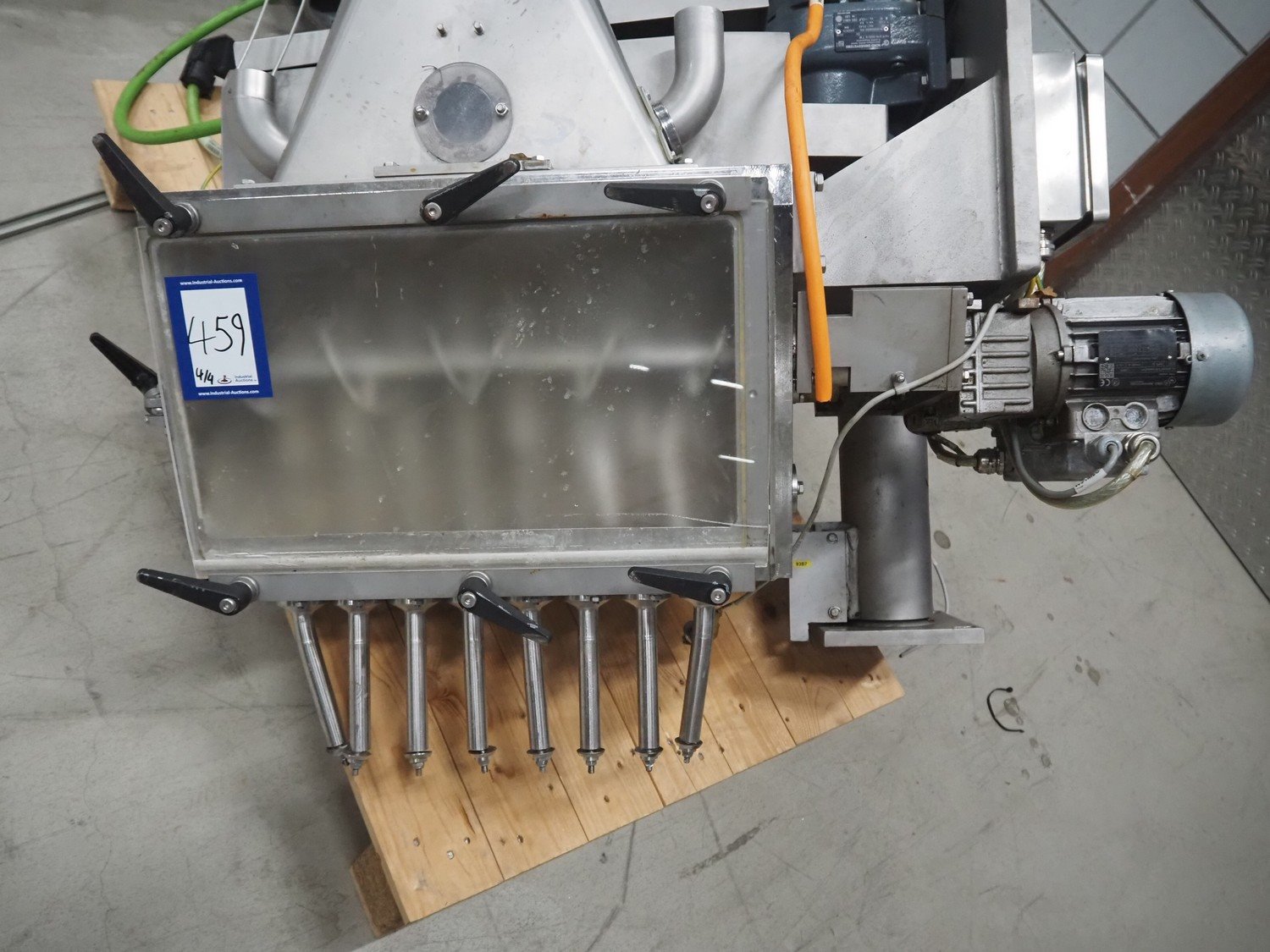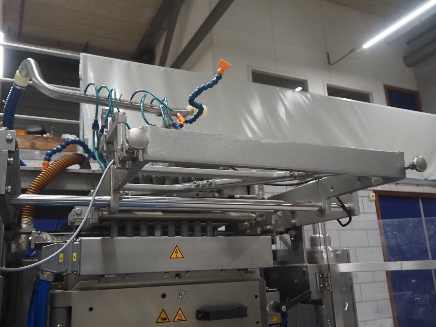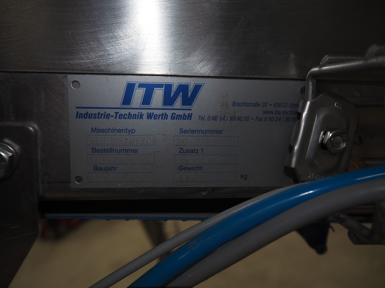 Hassia-Redatron GmbH 4-side sealing sached machine, type: FB SI 500, machine number: 155960 mm, year of construction: 2019, 400 V, 3 Ph, 50/60 Hz, 50 A, 19 kVA, format width: maximum 500 mm, draw-off lenght: maximum 200 mm, film width: maximum 1000 mm, vertical seal length: (9x) 115 mm, horizontal seal width: 430 mm and 630 mm , total dimensions: 2750 mm x 2100 mm x 2700 mm. Including ITW outfeed elevating belt, s/s frame, type: TBGK-N700, serial number: 20-171K, year of construction: 2019, weight: 135 kg, plastic belt with dividers, belt width: 730 mm, divider height: 30 mm, distance between dividers: 205 mm, elevating height: 1600 mm, total dimensions outfeed belt: 2850 mm x 1000 mm x 1610 mm and pallet with infeed station. Infeed station is damaged.