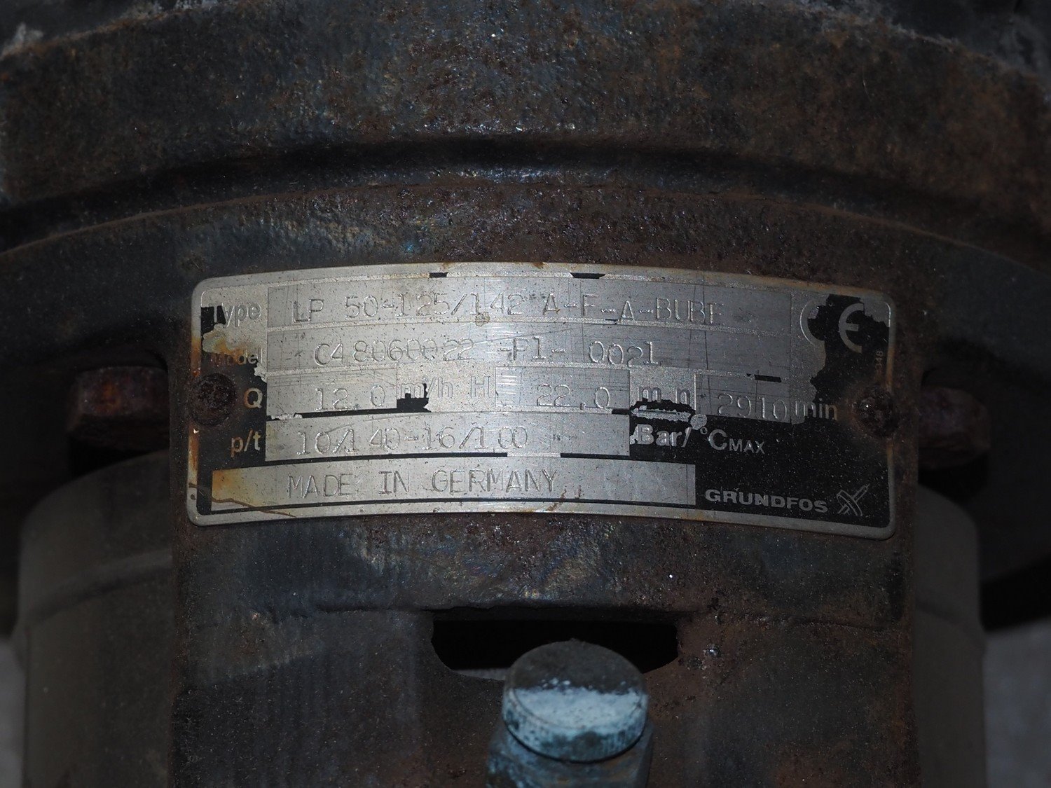 Grundfos ciruculation pump, type: LP 50-125/142 A-F-A-BUBE, model: C4 8060022-PI-0021, capacity: 12.0 m³ per hours, dimensions: 630 mm x 420 mm x 220 mm.