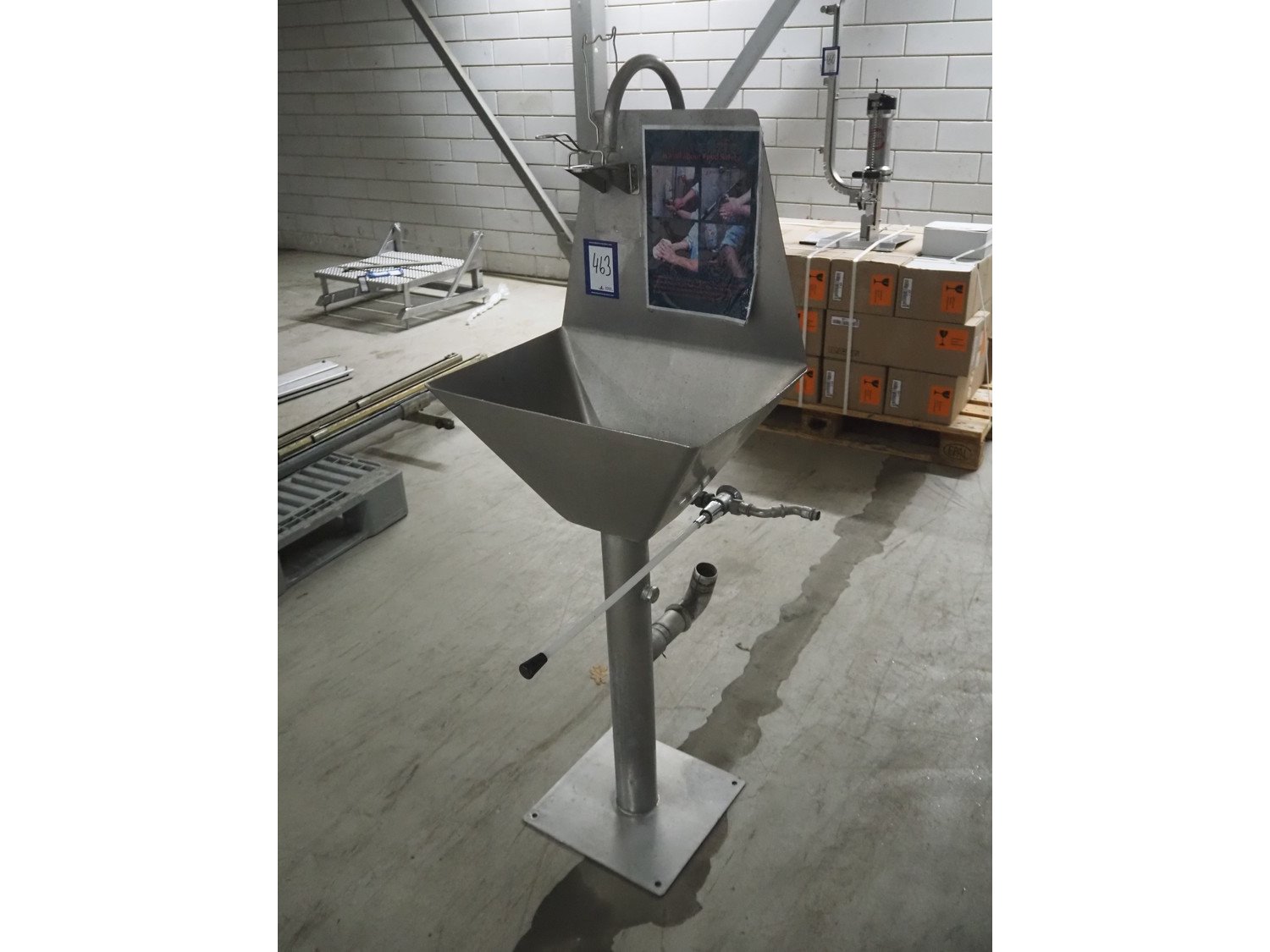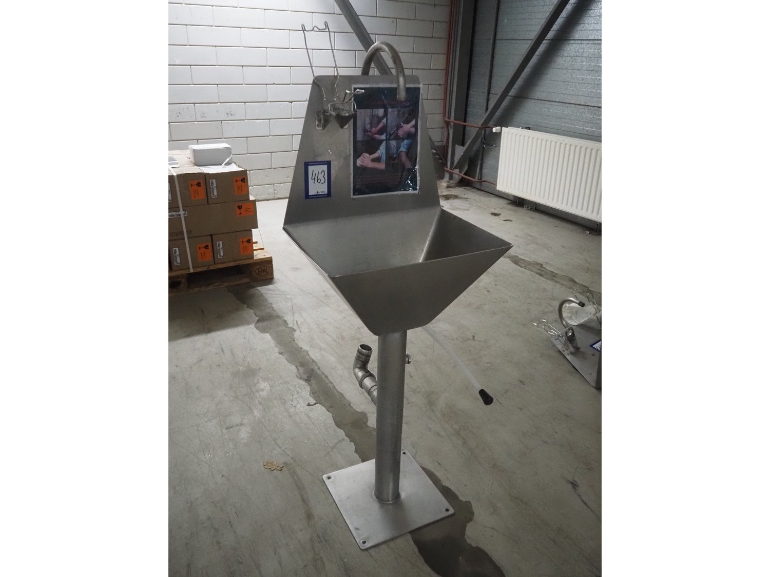 S/s sink, knee control, dimensions: 600 mm x 450 mm x 800 mm.
