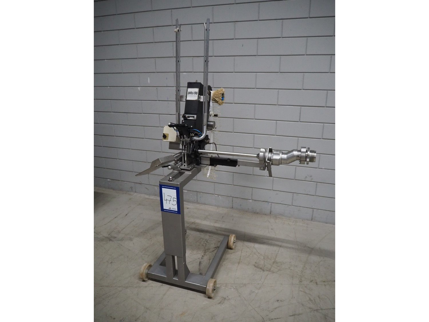 Poly-clip System GmbH & Co. KG mobile clipper, type: PDC 600, number: 1098, year of construction: 2002, pressure: 5-7 bar, dimensions: 1280 mm x 700 mm x 1900 mm.