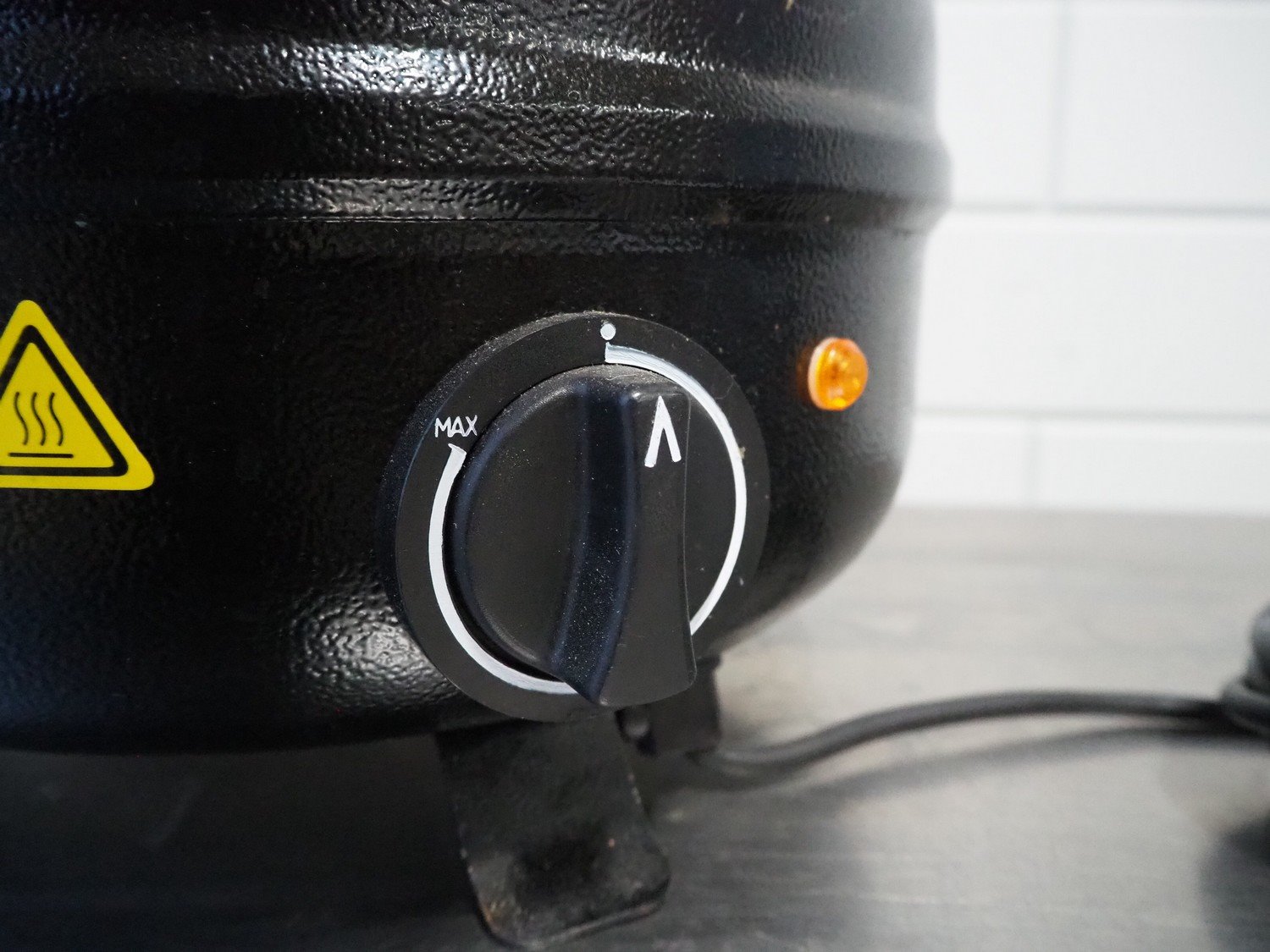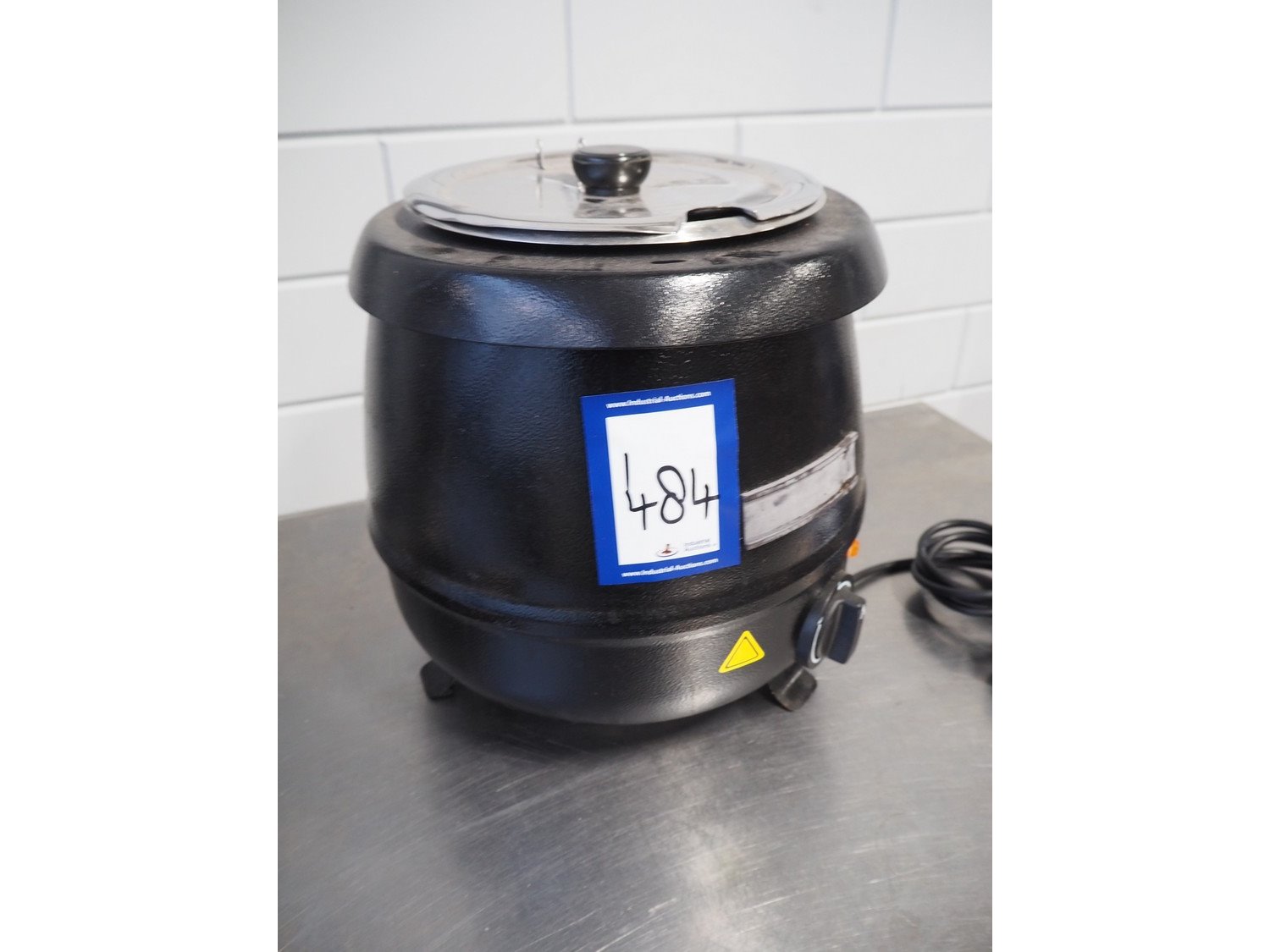 MCC Trading International GmbH soup kettle, model: GSK1009, serial number: GSK1009SVII0203, 220-240 V, 50 Hz, 400 W, volume: 9 liter, inside dimensions: Ø 215 mm x 250 mm, total dimensions: 340 mm x 340 mm x 350 mm.