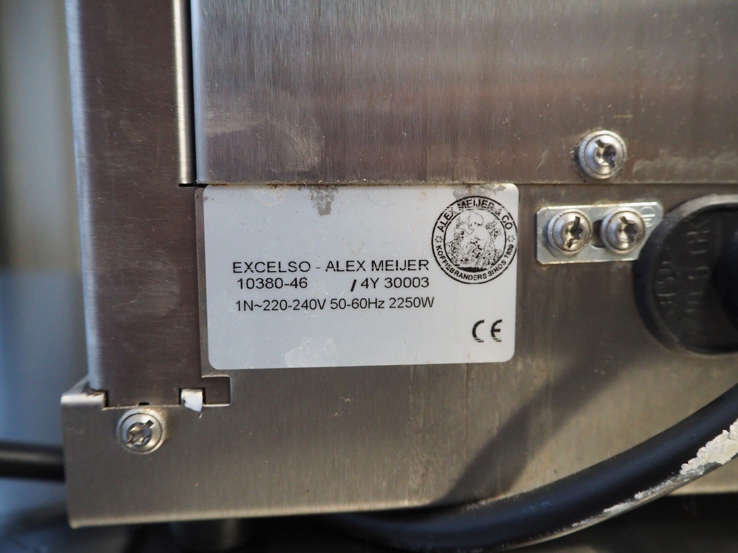 Alex Meijer coffee machine, 220-240 V, 1 Ph, 50-60 Hz, 2250 W, dimensions: 440 mm x 240 mm x 580 mm.