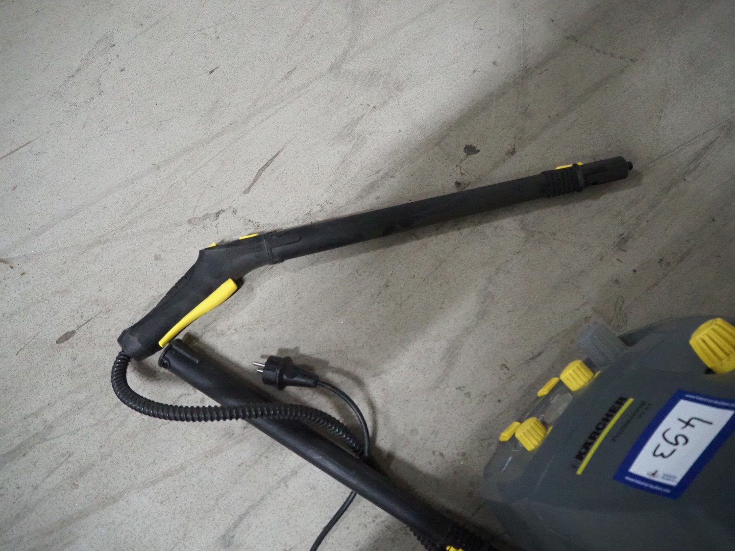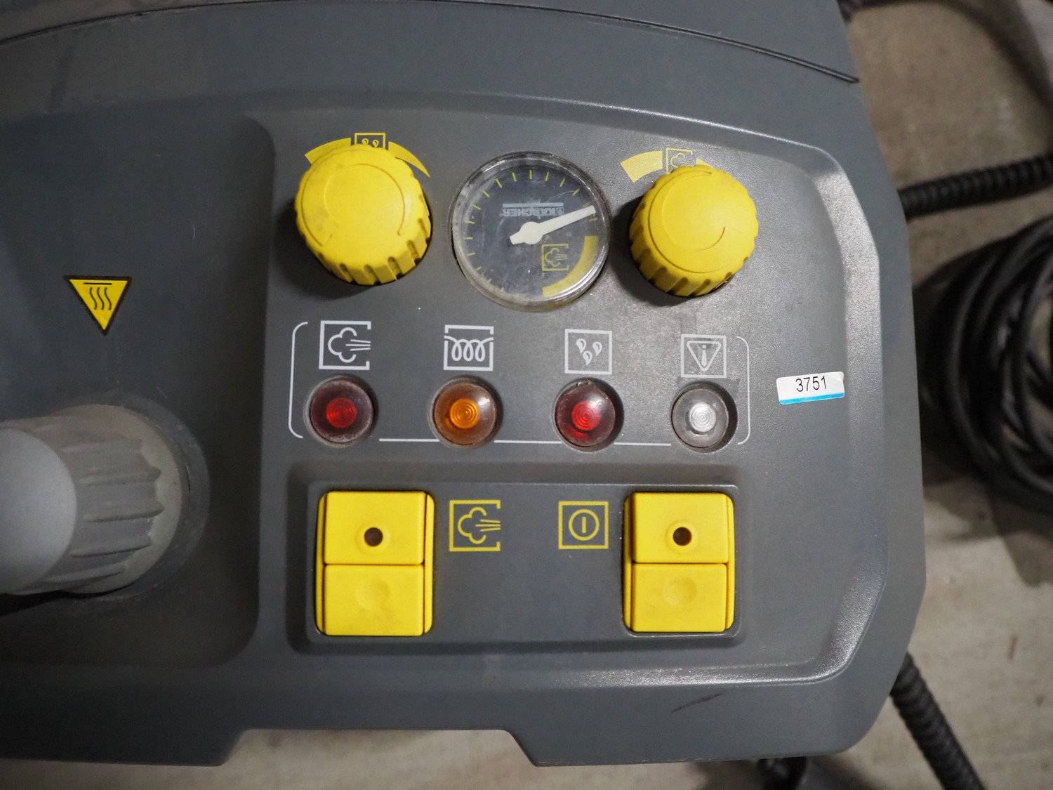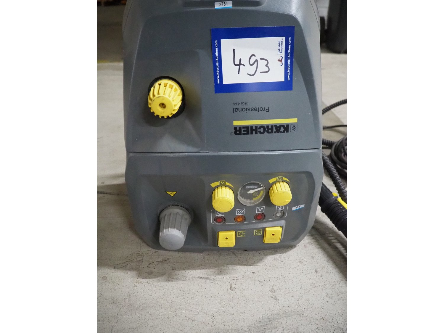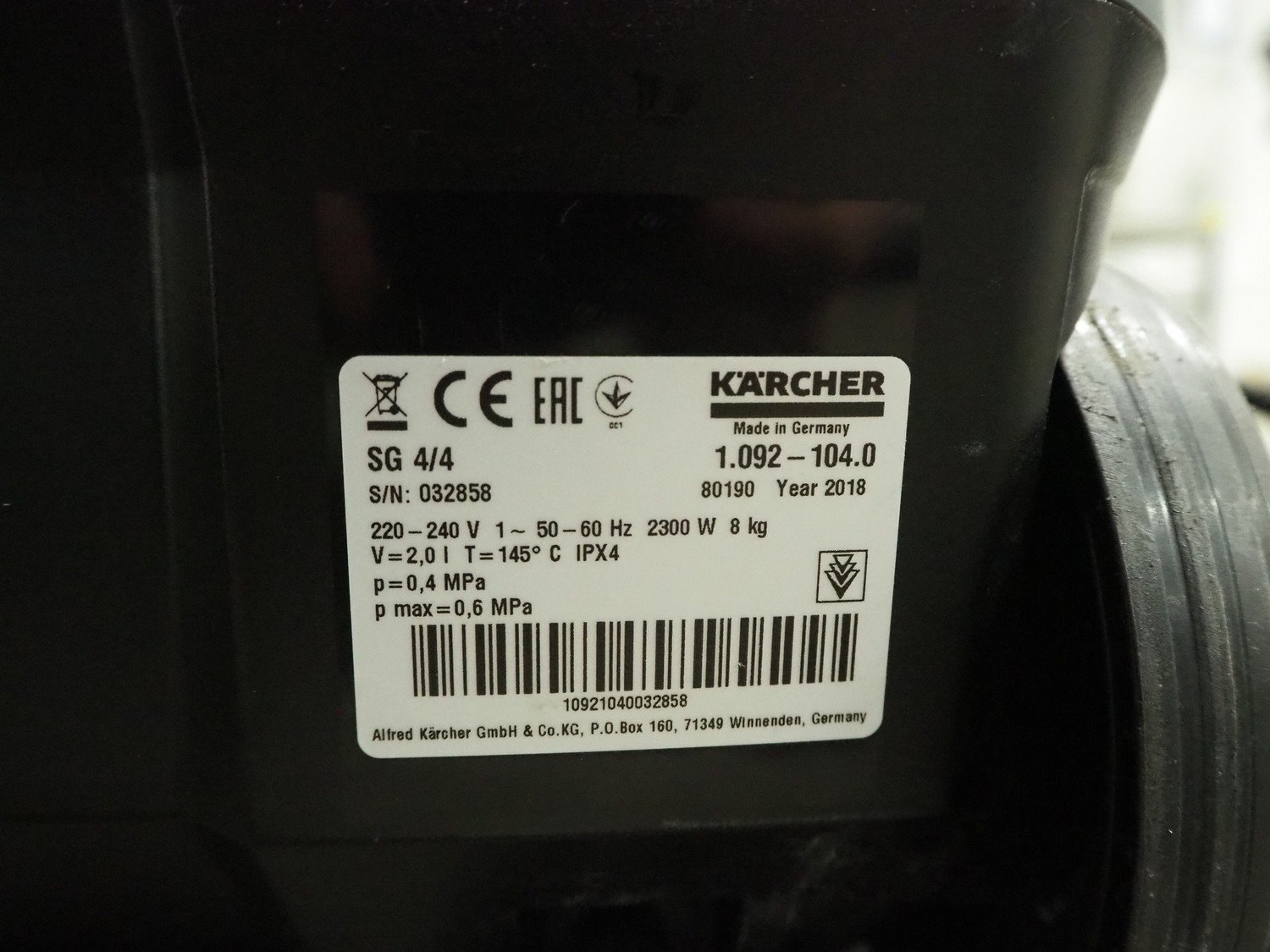 Kärcher steam cleaner, type: SG 4/4, serial number: 032858, year of construction: 2018, 220-240 V, 1 Ph, 50-60 Hz, 2300 W, volume: 2 liter, dimensions: 350 mm x 300 mm x 800 mm.