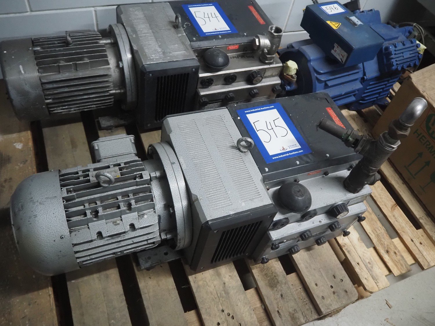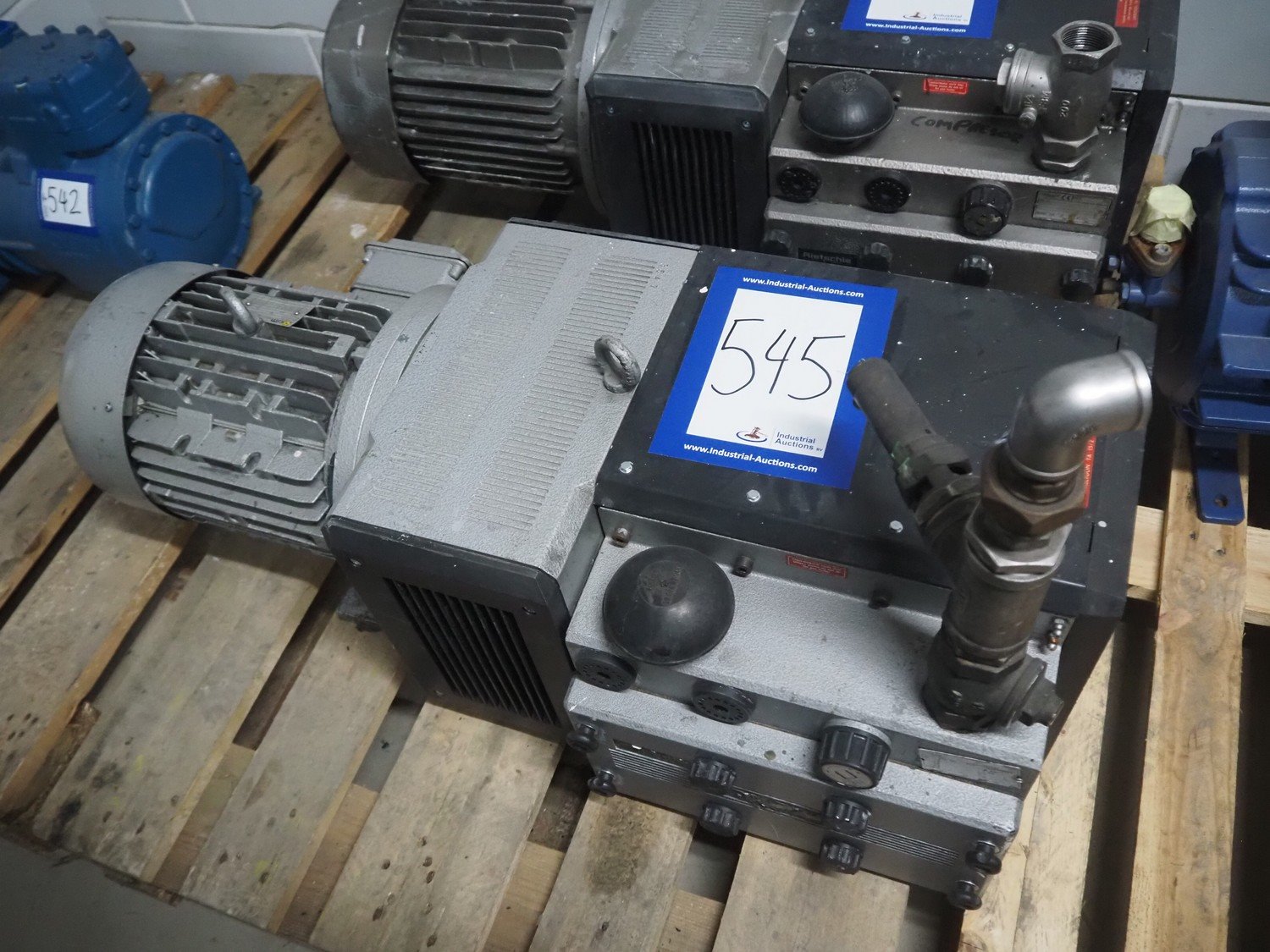 Rietschle vacuum pump, type: DTA 100/1(01), year of construction: 2007, serial number: 2553547, capacity: 100 m³ per hour, dimensions: 950 mm x 450 mm x 600 mm.