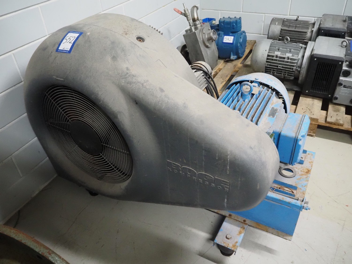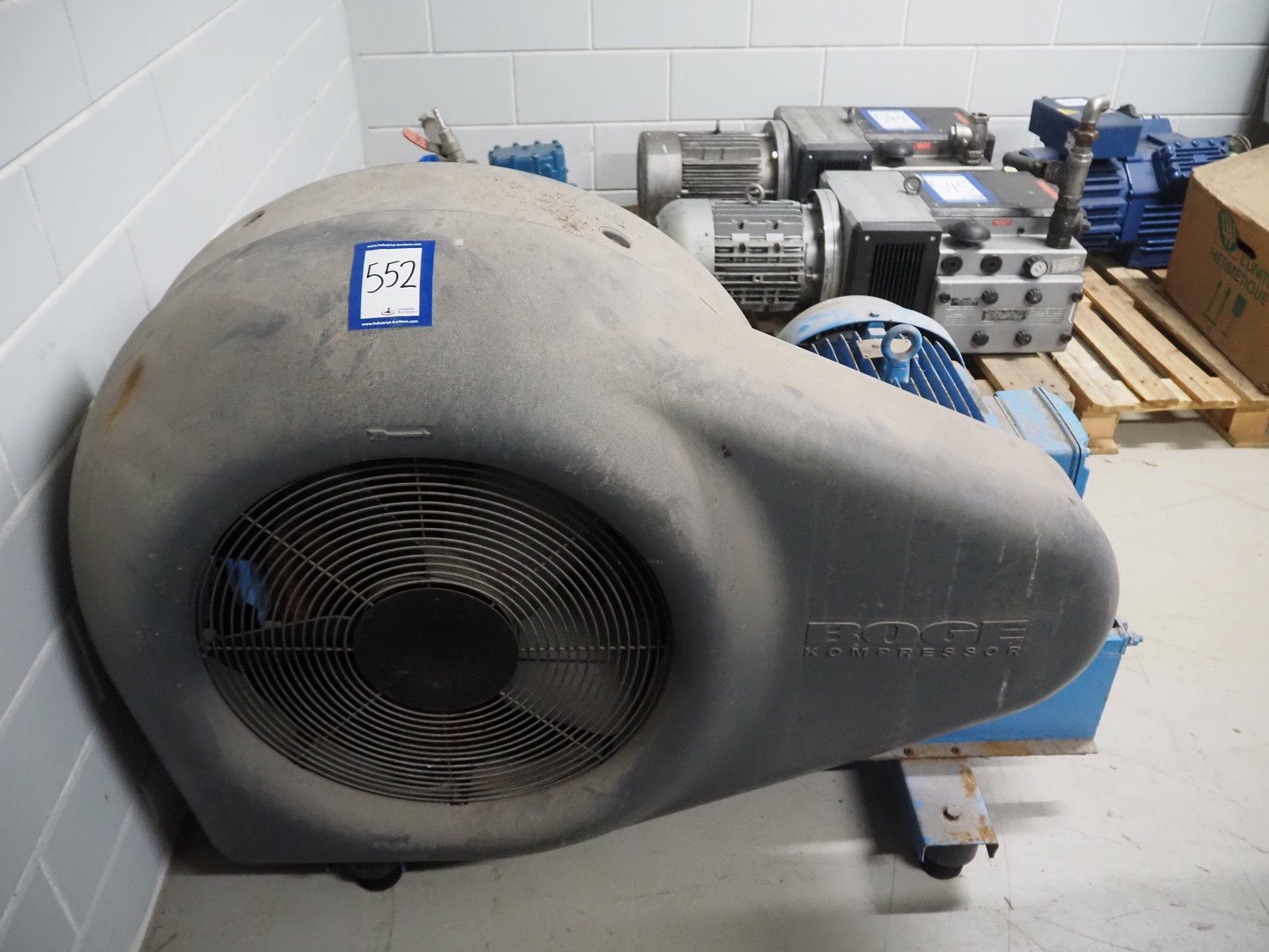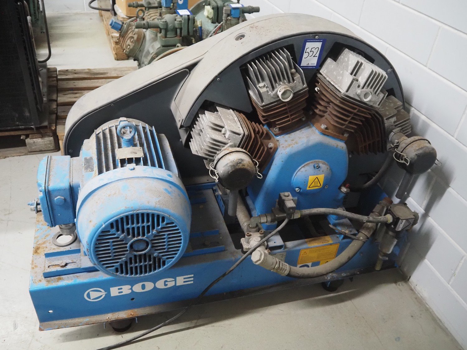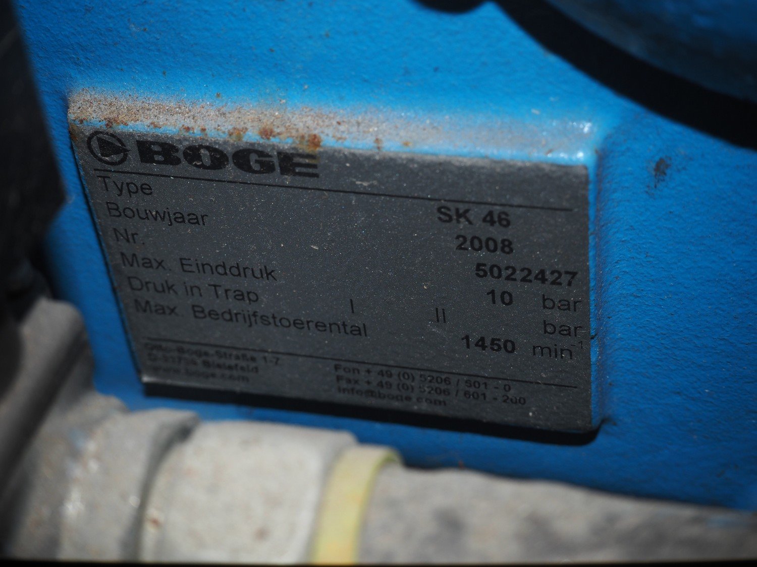 Boge air compressor, type: SK 46, number: 5022427, year of construction: 2008, 11,0 kW, maximum pressure: 10 bar, dimensions: 1370 mm x 700 mm x 900 mm.
