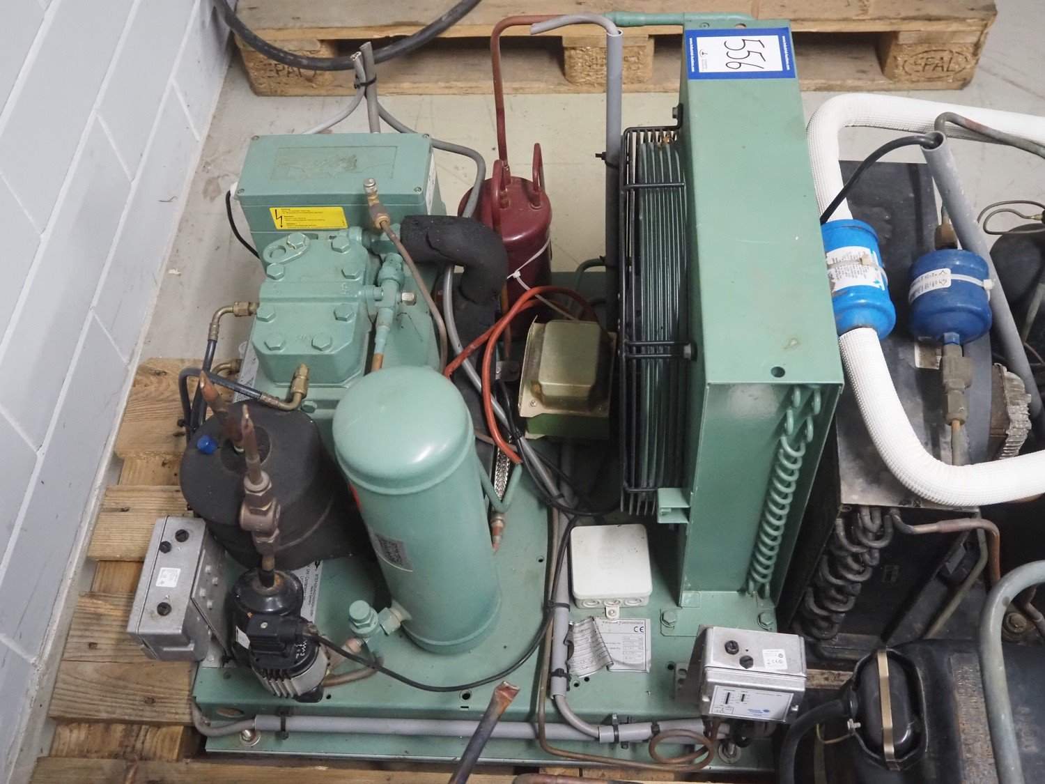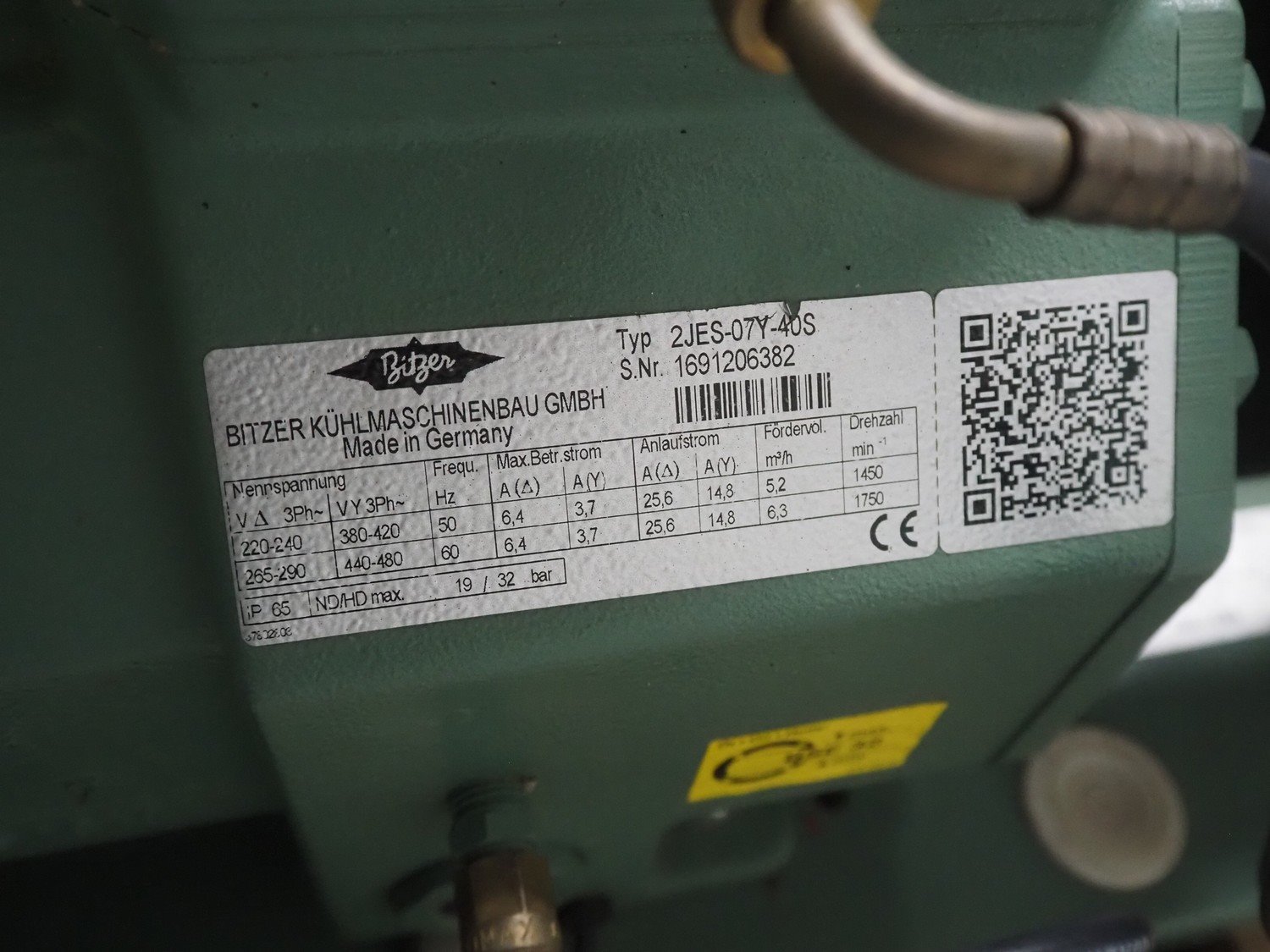 Bitzer Kühlmaschinenbau GmbH cooling compressor with condenser, type: 2JES-07Y-40S, serial number: 1691206382, dimensions: 650 mm x 550 mm x 500 mm.