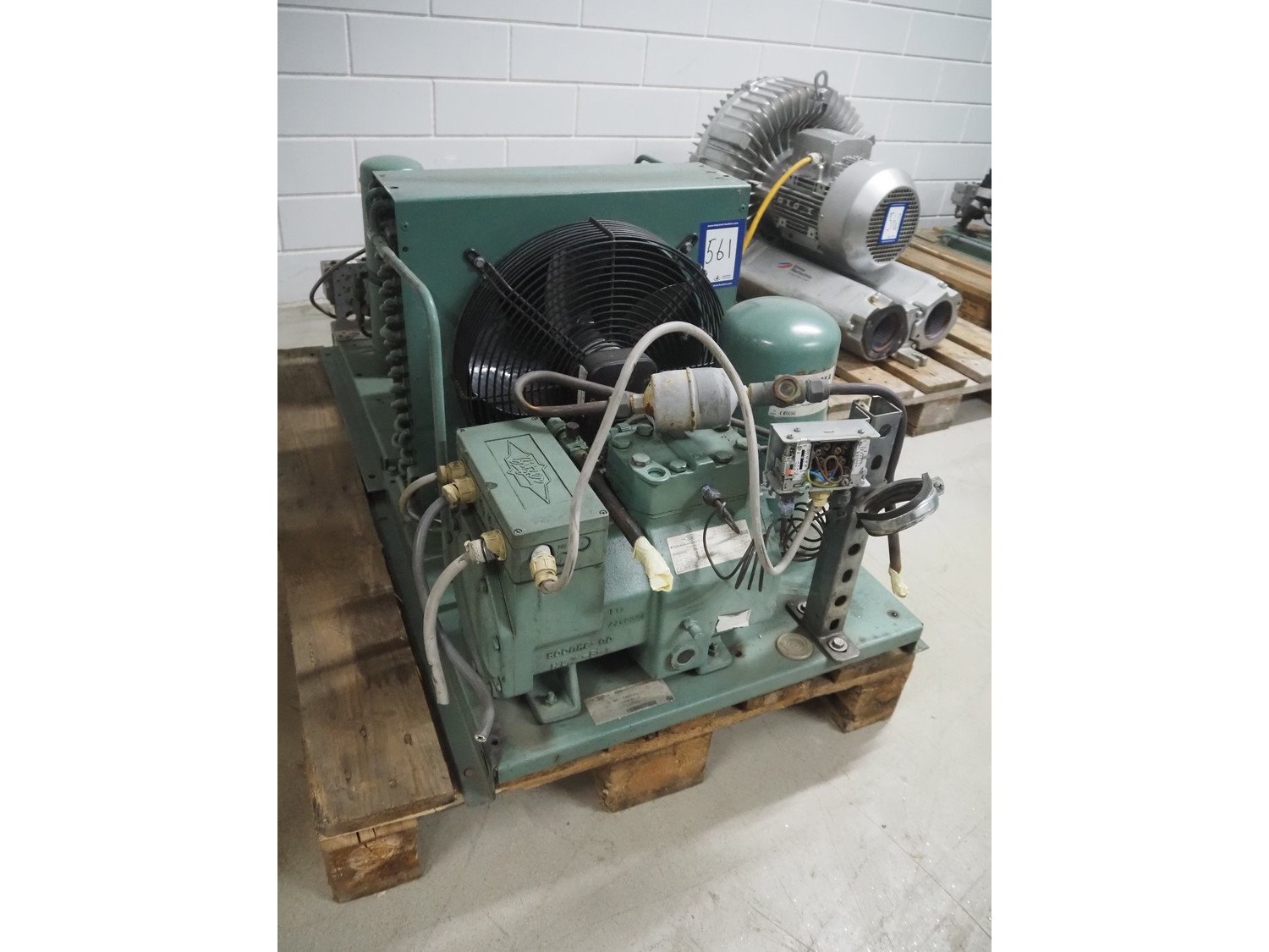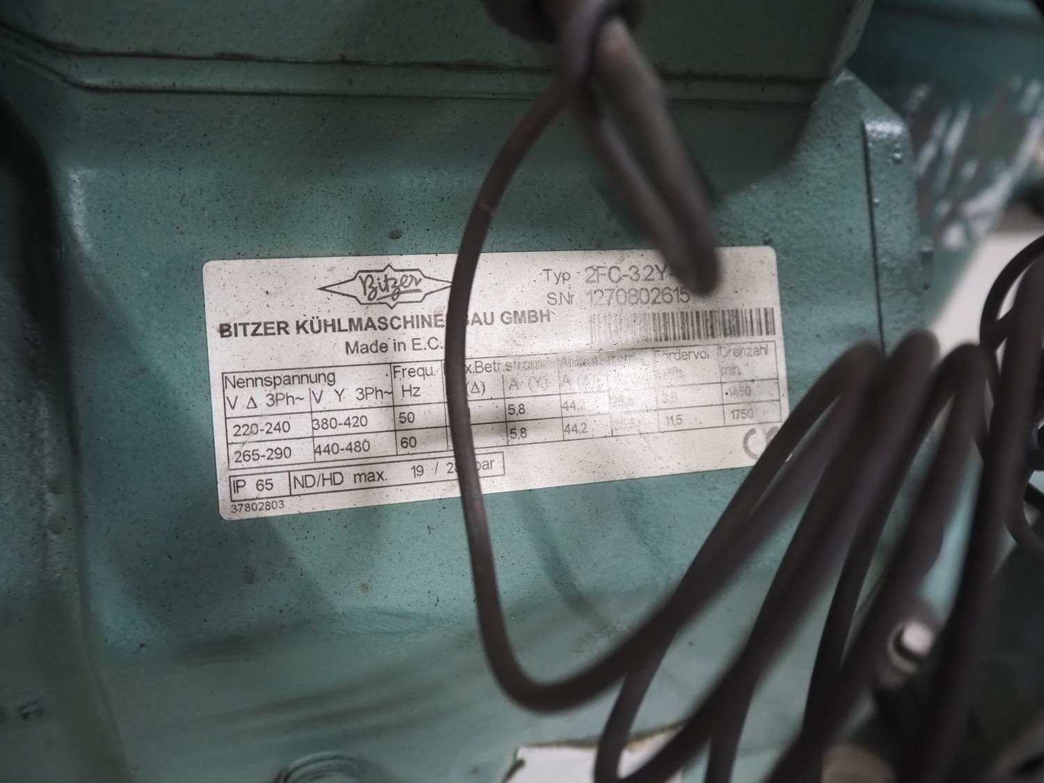 Bitzer Kühlmaschinenbau GmbH cooling compressor with condenser, type: 2FC-3.2Y-40S, serial number: 1270802615, dimensions: 650 mm x 550 mm x 500 mm.