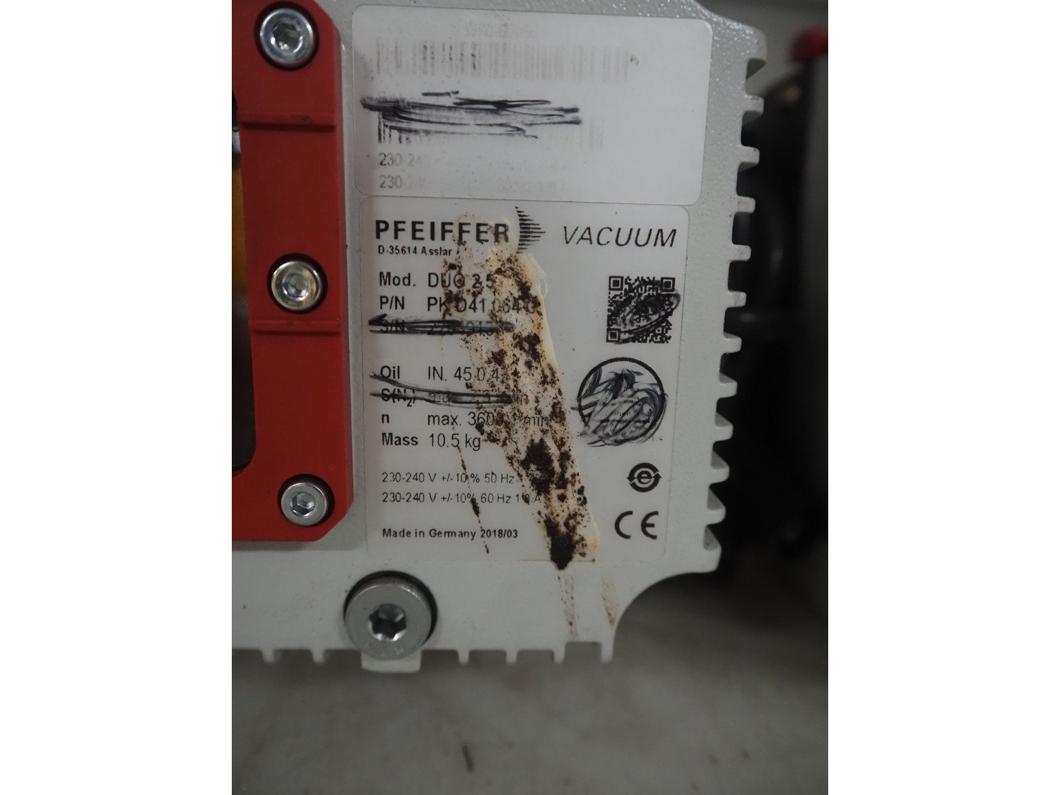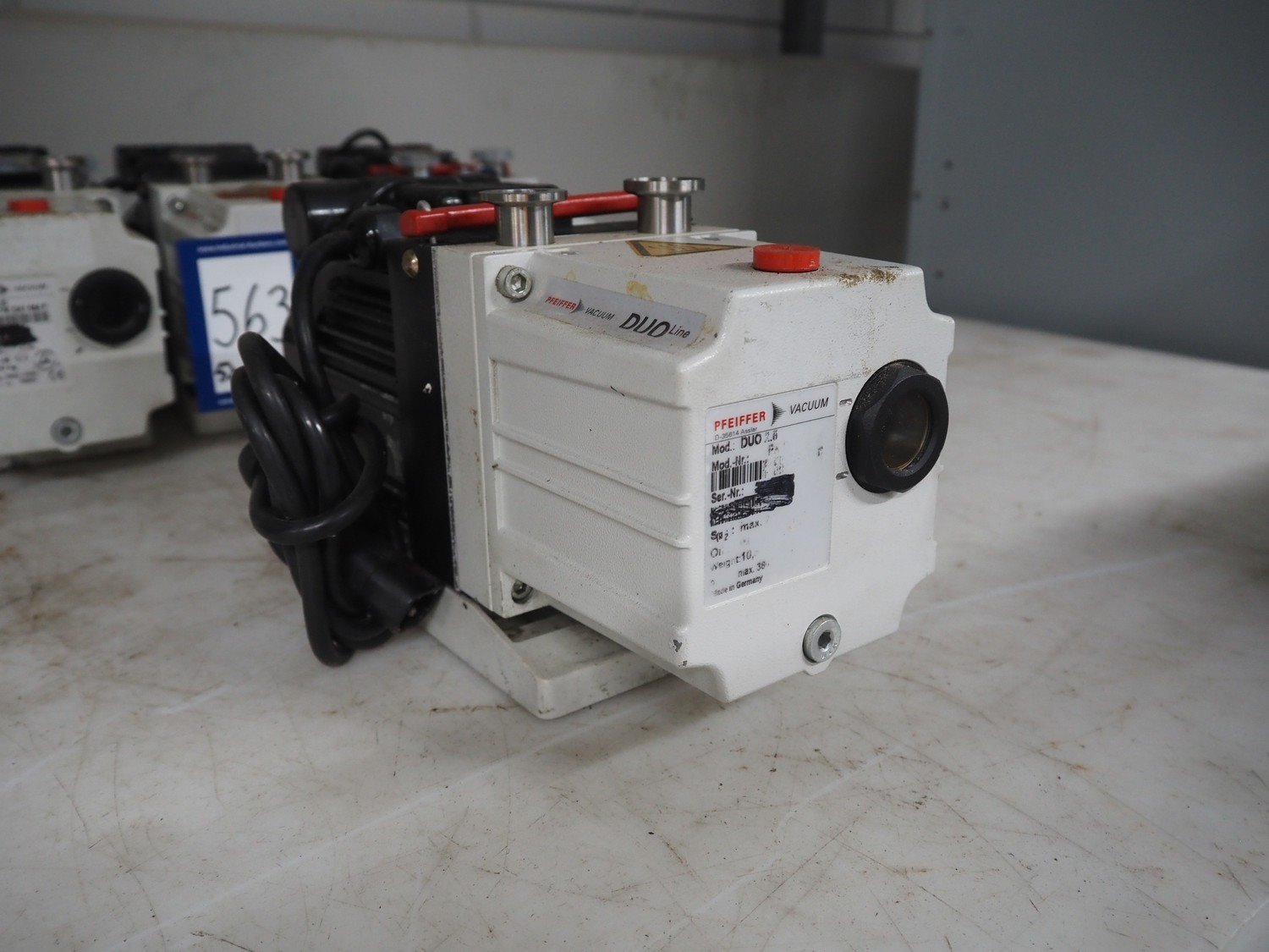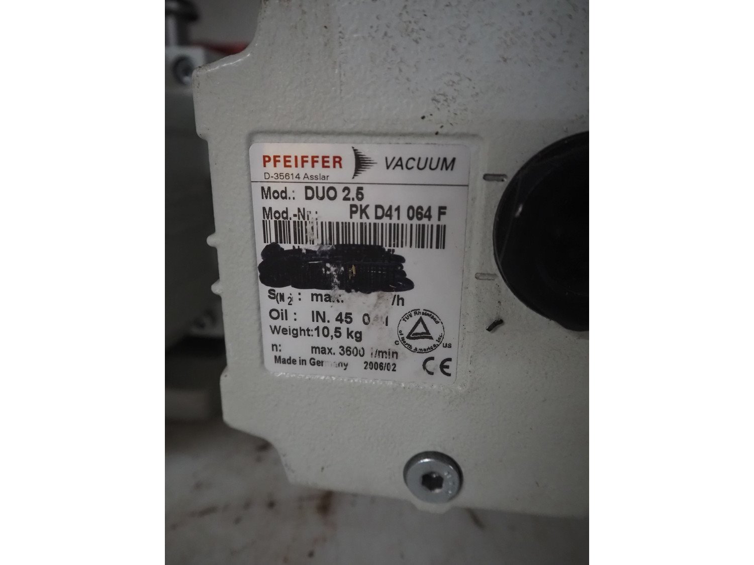 5 Pfeiffer Vacuum pumps, model: DUO 2.5 and DUO 2.6, year of construction: 2018/2013/2006, capacity: 2.9 m³ per hour, weight: 10.5 kg, dimensions: (3x) 310 mm x 120 mm x 190 mm.