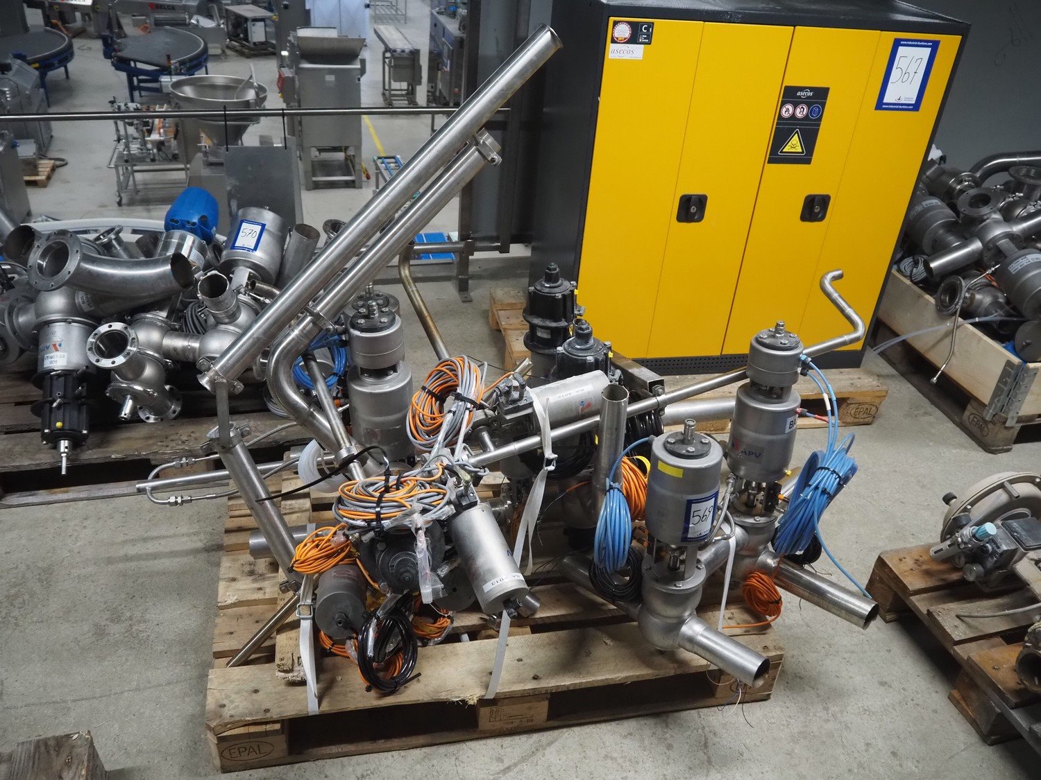 Pallet with various APV valves, dimensions pallet: 1600 mm x 1000 mm x 1300 mm
