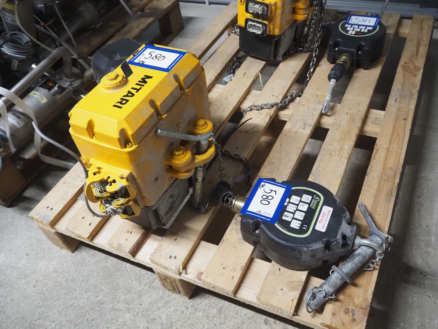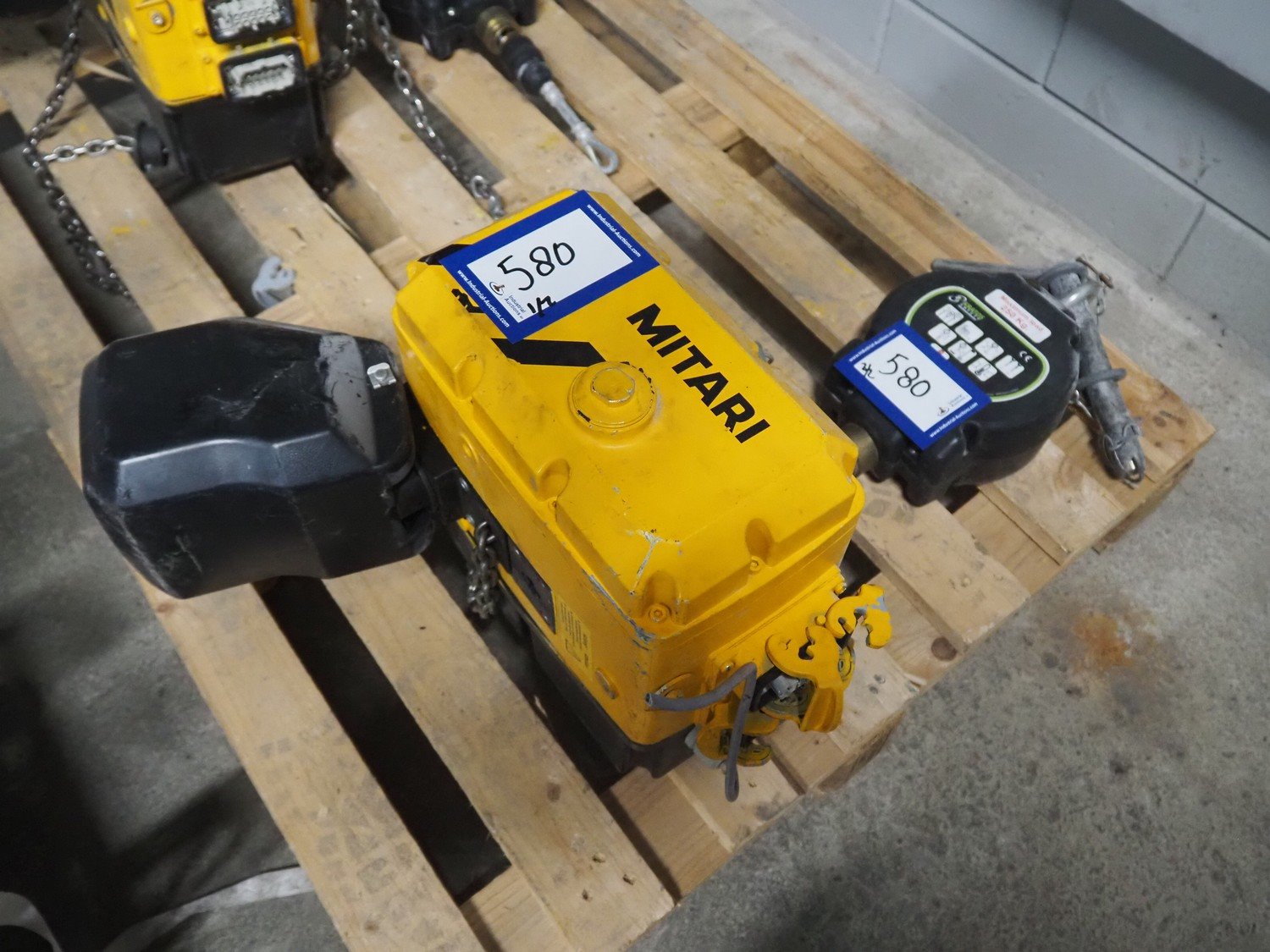 Mitari chain hoist, type: MVK2 500.8-1 1000.4-2, serial number: 1828021 0001, year of construction: 2017, capacity: 500/1000 kg with Kratos balancer.
