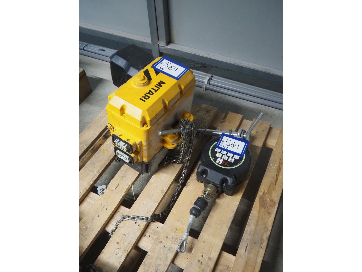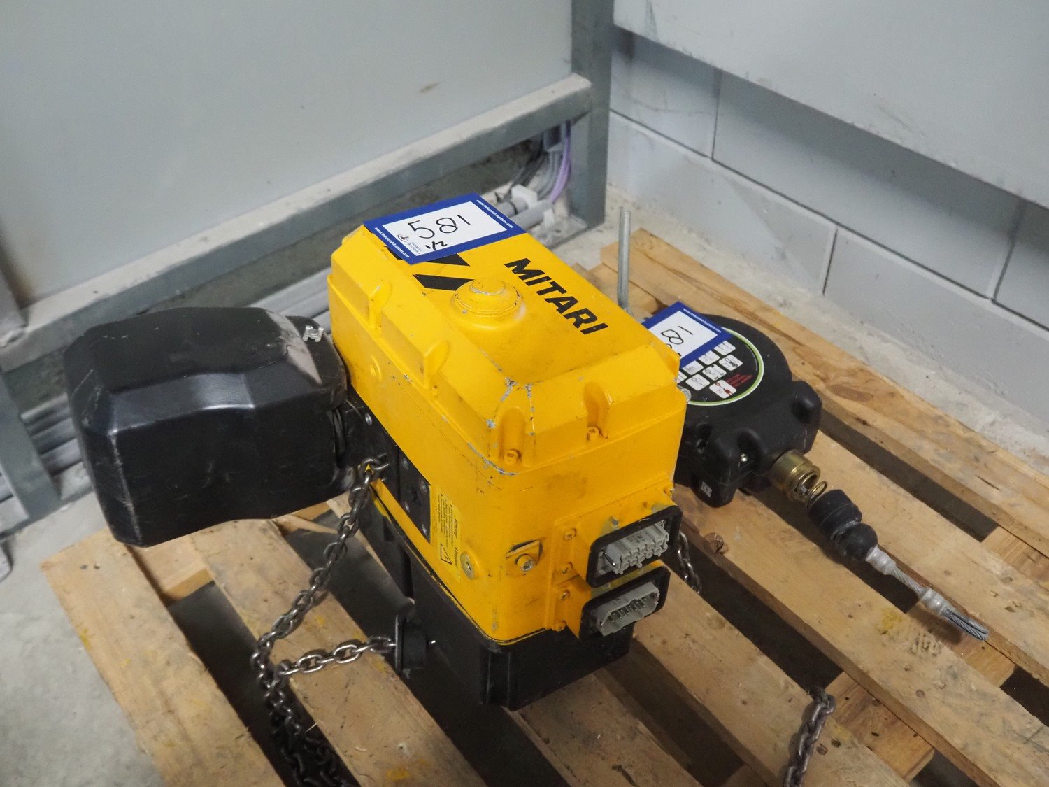 Mitari chain hoist, type: MVK2 500.8-1 1000.4-2, serial number: 1828021 0007, year of construction: 2017, capacity: 500/1000 kg with Kratos balancer.