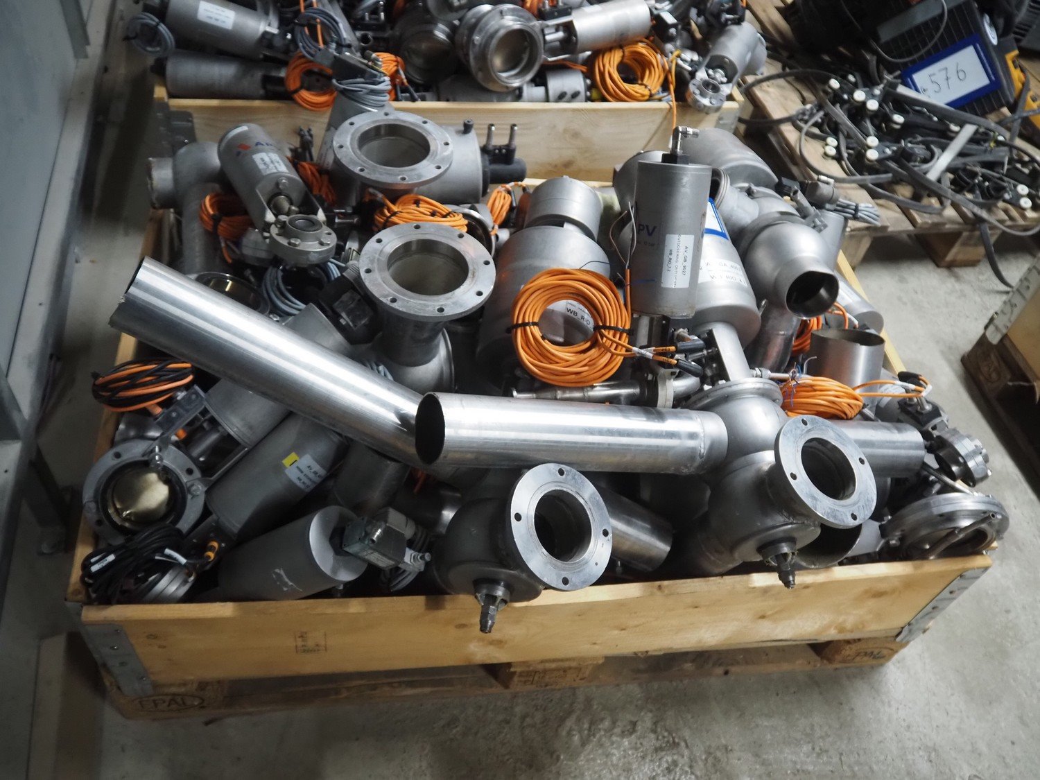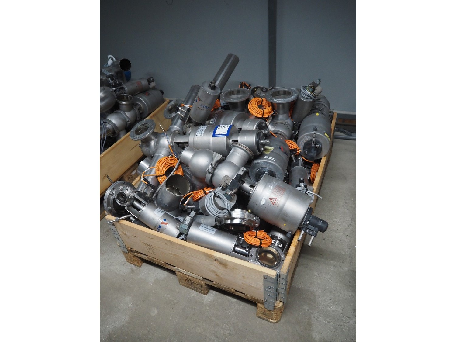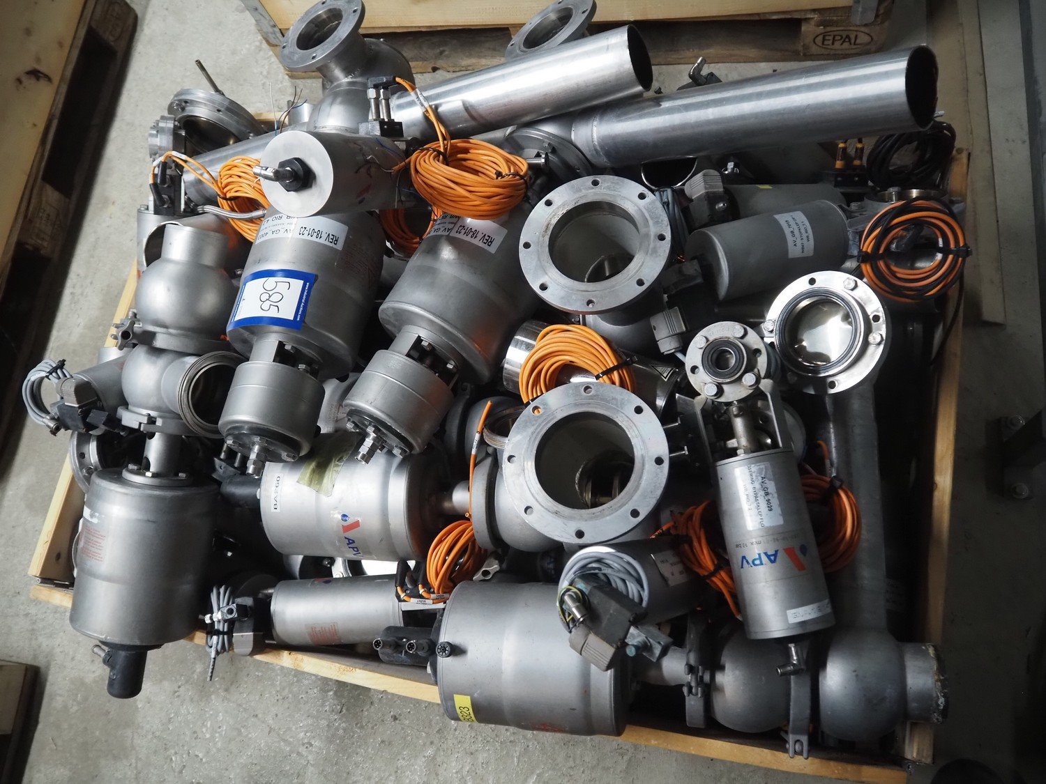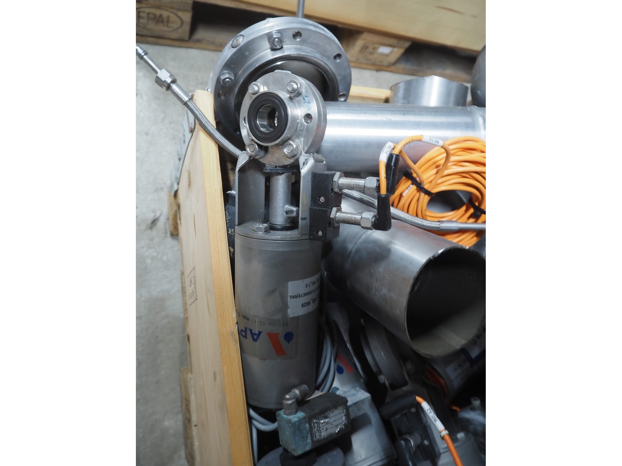Pallet with various APV valves, dimensions pallet: 1200 mm x 800 mm x 750 mm