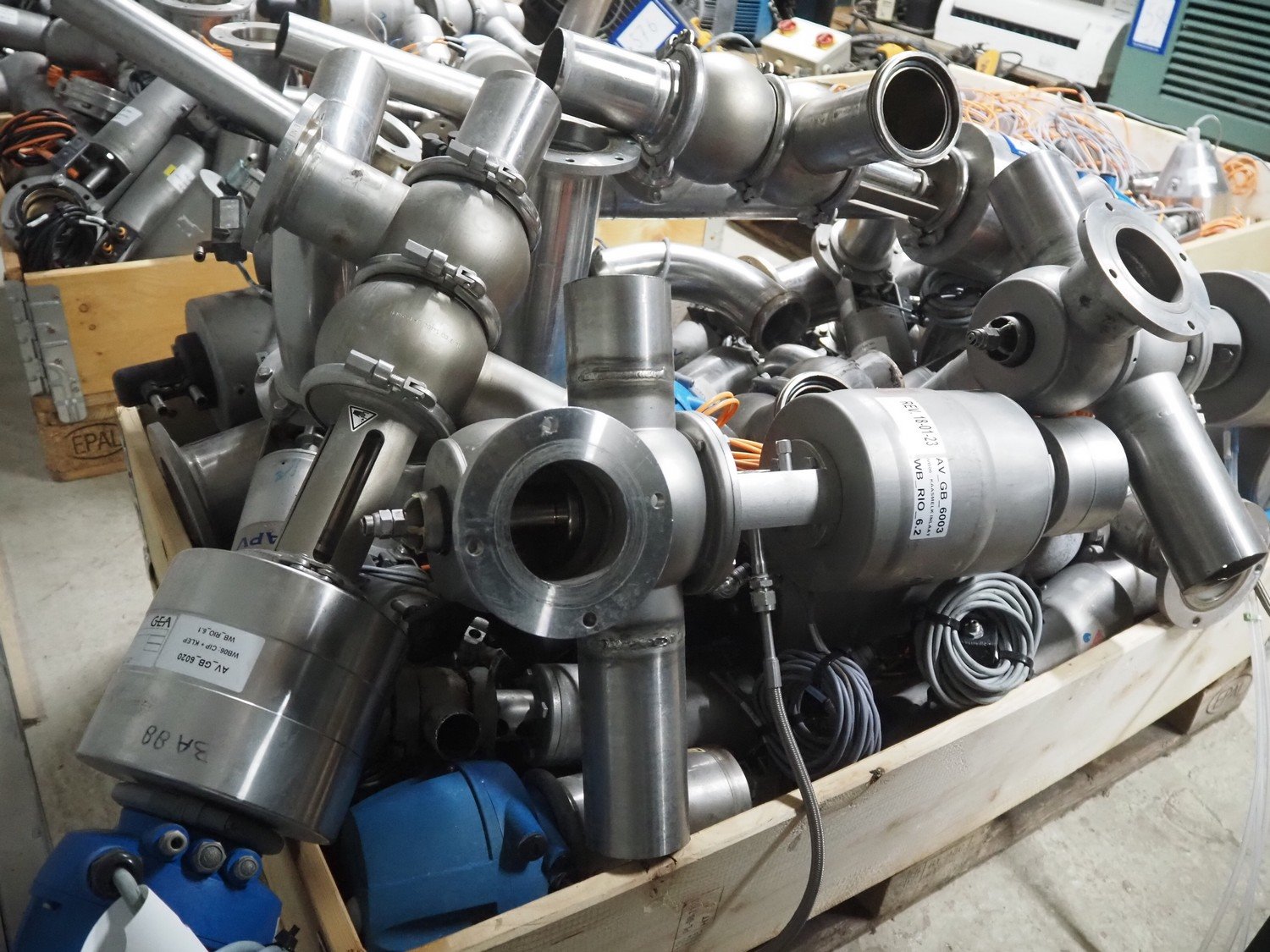 Pallet with various APV valves, dimensions pallet: 1200 mm x 800 mm x 750 mm