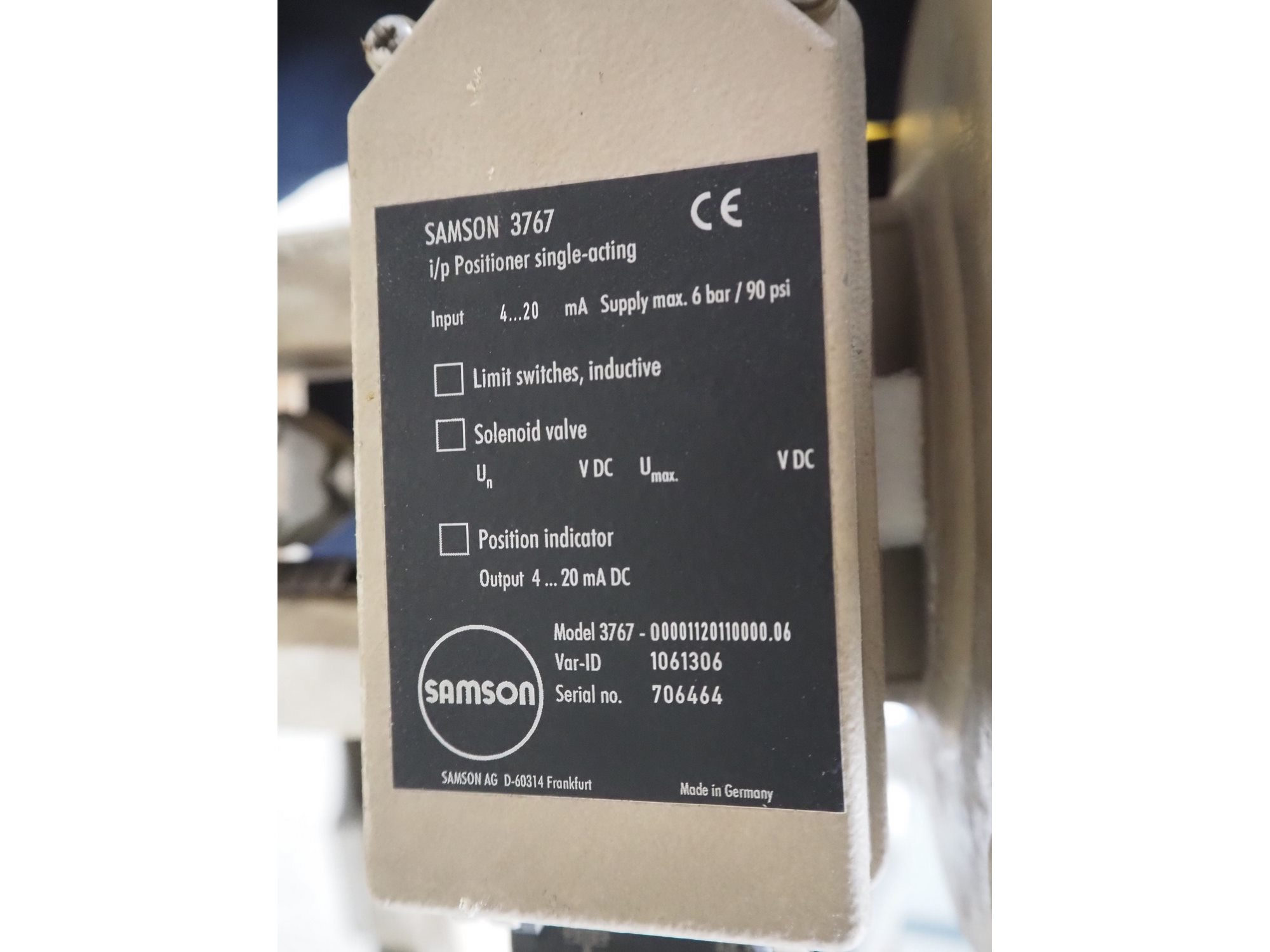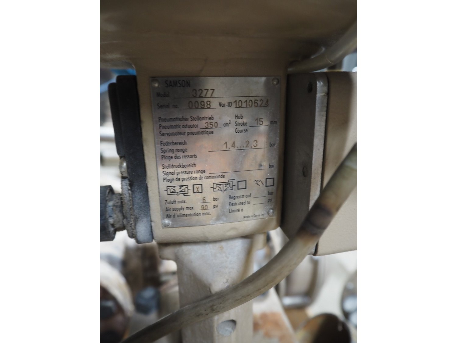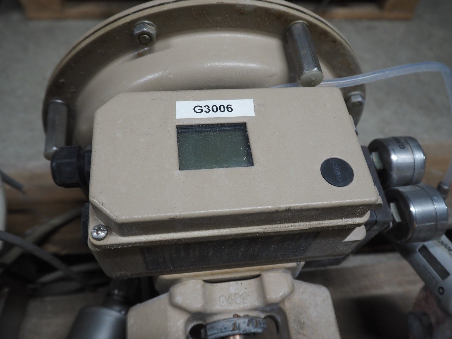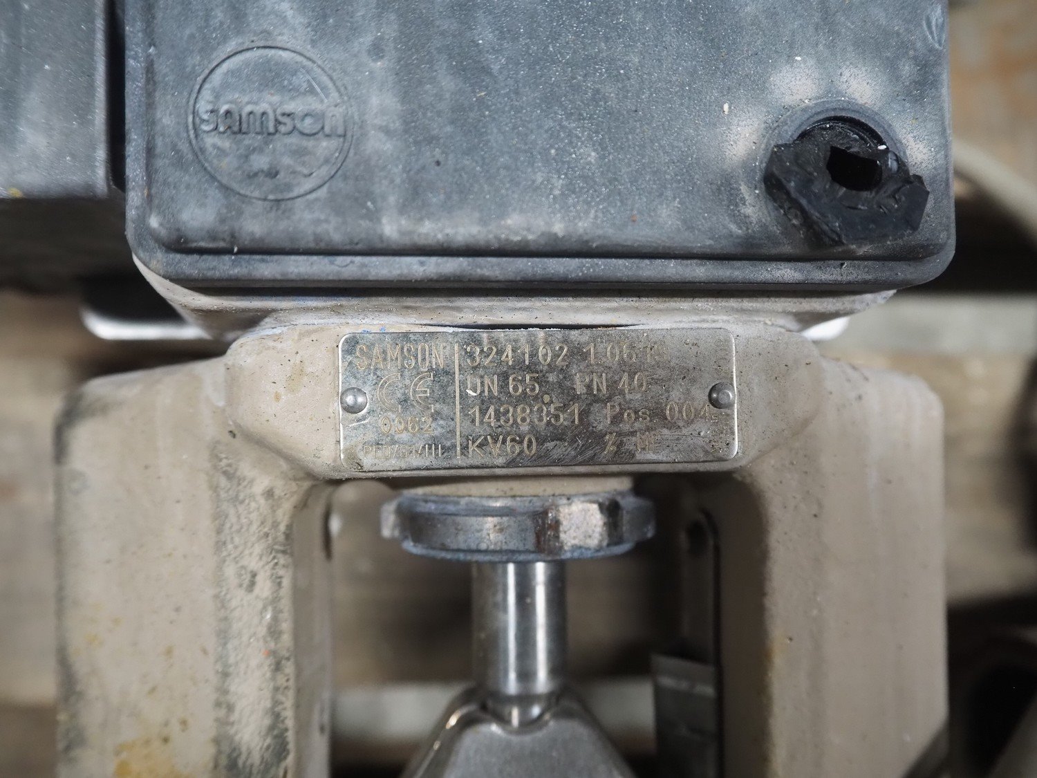 Pallet with 3 Samson valves, type: 3277, dimensions: 1200 mm x 800 mm x 500 mm.