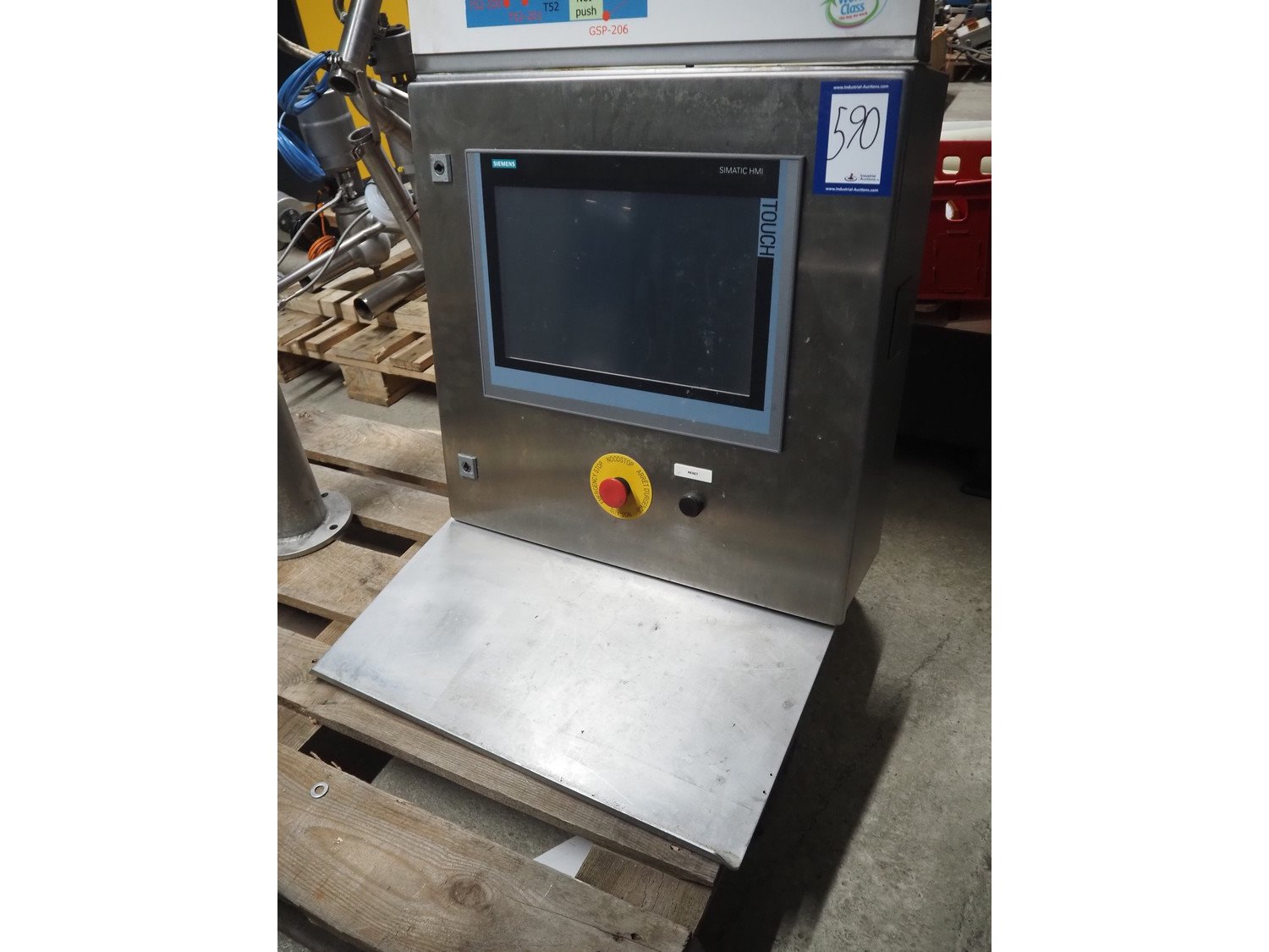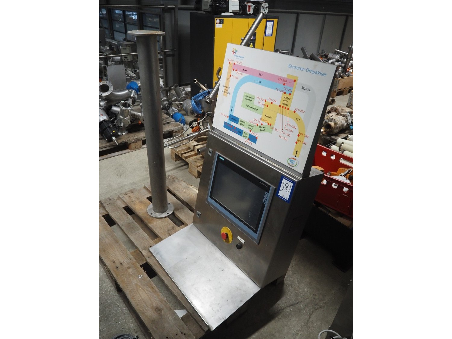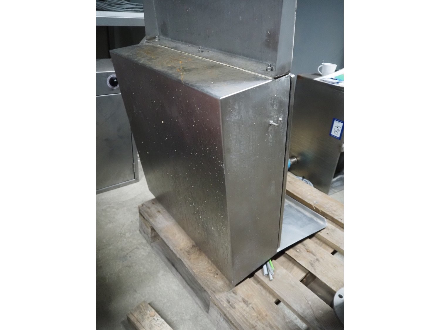 S/s control panel with leg, dimensions control panel: 650 mm x 600 mm x 1080 mm, dimensions leg: Ø 180 mm x 1115 mm.