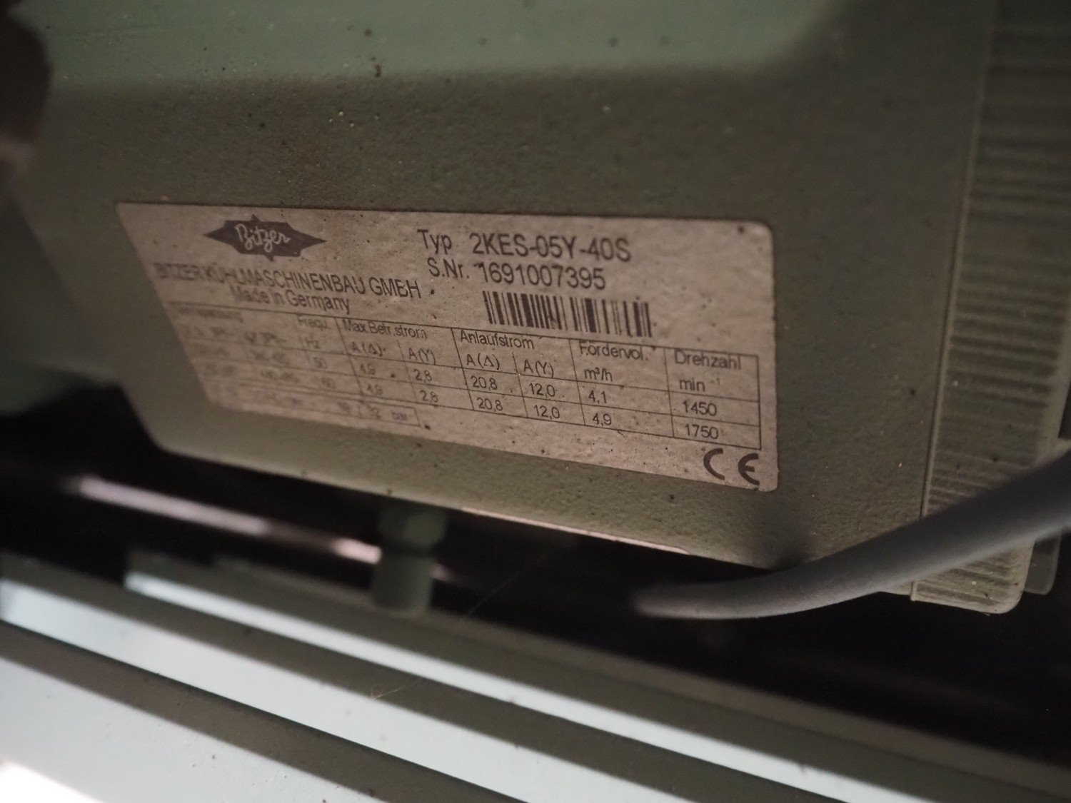 Bitzer Kühlmaschinenbau GmbH condensing unit with cooling compressor, type: 2KES-05Y-40S, capacity: 4,1/4,9 m3 per hour, dimensions: 850 mm x 850 mm x 600 mm.