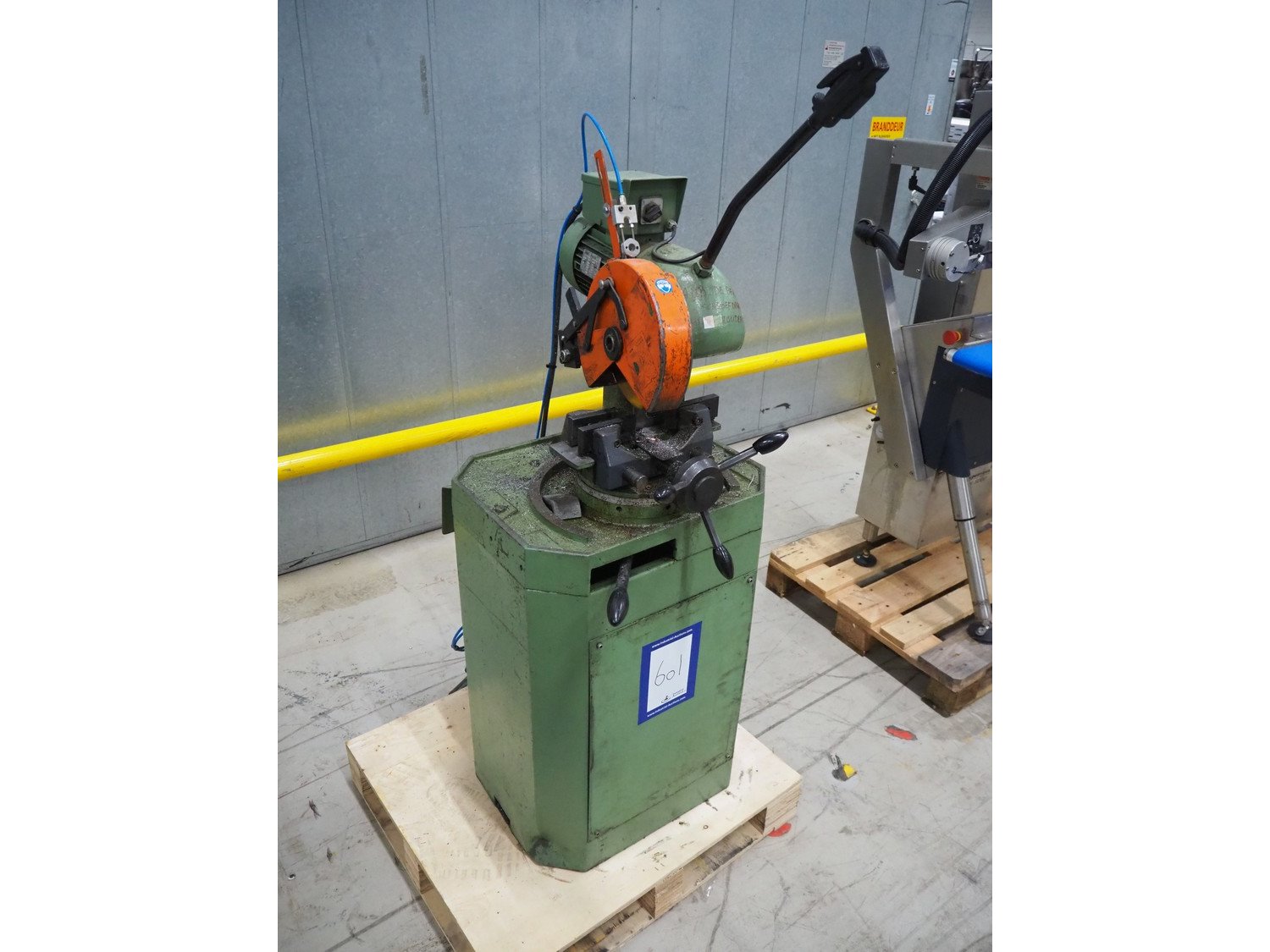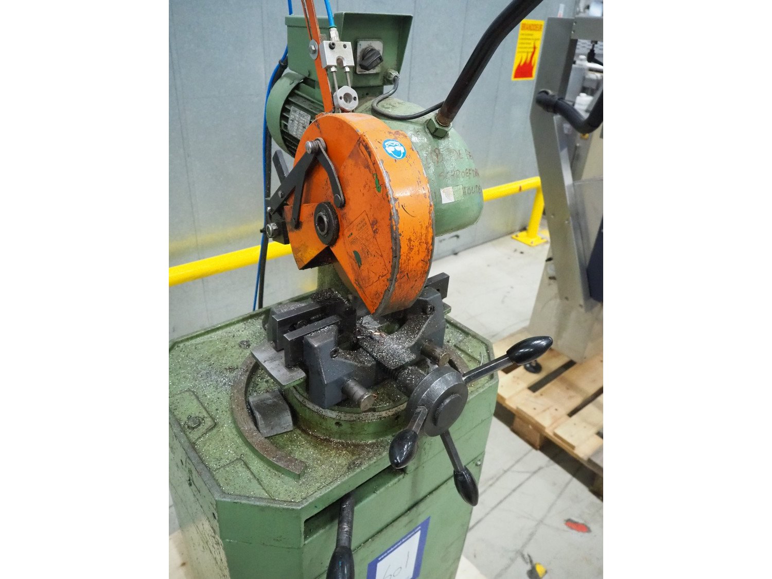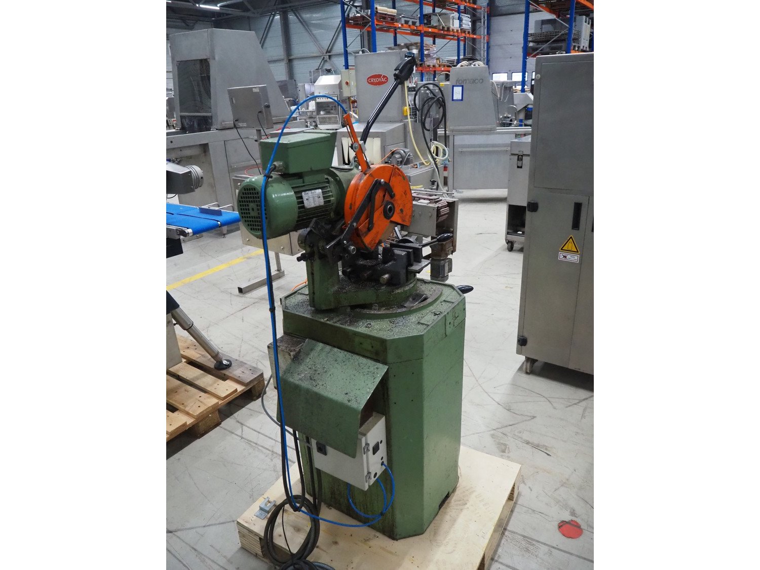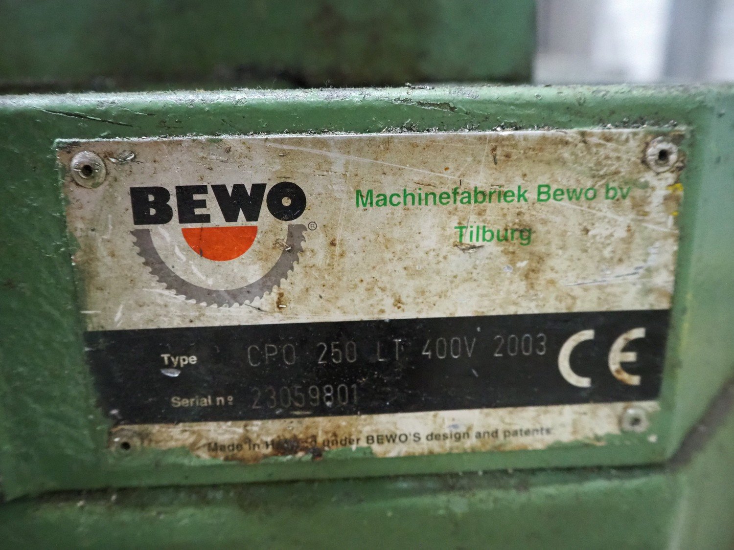 Bewo saw on working bench, type: CPO 250 LT 400V, serial number: 23059801, year of construction: 2003, diameter saw: 285 mm, total dimensions: 800 mm x 550 mm x 1780 mm.