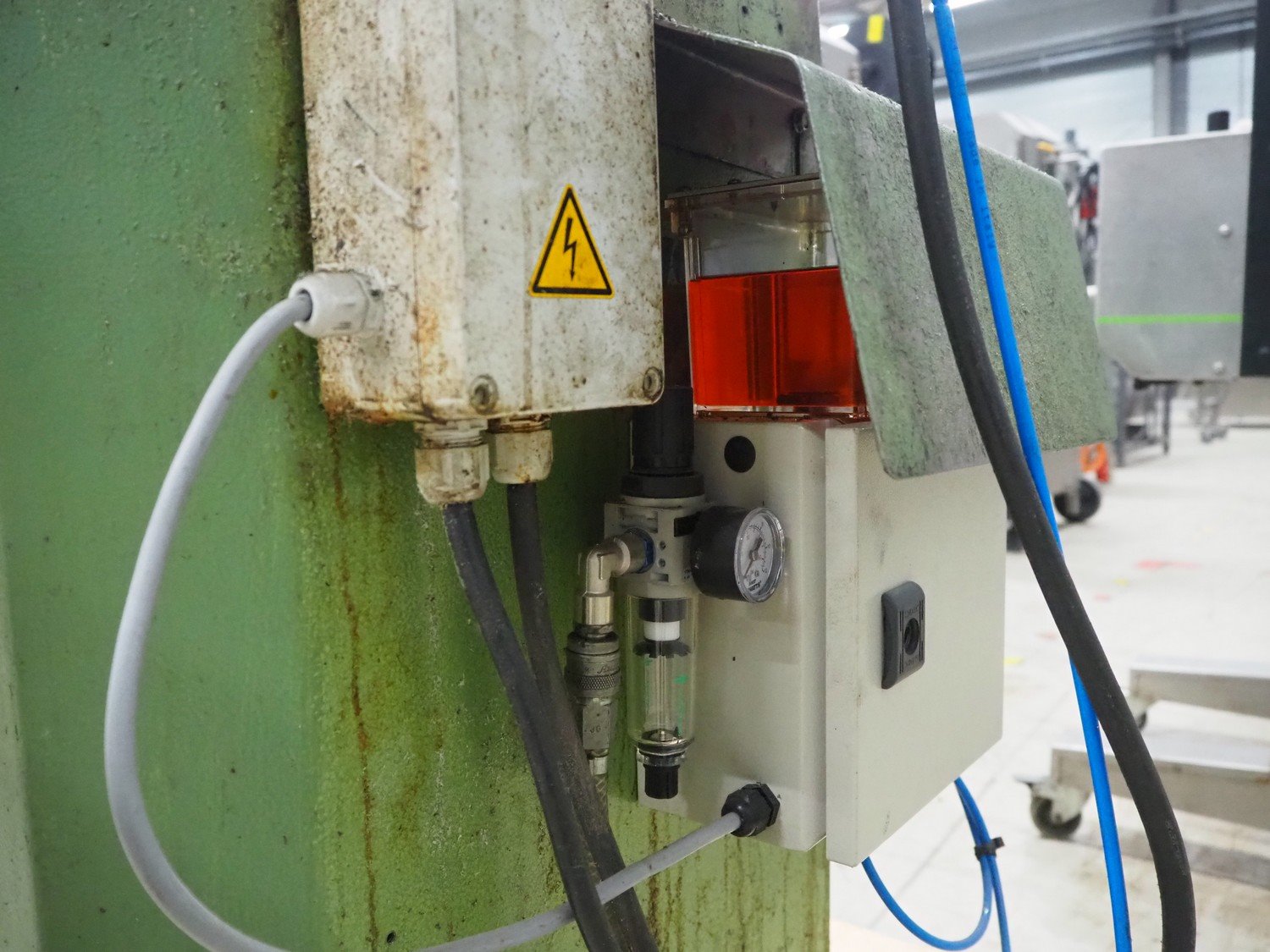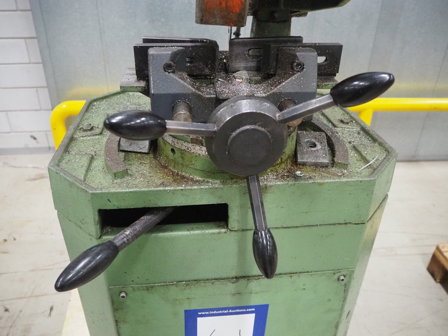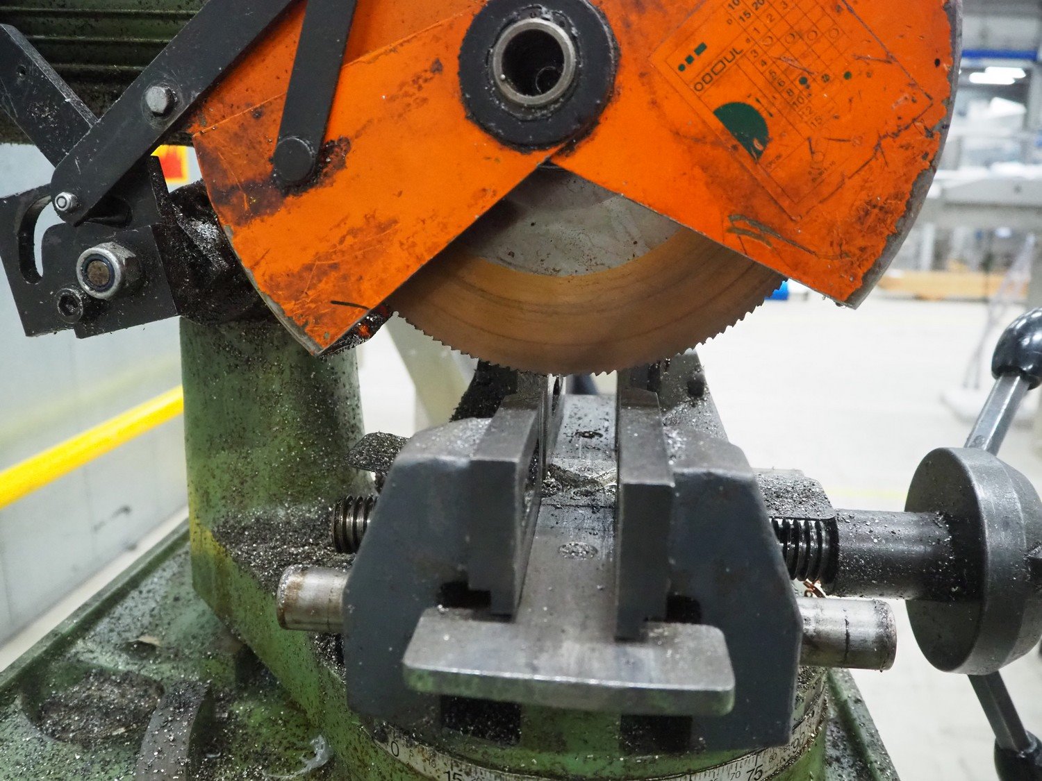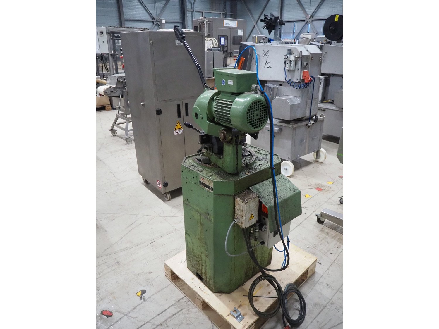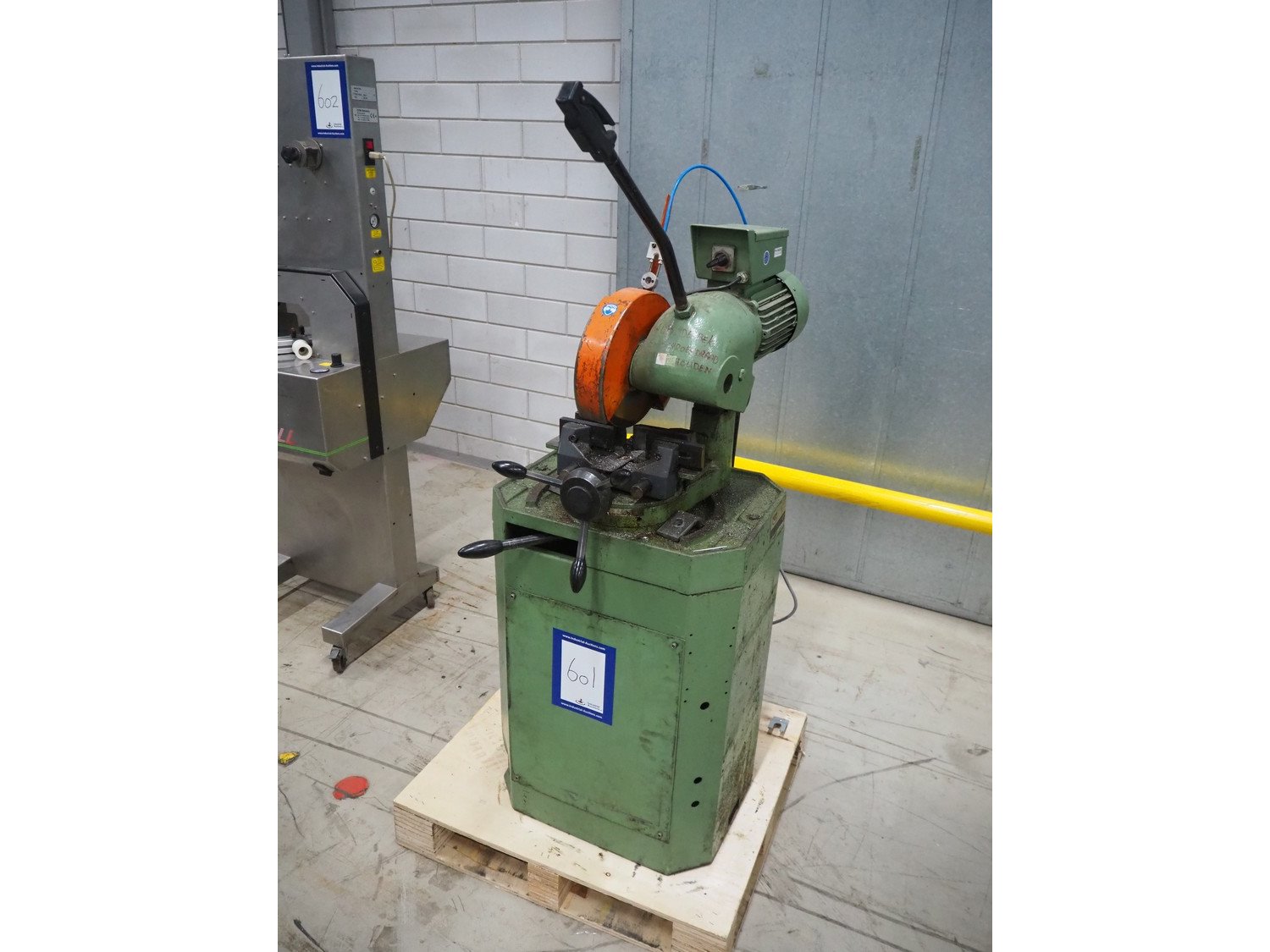 Bewo saw on working bench, type: CPO 250 LT 400V, serial number: 23059801, year of construction: 2003, diameter saw: 285 mm, total dimensions: 800 mm x 550 mm x 1780 mm.