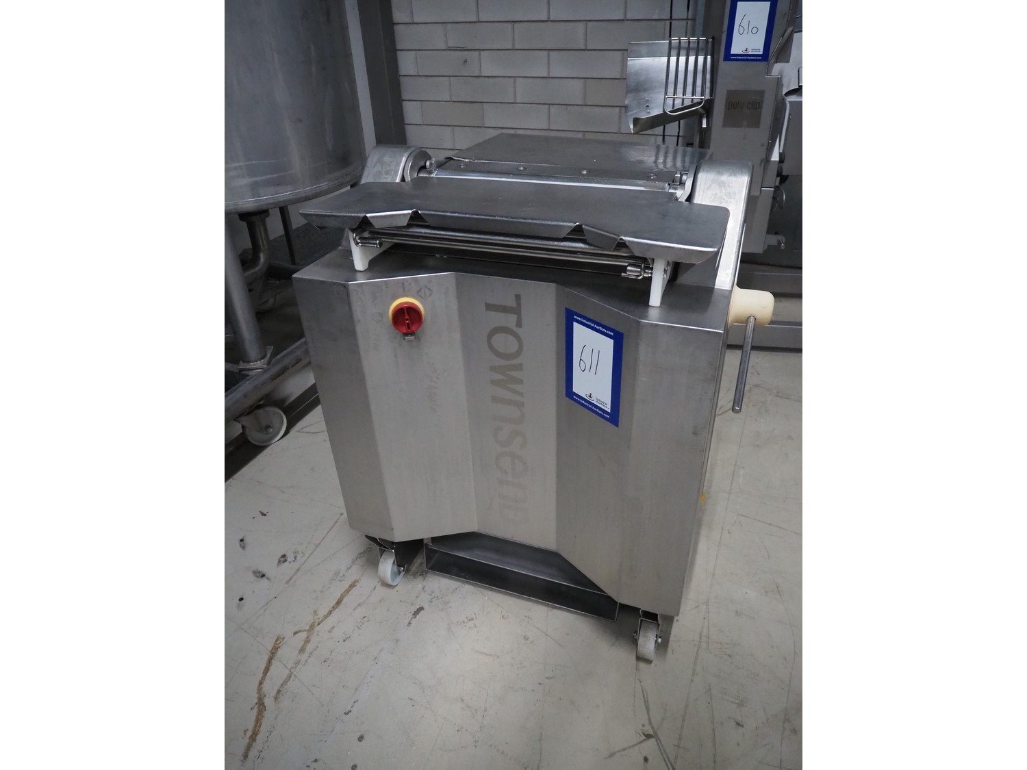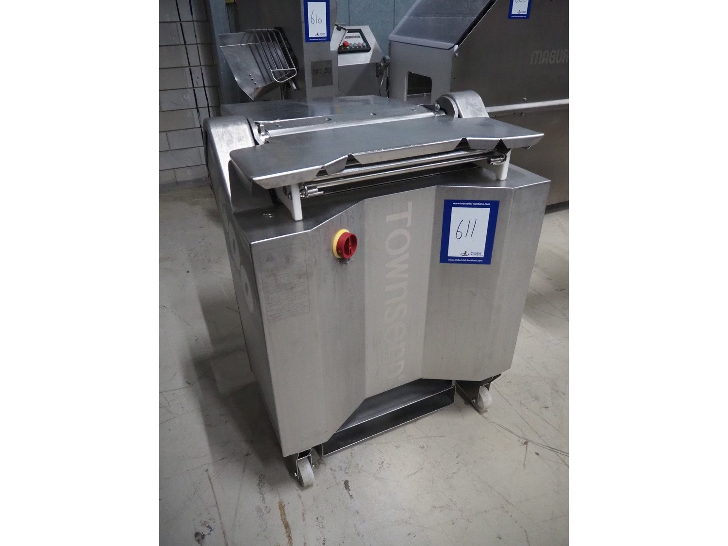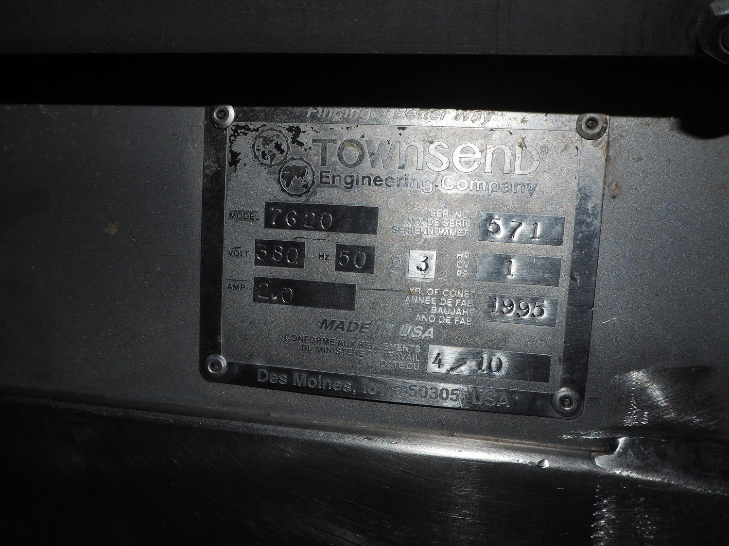 Townsend mobile skinning machine, model: 7620, serial number: 571, year of construction: 1995, 380 V, 3 Ph, 50 Hz, 2.0 A, working width: 510 mm, total dimensions: 900 mm x 850 mm x 1100 mm.