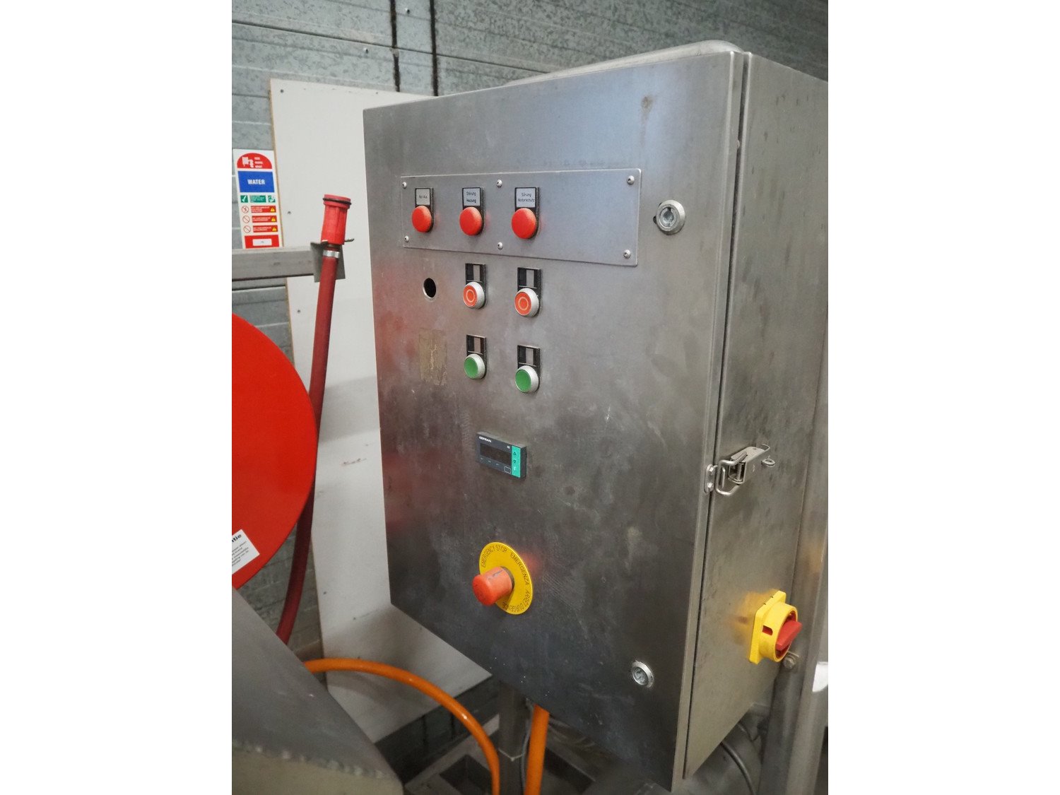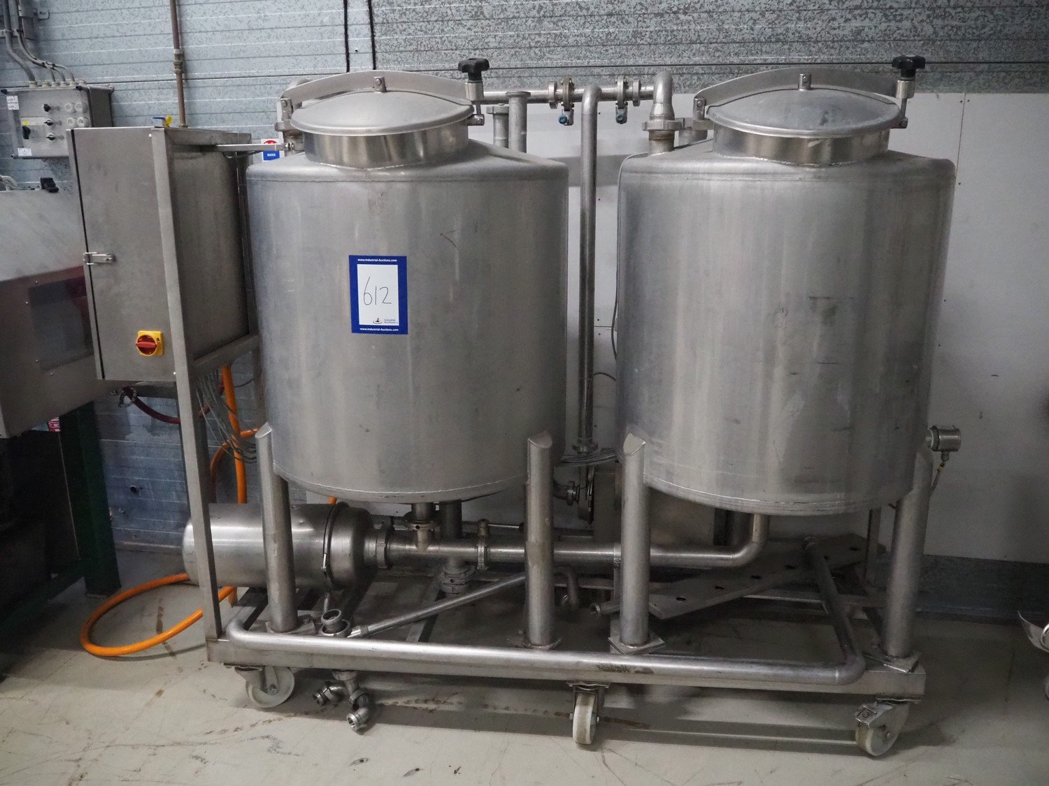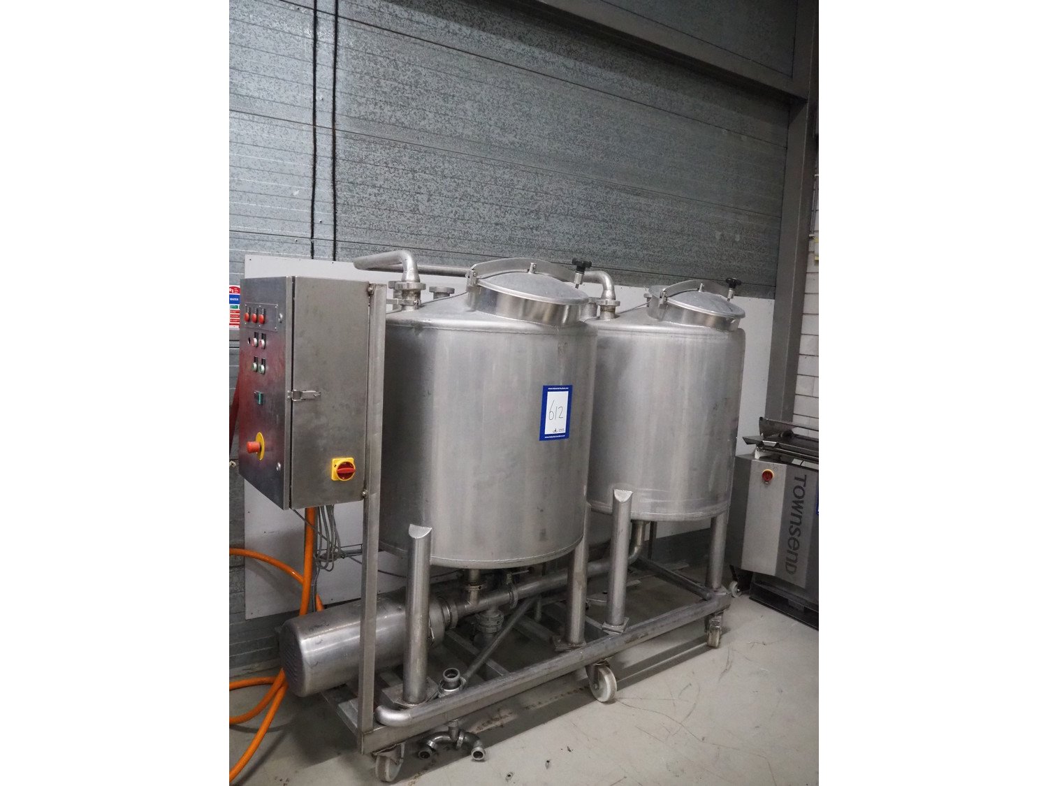 Schuy mobile CIP installation with 2 s/s tanks, type: CIP, machine number: 7023, inside dimensions tanks: (2x) Ø 800 mm x 900 mmm, total dimensions: 2550 mm x 1100 mm x 1950 mm.