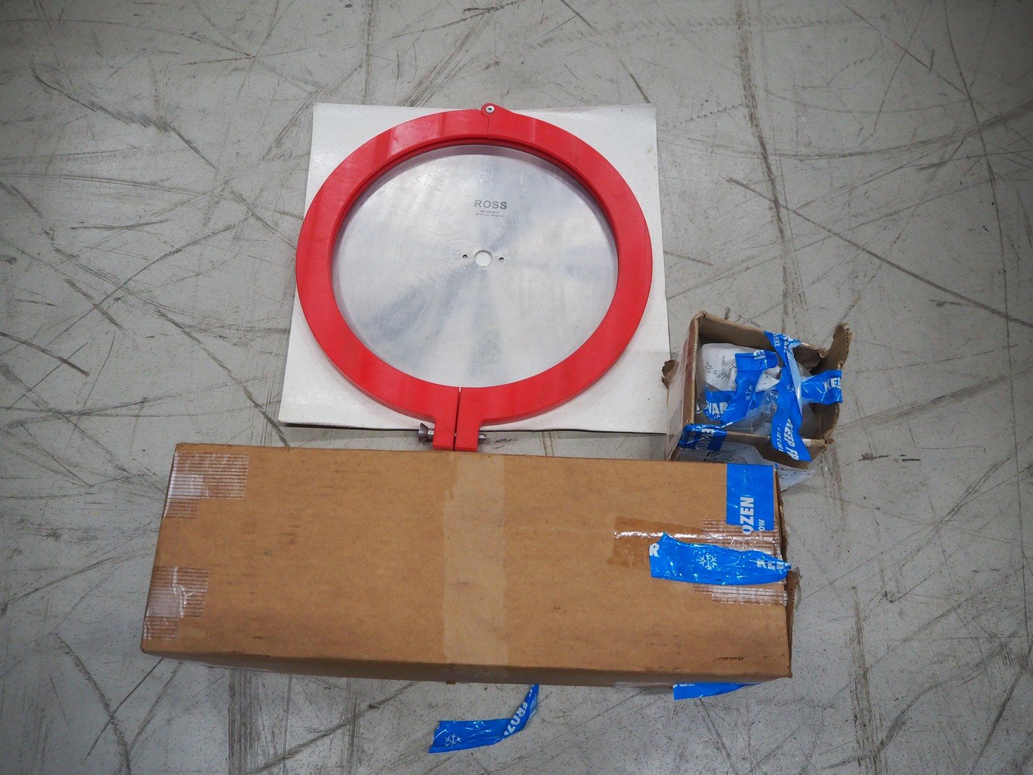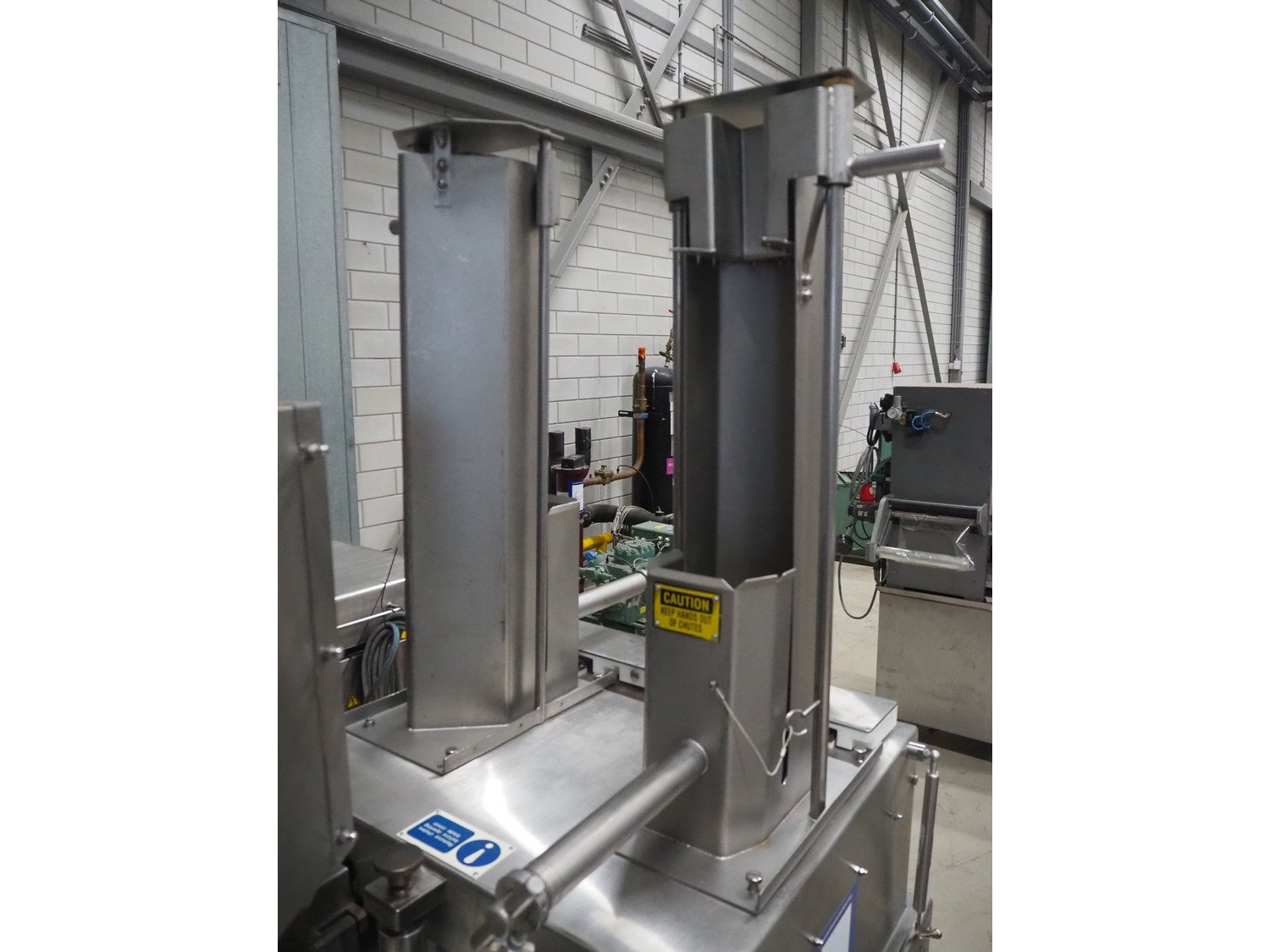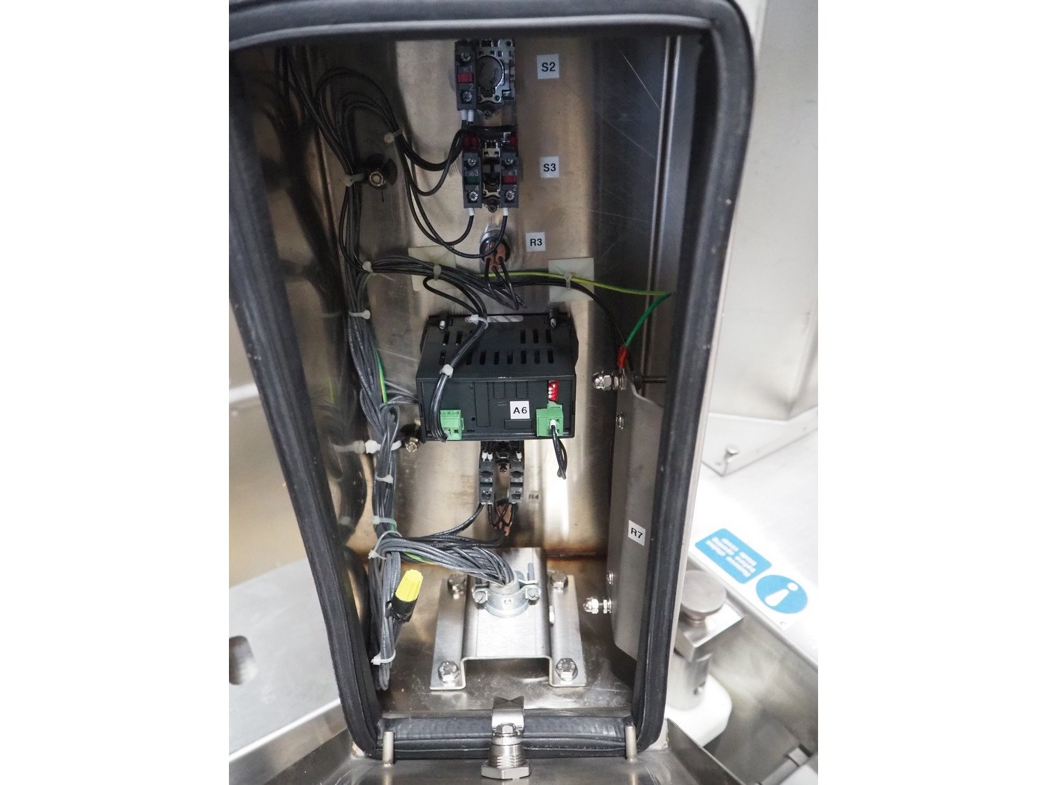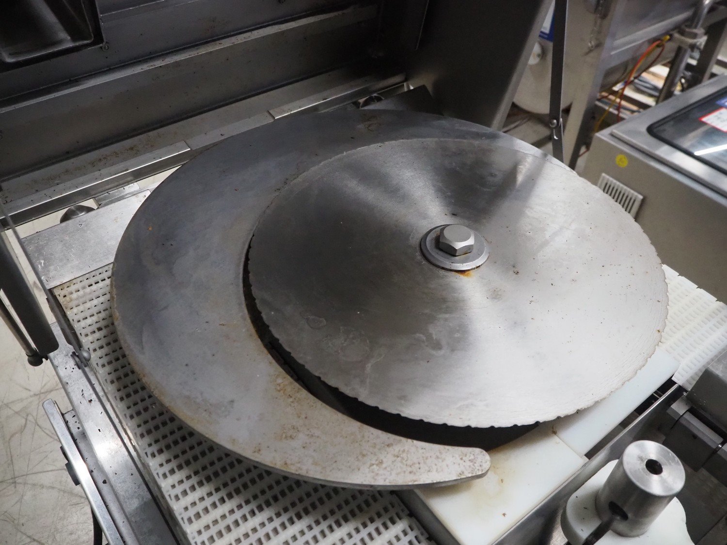 Ross Industries, Inc. mobile slicer, model: 950-6, serial number: 1648, year of construction: 4/2015, 380/415 V, 3 Ph, 50 Hz, 20/13/8 A, plastic mesh belts, belt width: (2x) 180 mm, total dimensions: 1660 mm x 800 mm x 1660 mm. Including extra knife and parts.
