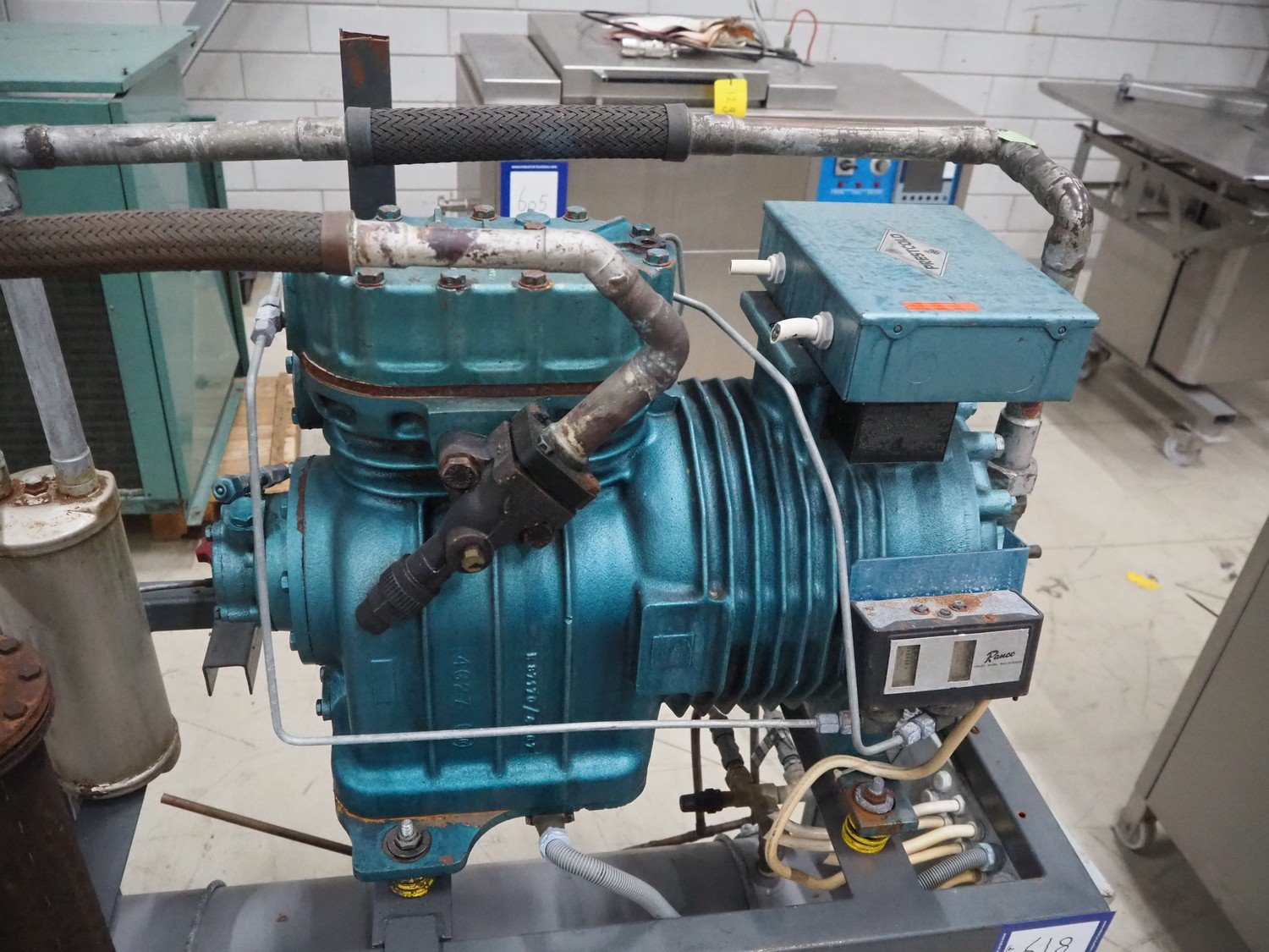 Prestcold cooling unit with Prestcold cooling compressor, model: I2HL, serial number: AUW 01113, dimensions: 1100 mm x 1800 mm.