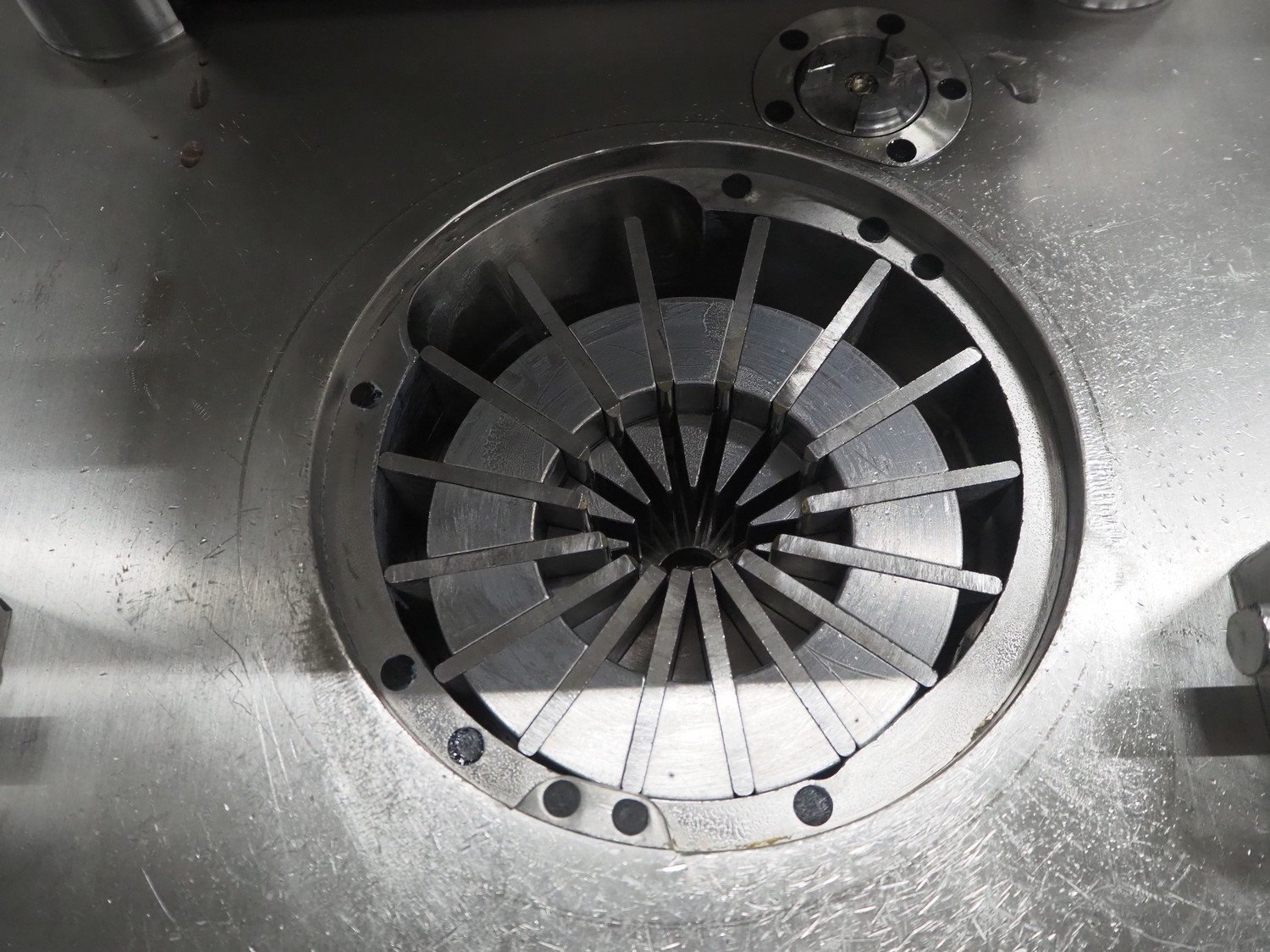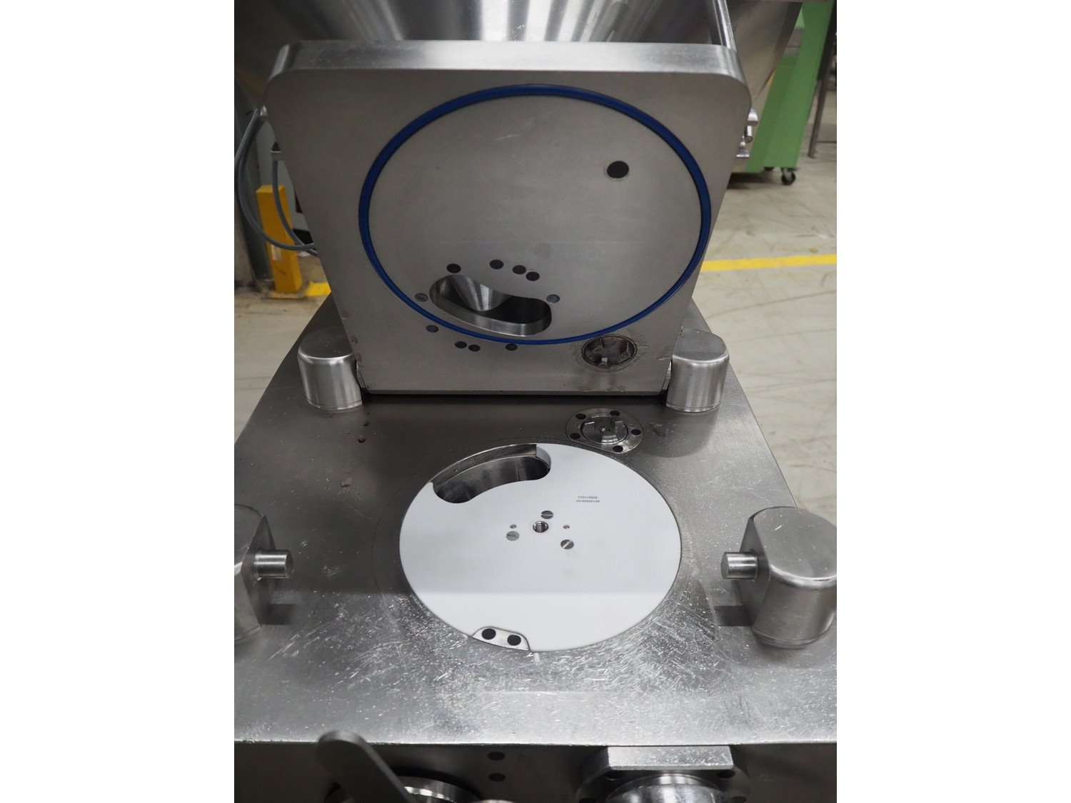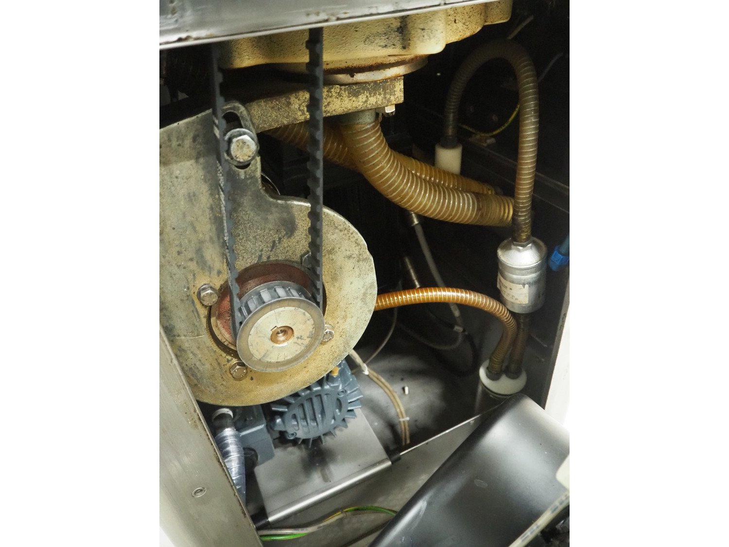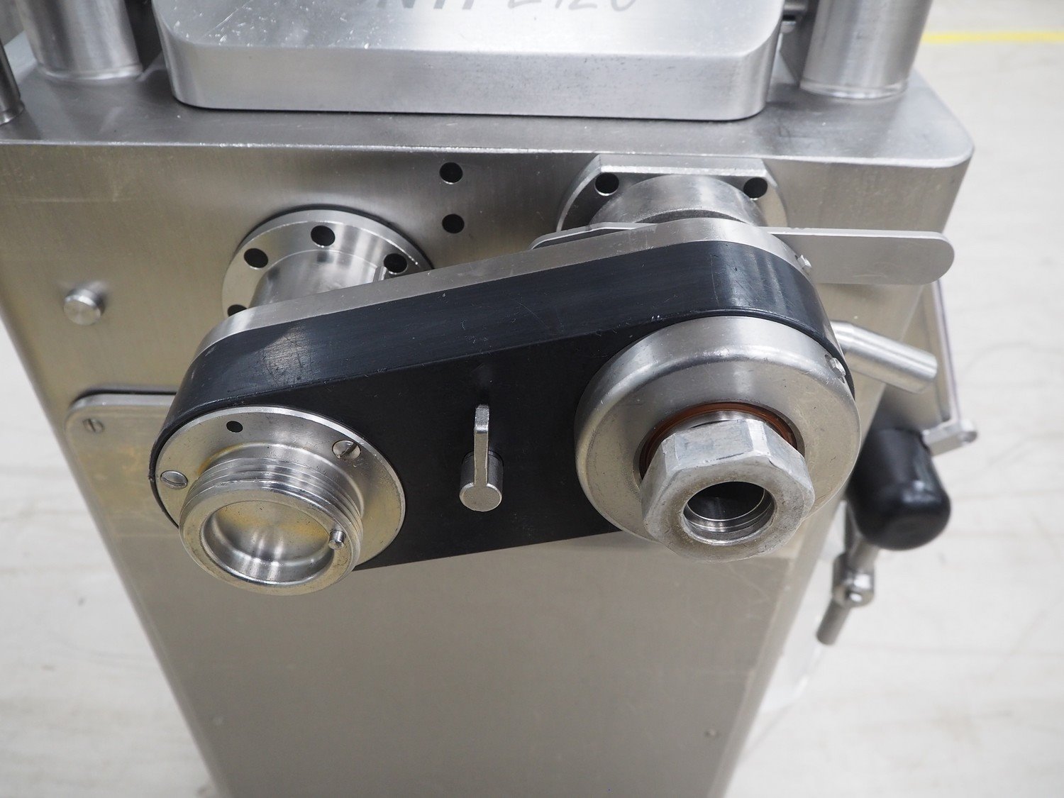 Frey vacuum filling machine with linking attachment, type: Konti-E120, machine number: KE1201111320GU, year of construction: 2010, 400 V, 50 Hz, 4.8 kW, Busch vacuum pump, operating hours: 28406, dimensions: 950 mm x 700 mm x 1620 mm.