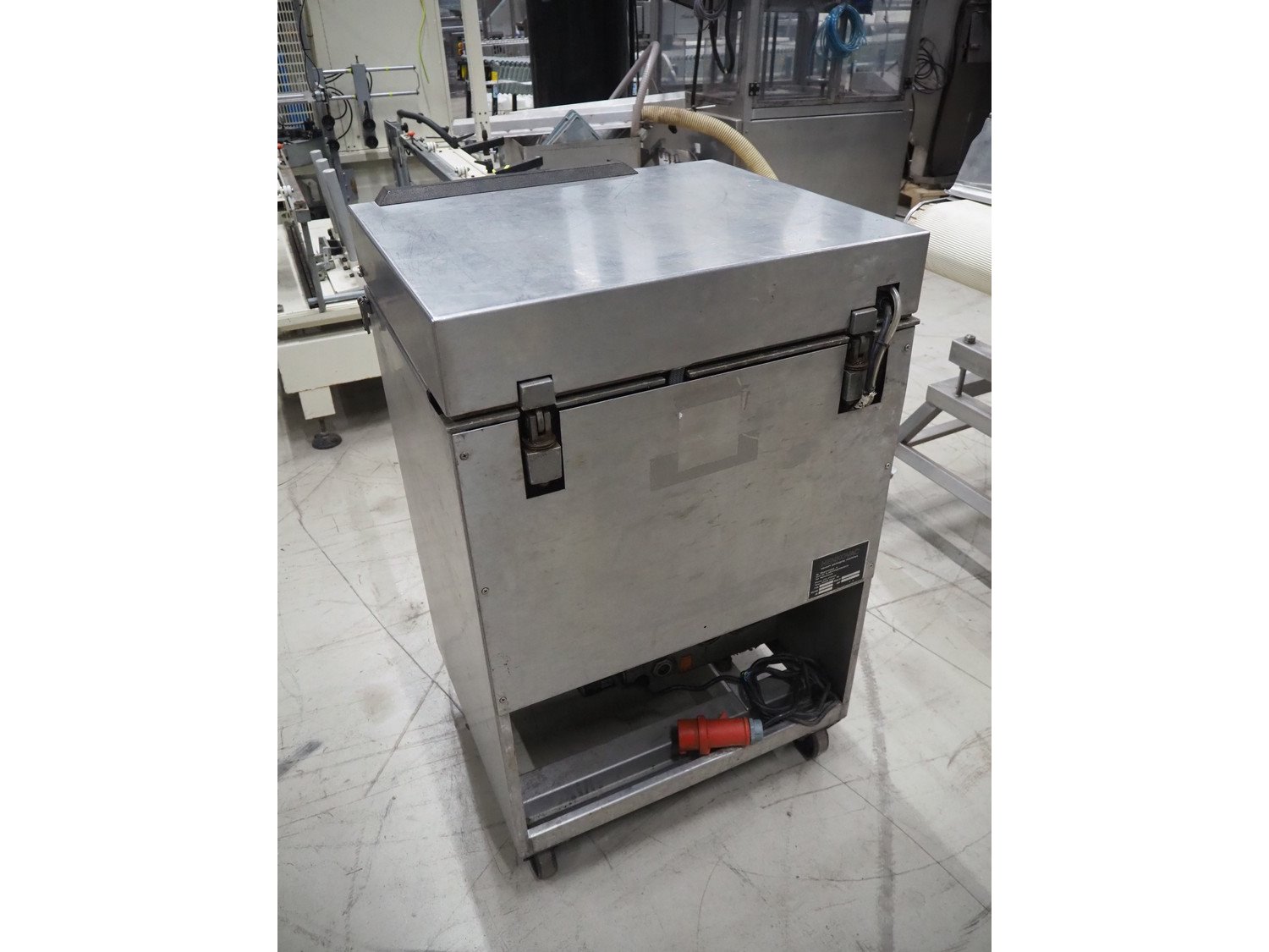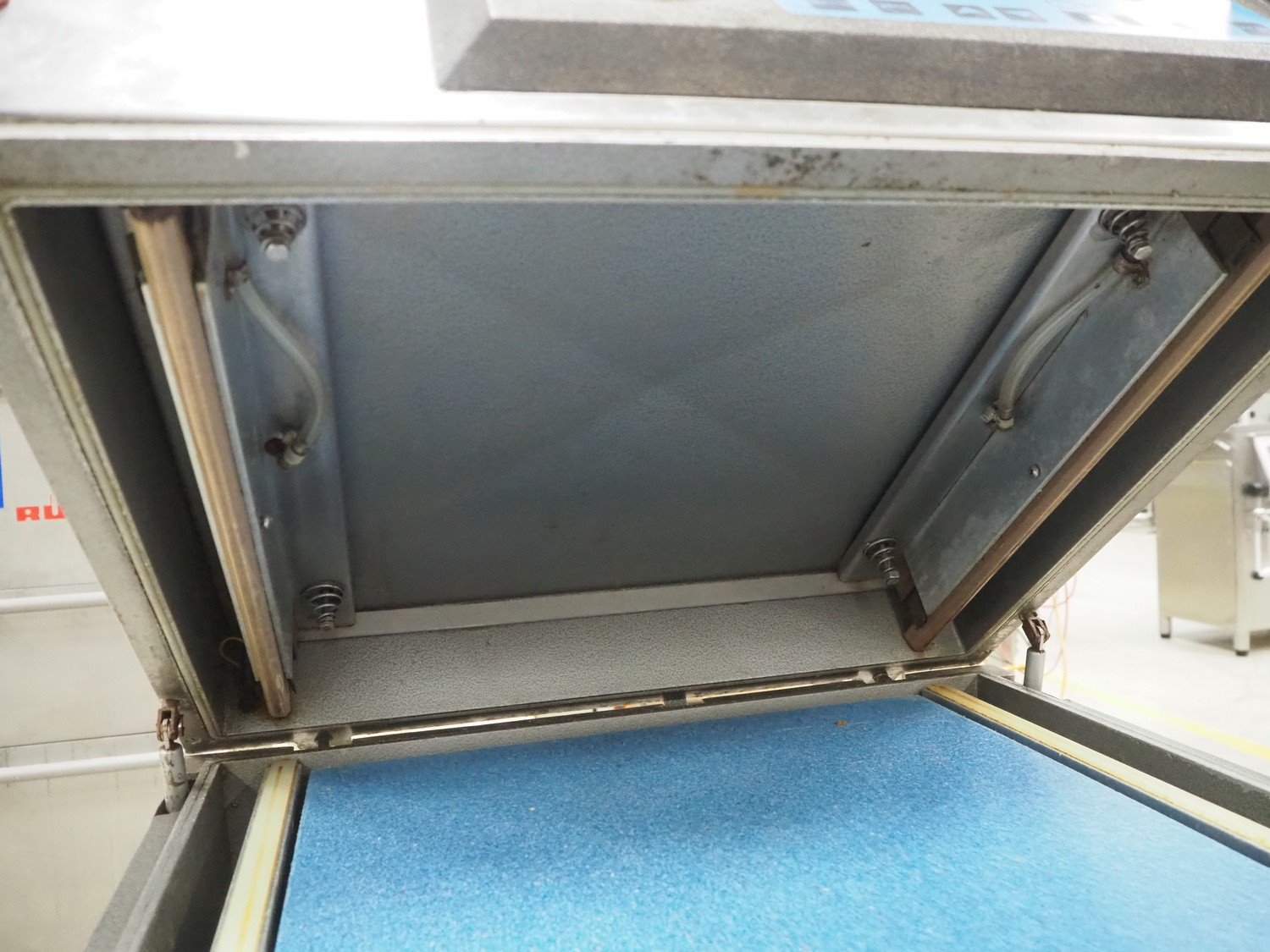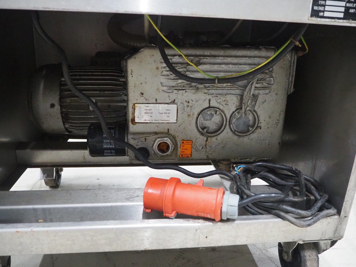 Henkovac mobile vacuum machine, type: H2000, machine number: 208077793, 220/380 V, 3 Ph, 50 Hz, 8.9/8.7 A, 2.5 kW, Busch vacuum pump, type: 063-122, number: 154573, capacity: 63 m³ per hour, seal length: (2x) 500 mm, dimensions chamber: 550 mm x 500 mm, total dimensions: 700 mm x 620 mm x 1100 mm.