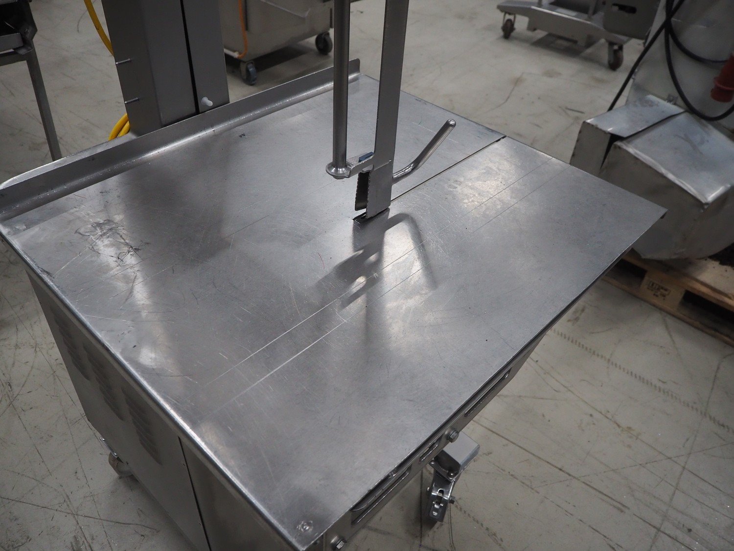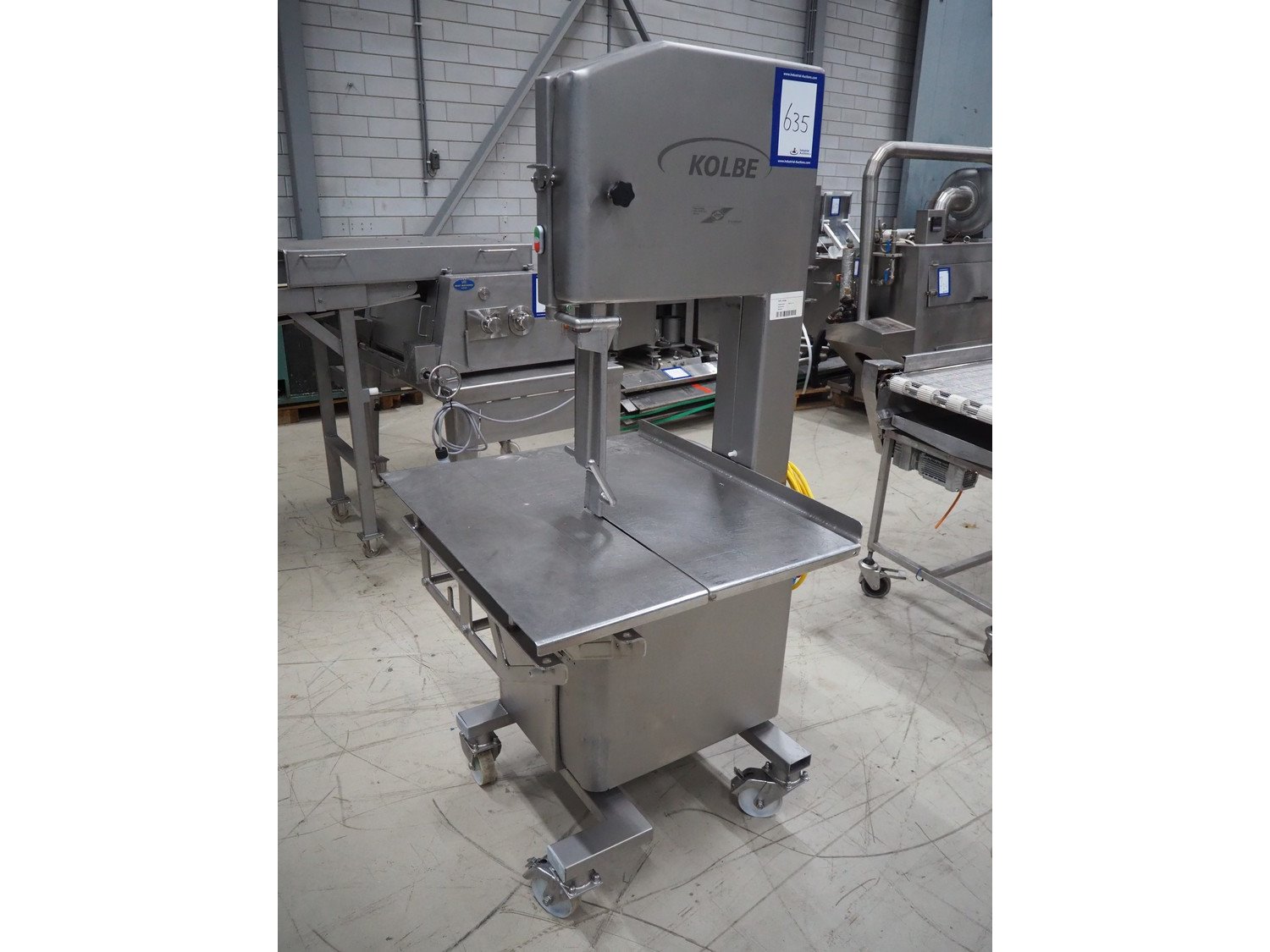 Kolbe mobile bandsaw, dimensions table: 880 mm x 780 mm, total dimensions: 880 mm x 950 mm x 1880 mm. Incomplete.