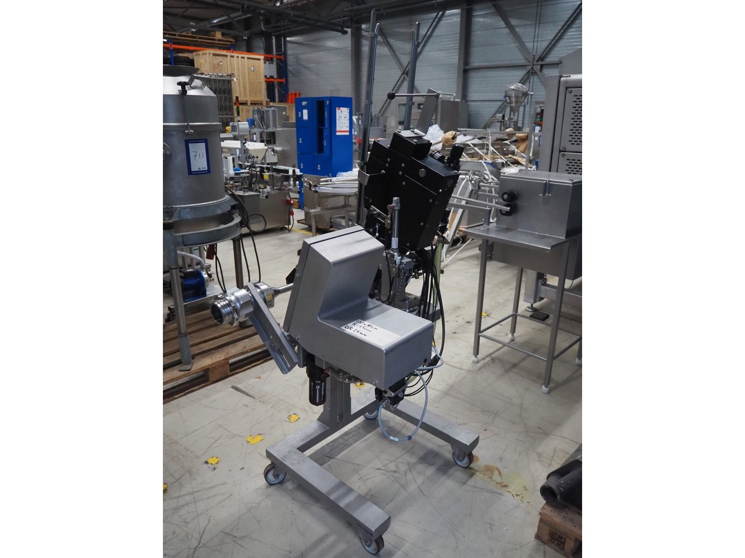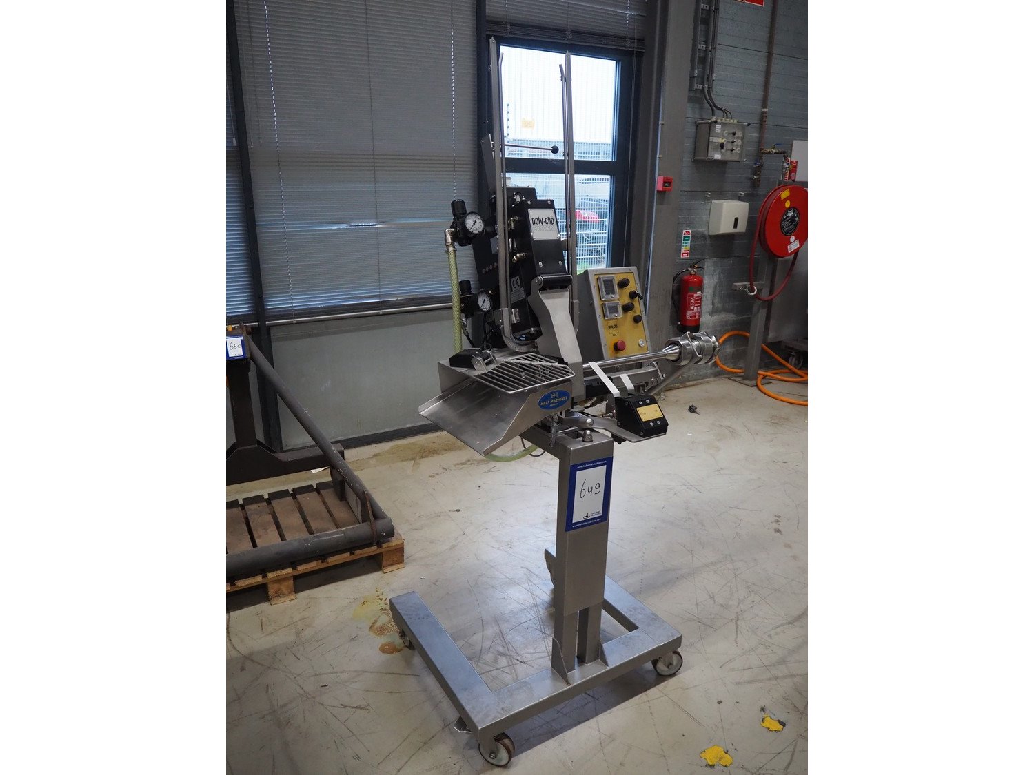Poly-clip System GmbH & Co. KG mobile double clipper, type: RCA, number: 136, year of construction: 2002, 5-7 bar, diameter pipe: 60 mm, total dimensions: 860 mm x 1060 mm x 1930 mm.