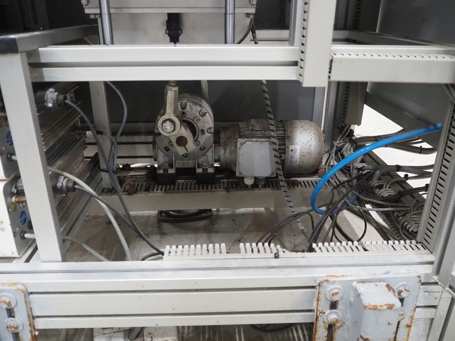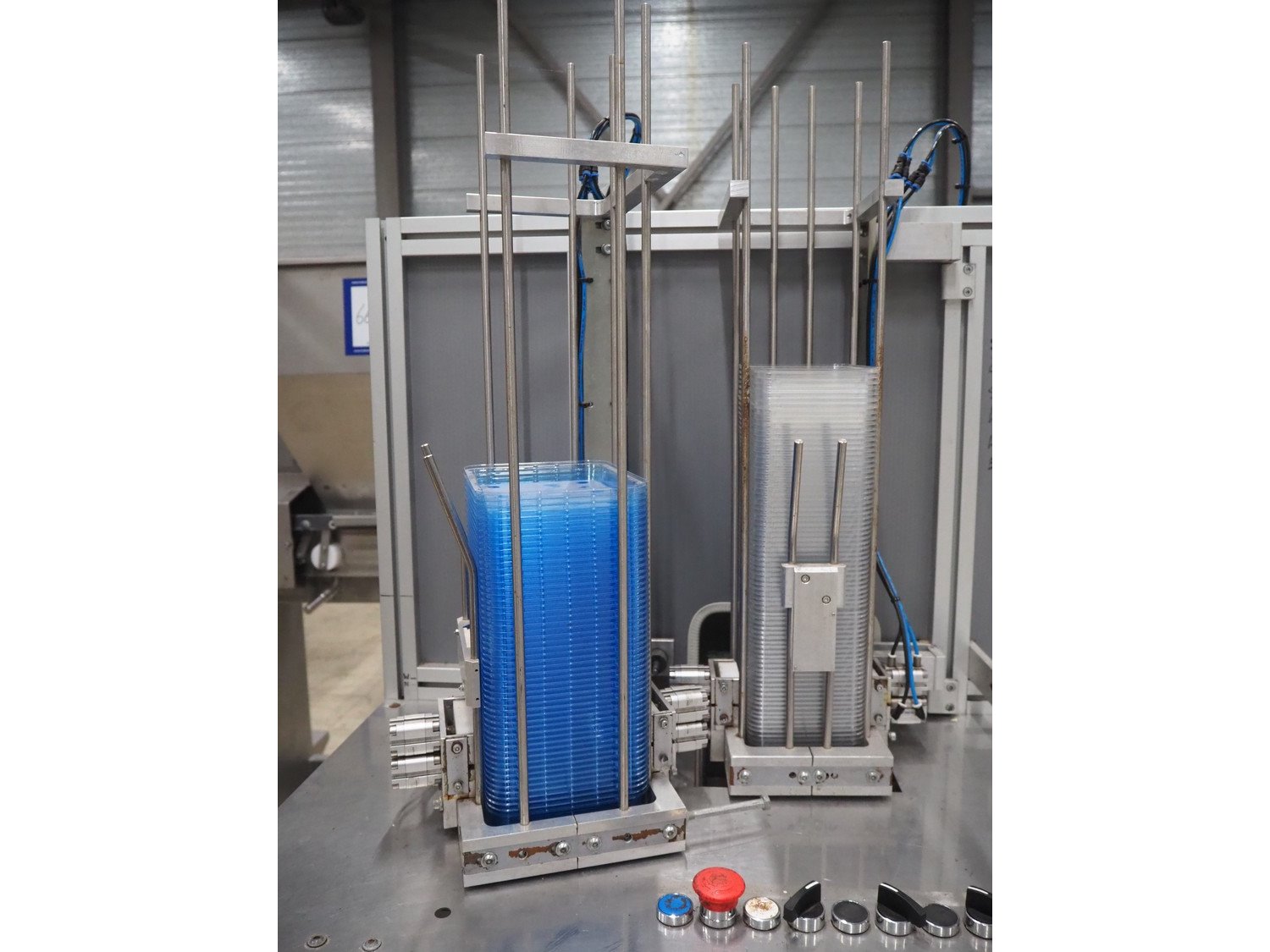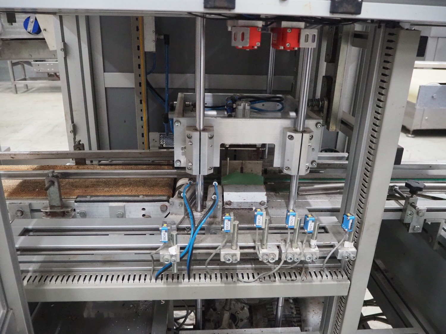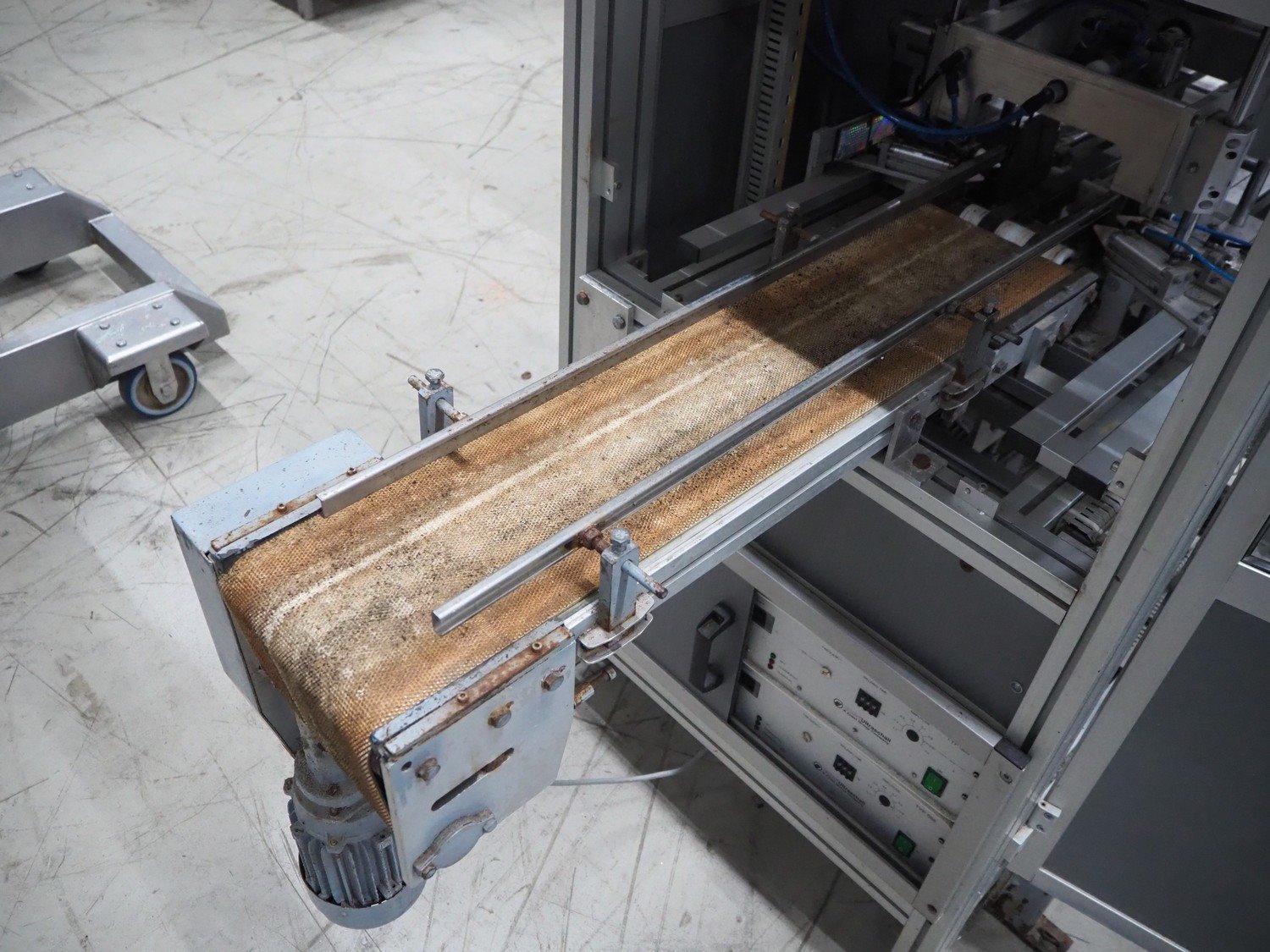 Viscon lid applicator, type: Dekselmachine, serial number 67331-430, year of construction: 2007, weight: 270 kg, plastic belt, belt width: 195 mm, lid size: 120 mm x 140 mm / 190 mm x 150 mm, total dimensions: 3800 mm x 1000 mmx 2000 mm.
