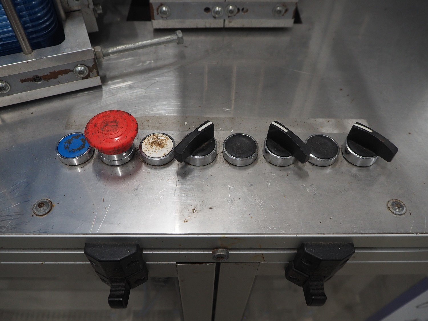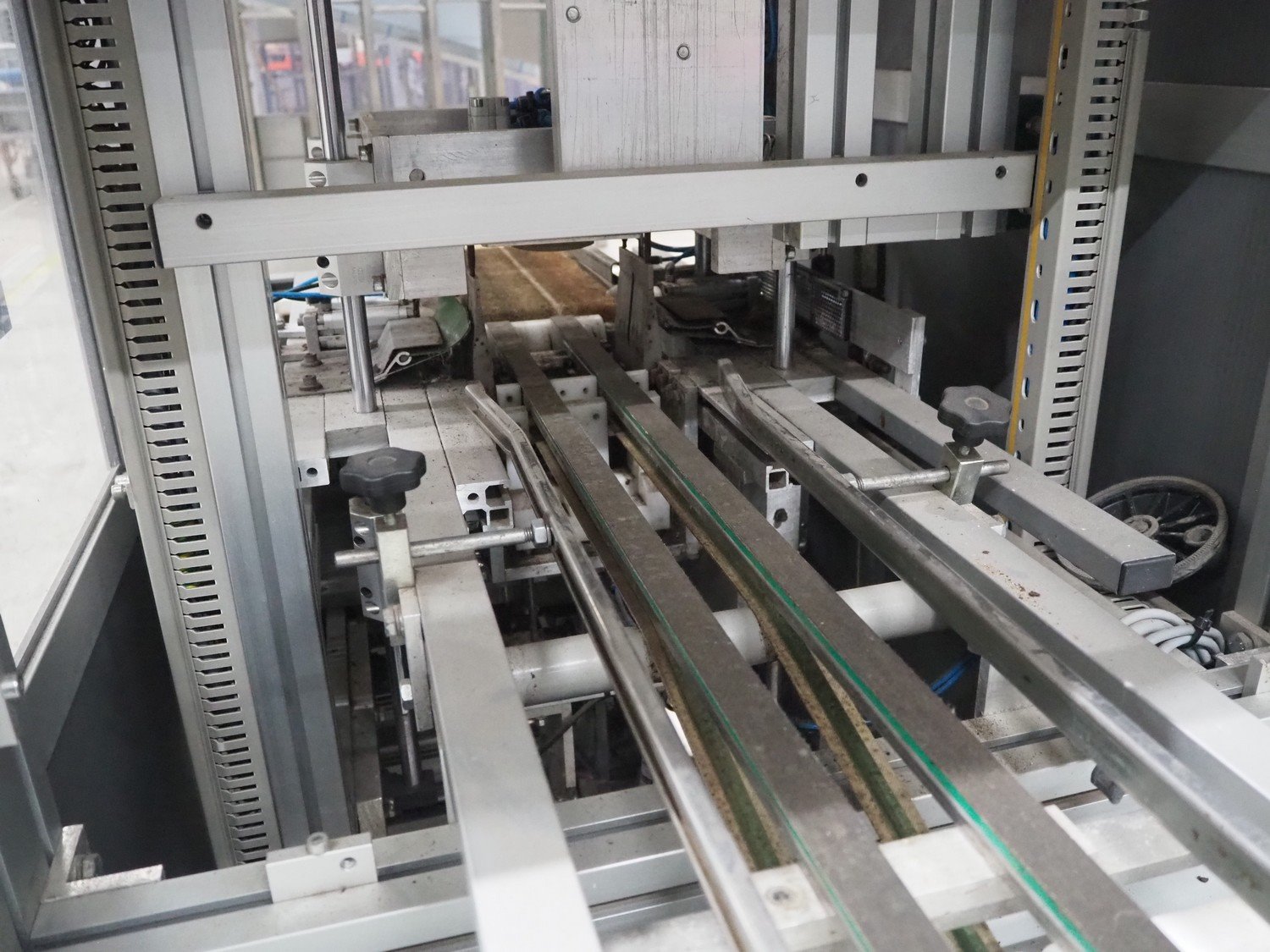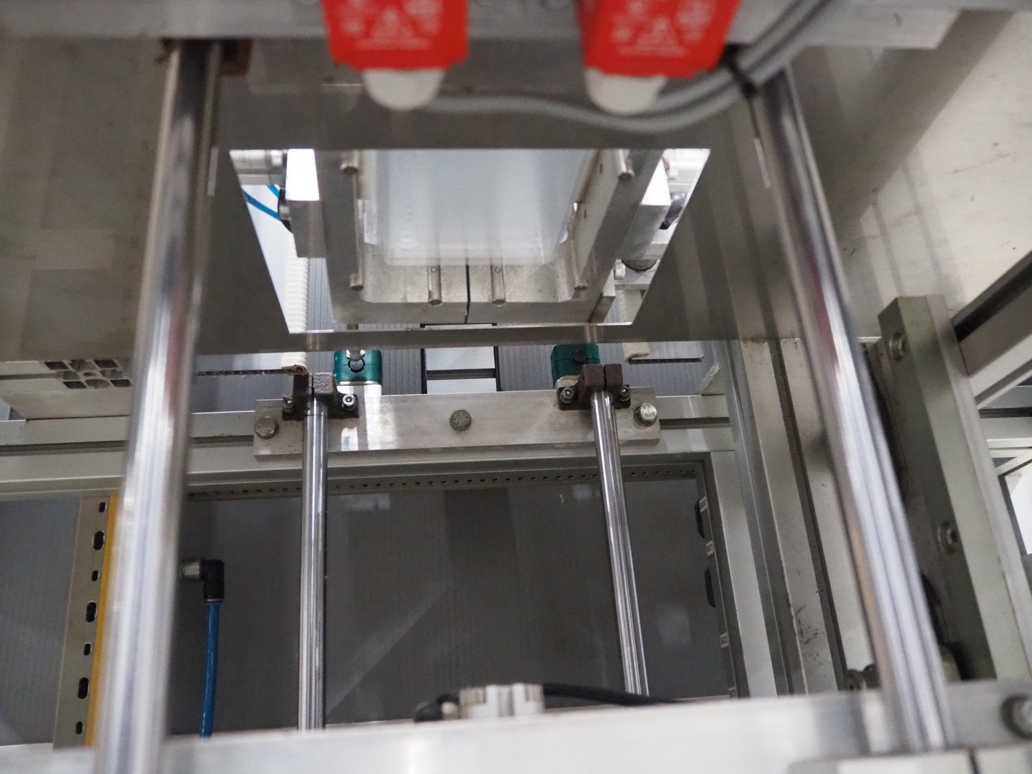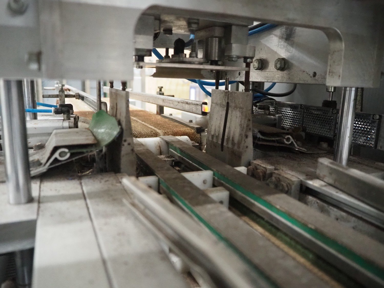 Viscon lid applicator, type: Dekselmachine, serial number 67331-430, year of construction: 2007, weight: 270 kg, plastic belt, belt width: 195 mm, lid size: 120 mm x 140 mm / 190 mm x 150 mm, total dimensions: 3800 mm x 1000 mmx 2000 mm.