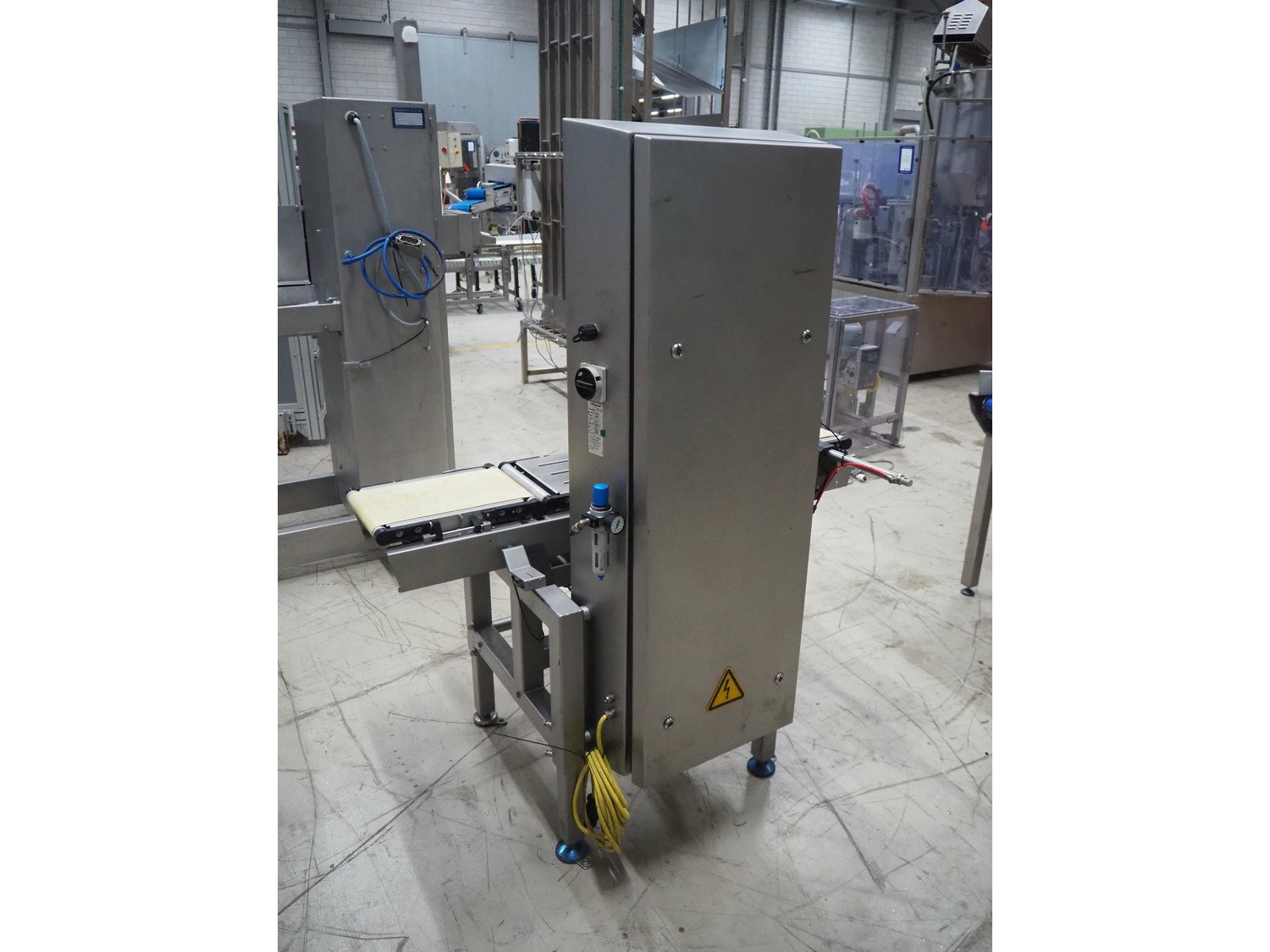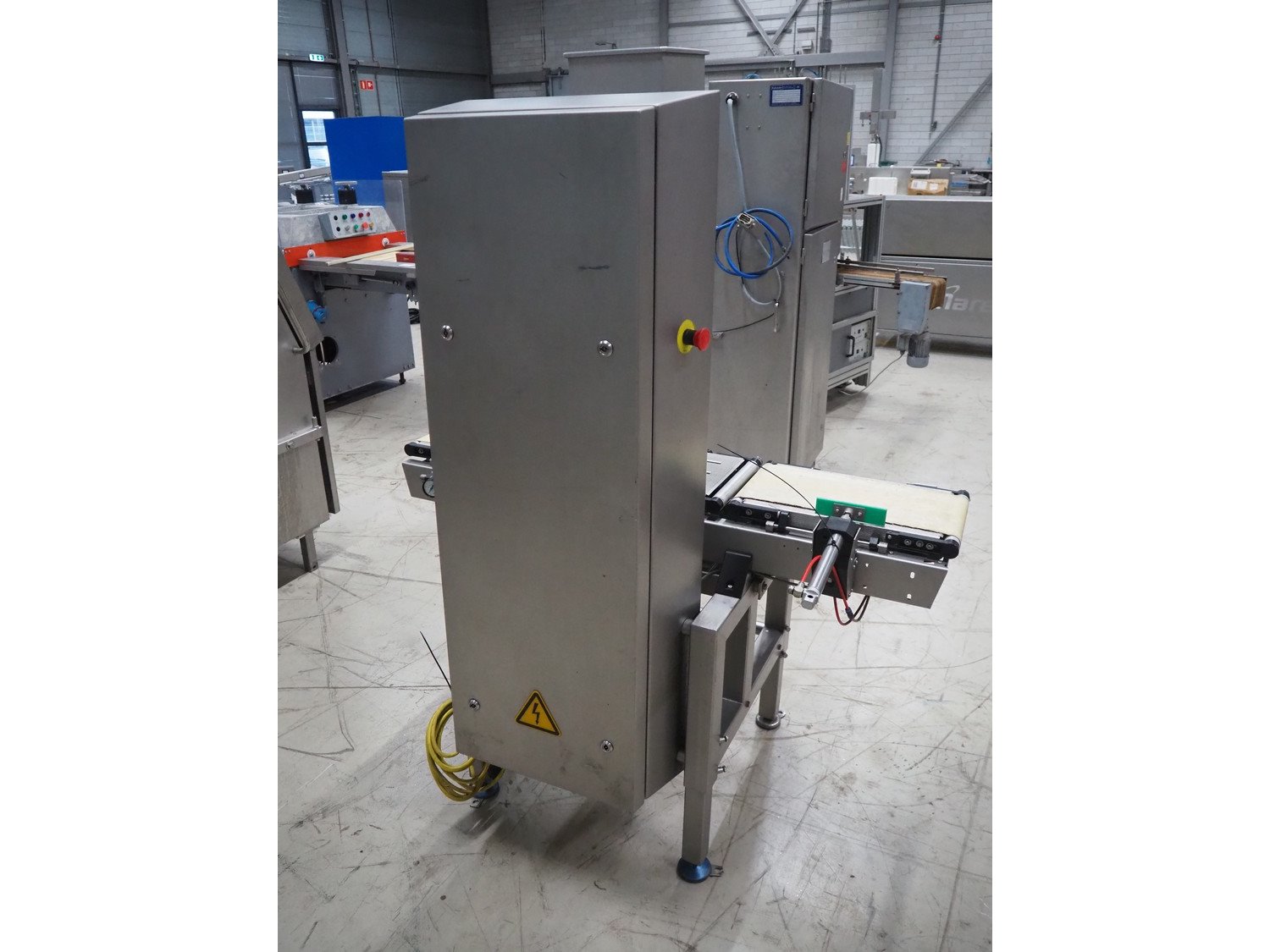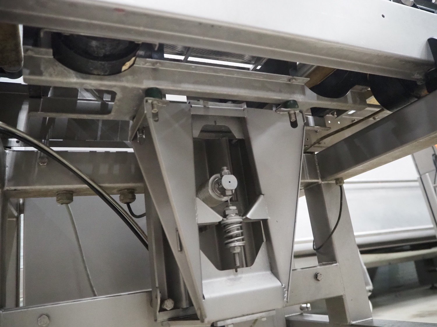 Marel checkweigher, type: M-Check RF8 8023.30, serial number: E014590, type load cell: Z6F C3, serial number: 31036805, maximum: 31036805, minimum: 0.05 kg, e= 0.001 kg, T= -Max, plastic belt, belt width: 230 mm, total dimensions: 1400 mm x 850 mm x 1680 mm. Missing one transport belt.