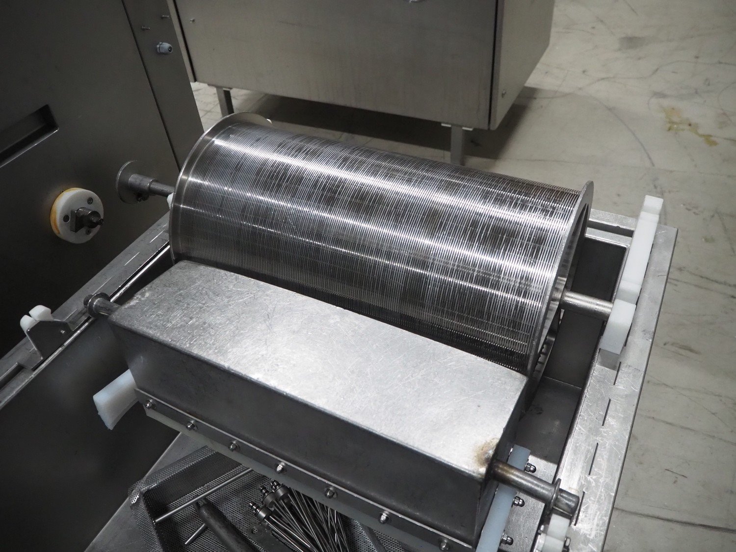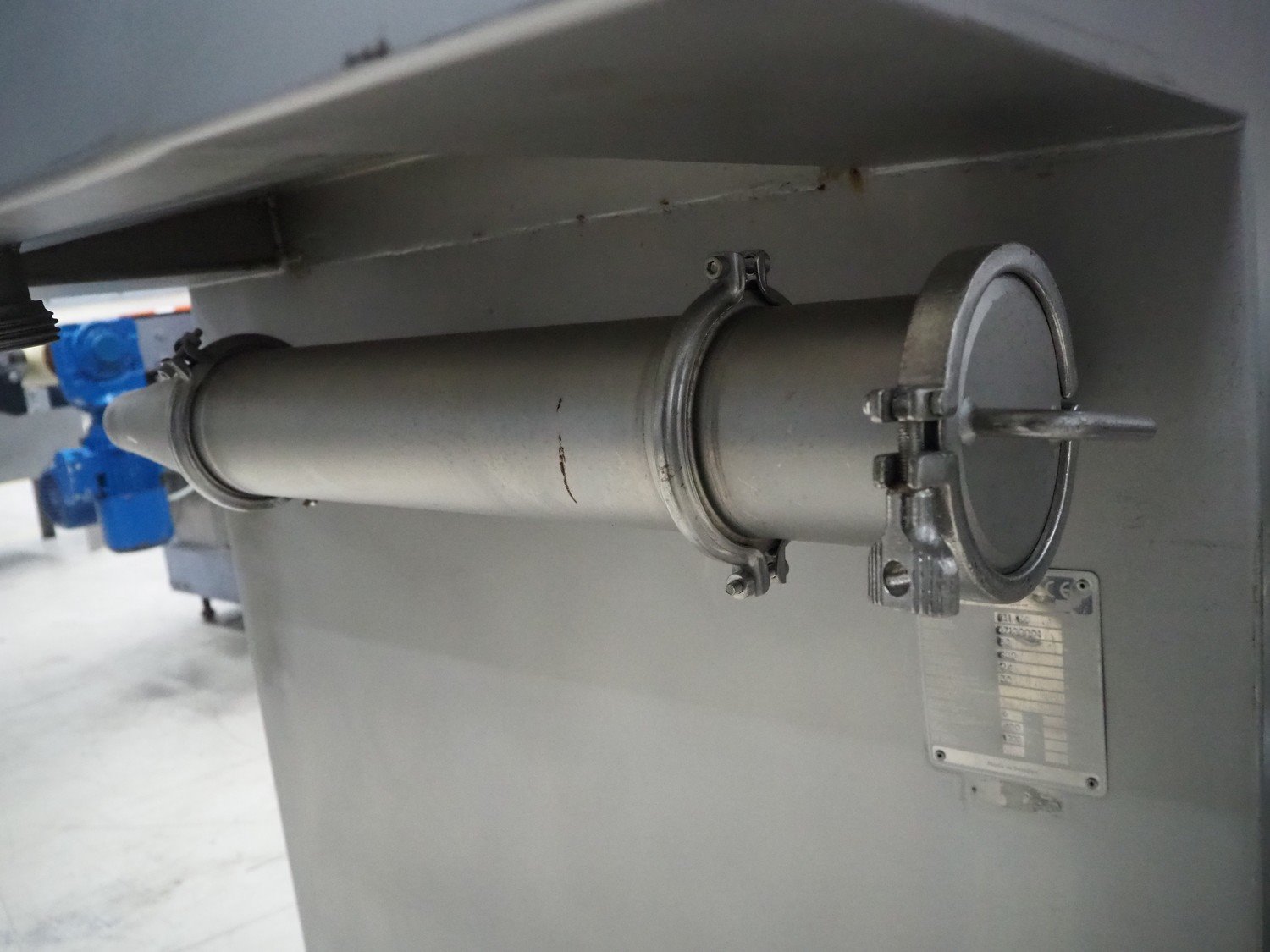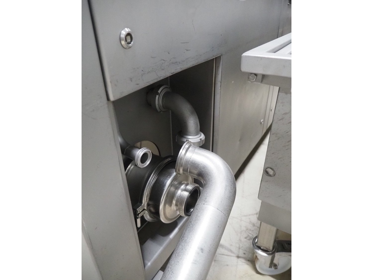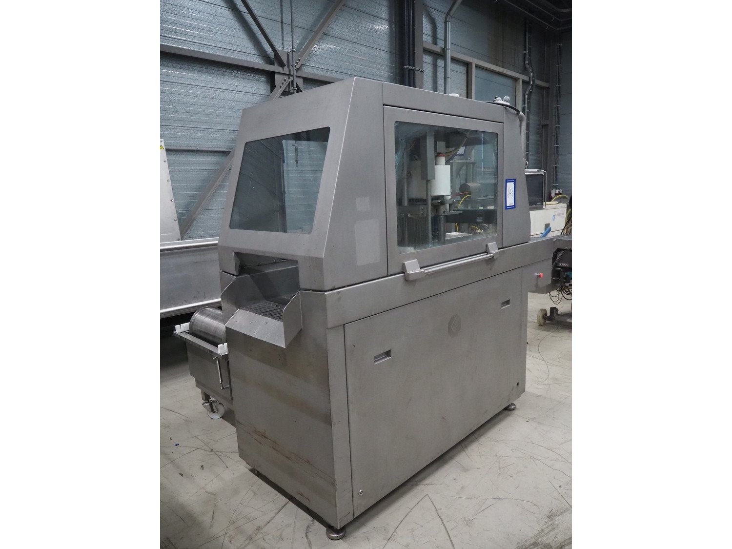 Garos injector, type: GSI 160, machine number: 67100001, 400 V, 50 Hz, 30 A, weight: 1200 kg, s/s walking beam, beam width: 550 mm, 160 needles, total dimensions: 2350 mm x 980 mm x 2350 mm. Including mobile filter tub, dimensions: 1950 mm x 750 mm x 800 mm.