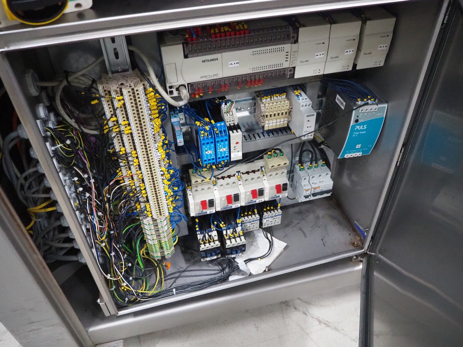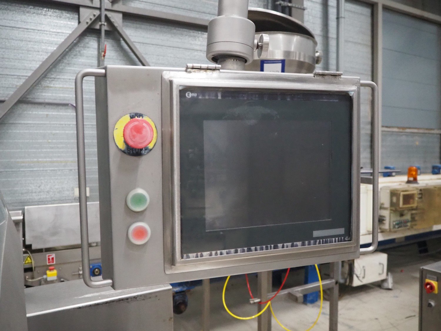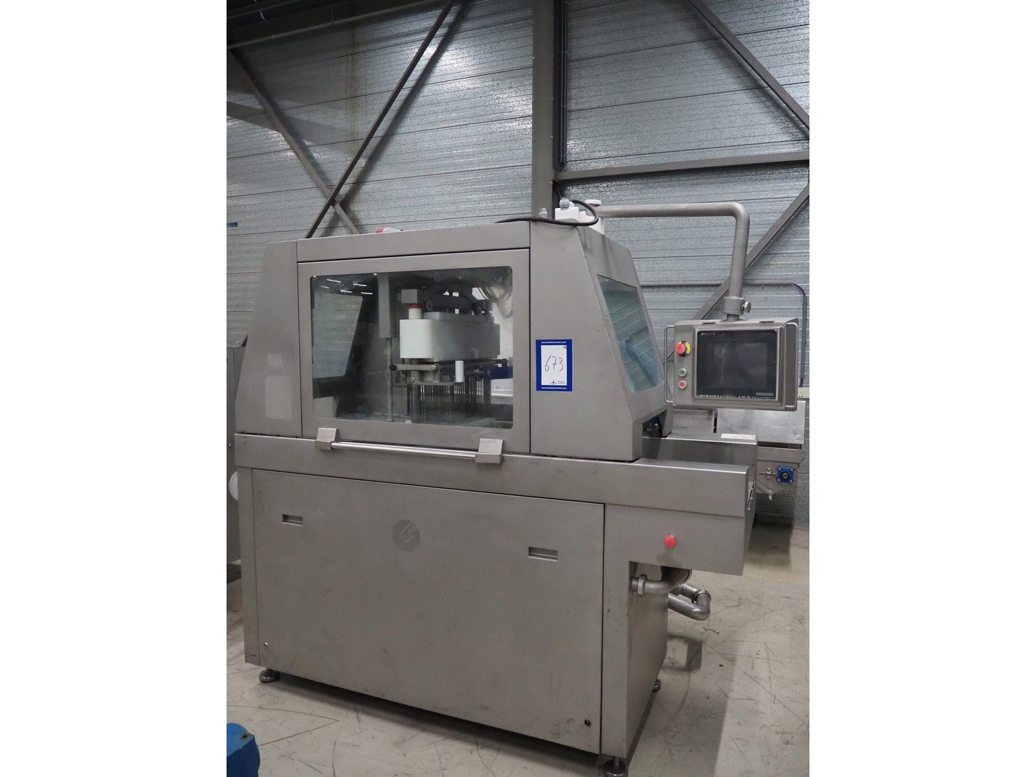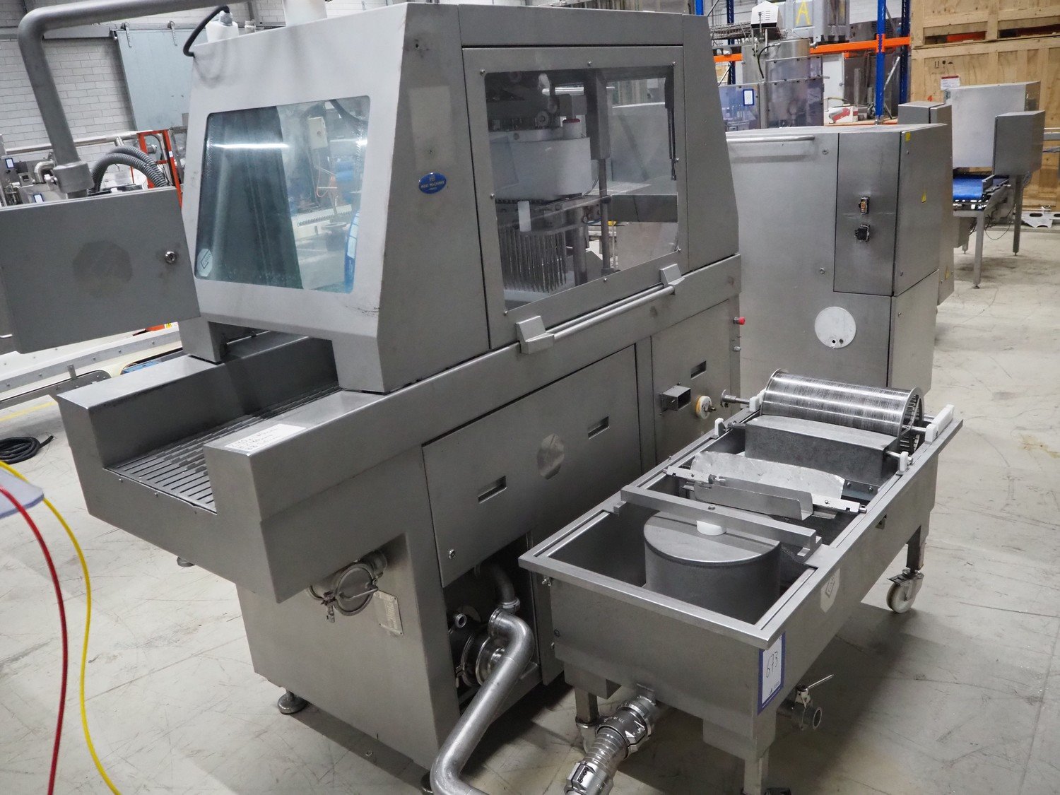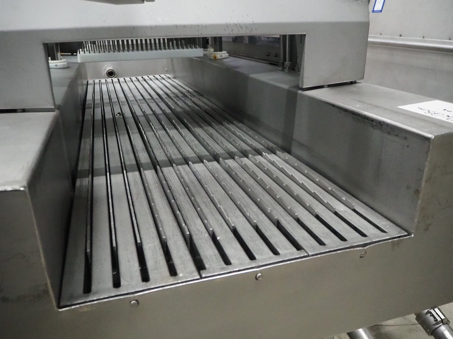 Garos injector, type: GSI 160, machine number: 67100001, 400 V, 50 Hz, 30 A, weight: 1200 kg, s/s walking beam, beam width: 550 mm, 160 needles, total dimensions: 2350 mm x 980 mm x 2350 mm. Including mobile filter tub, dimensions: 1950 mm x 750 mm x 800 mm.