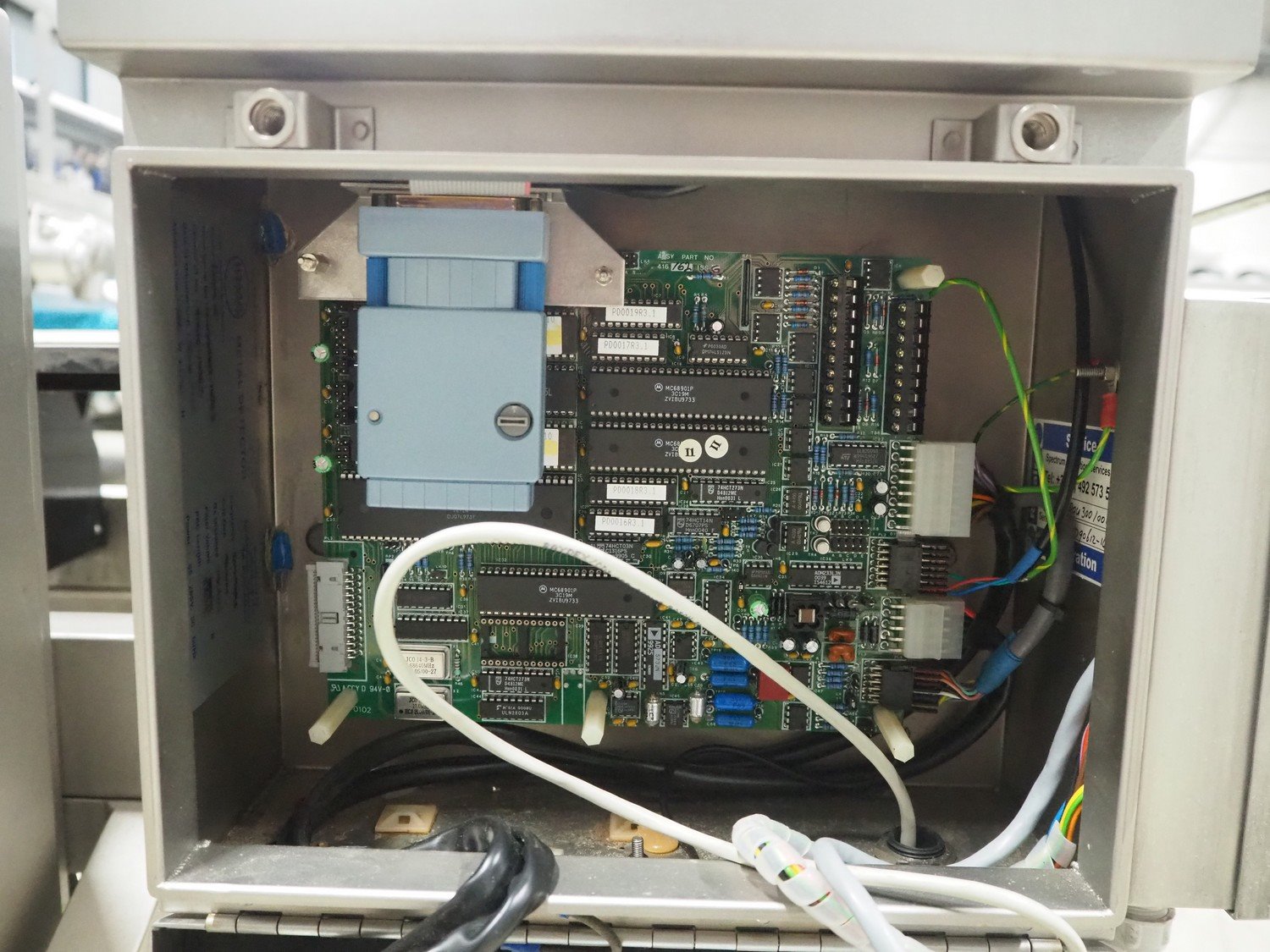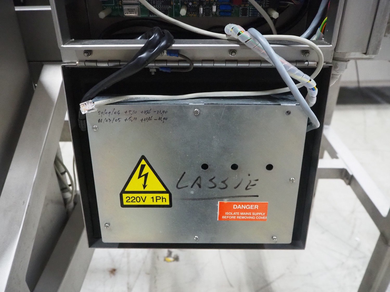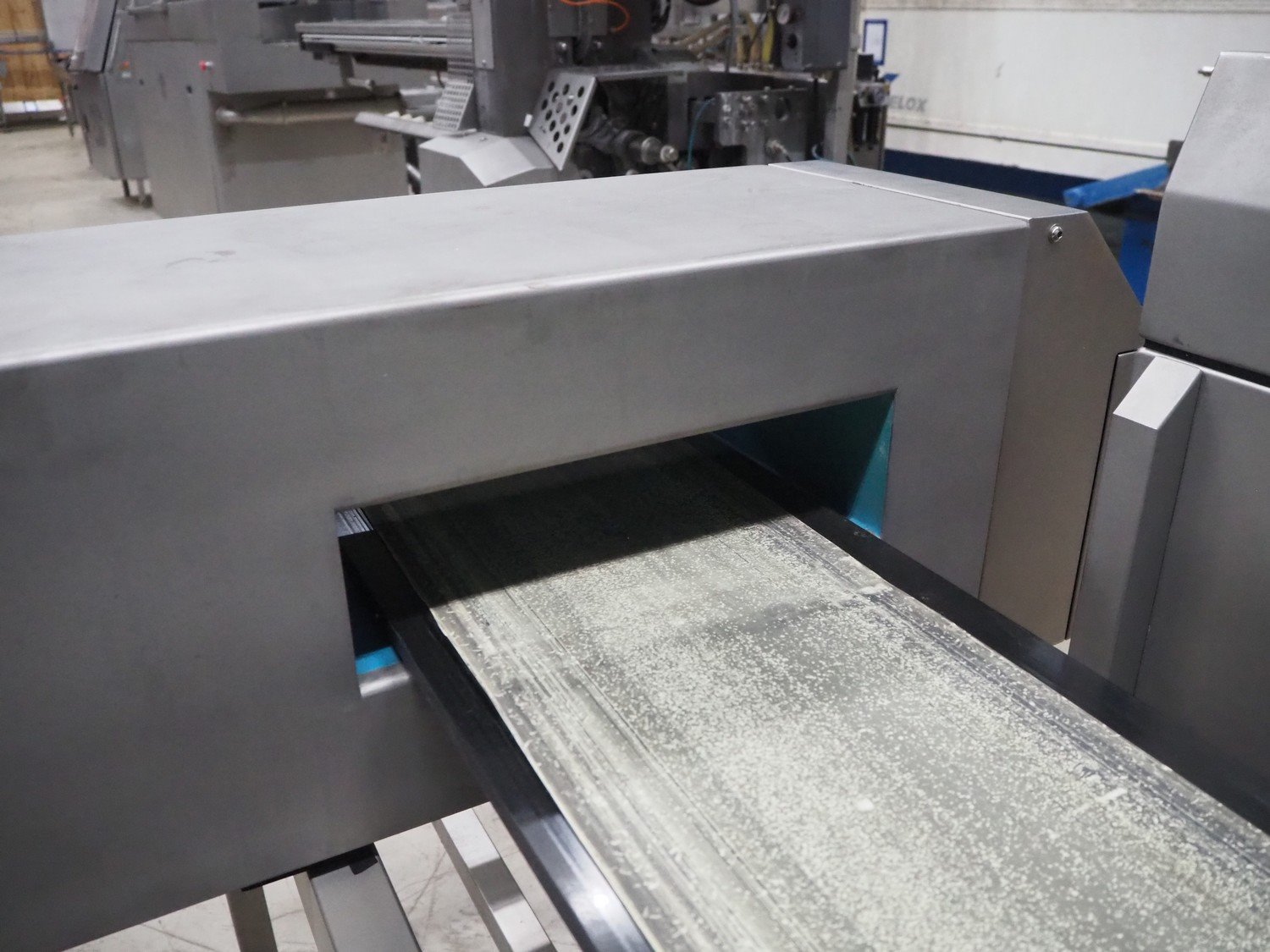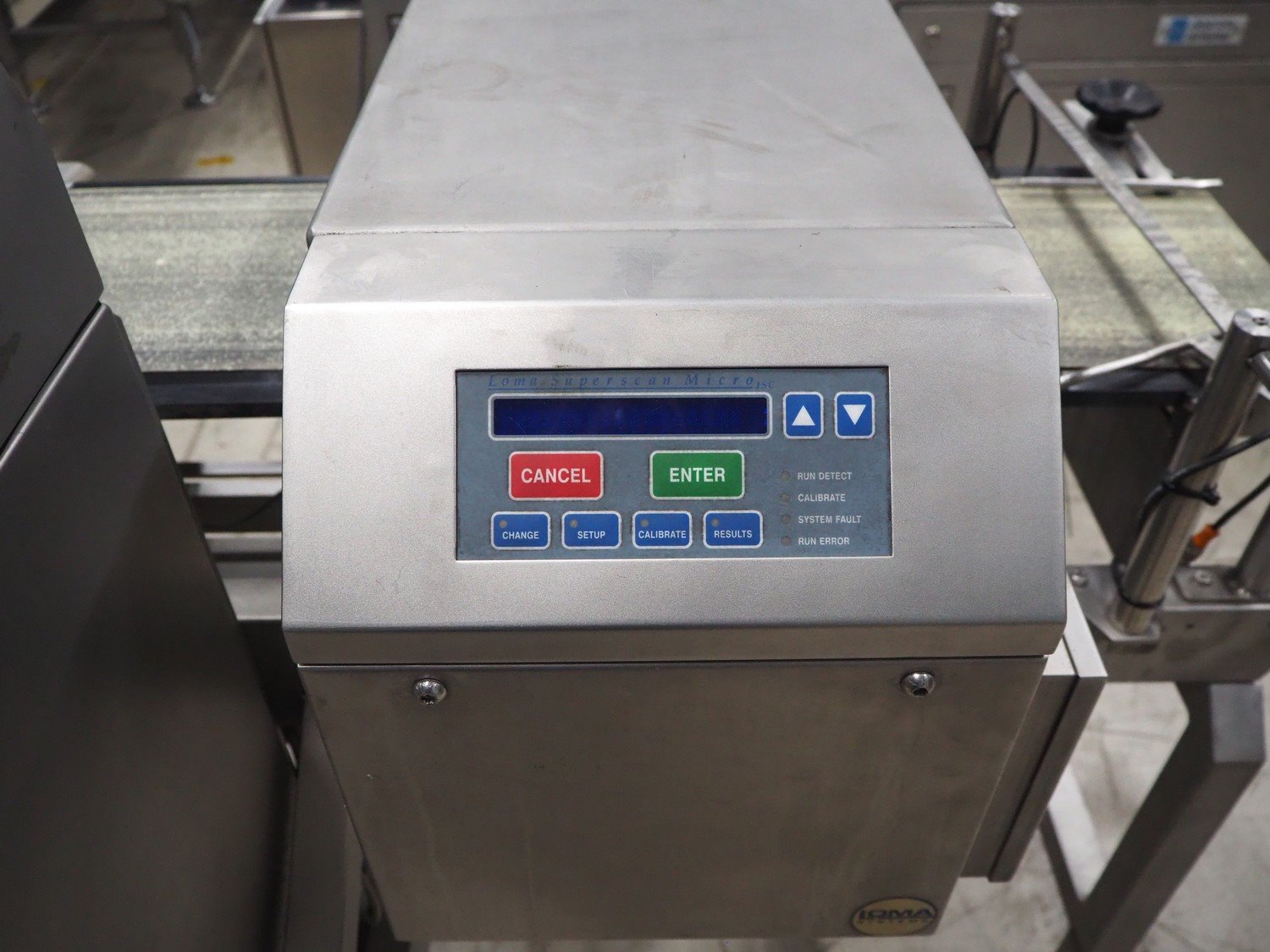 Loma checkweigher with metal detector, type: 6000, serial number: CB22554, year of construction: 1995, 220 V, 1 Ph, 50 Hz, weight: 173 kg, maximum weight: 1500 gram, minimum weight: 200 gram, e=d= 1 g. T= 300 g, plastic belt, belt width: 245 mm, clearance: 350 mm x 70 mm, total dimensions: 1300 mm x mm x 950 mm.