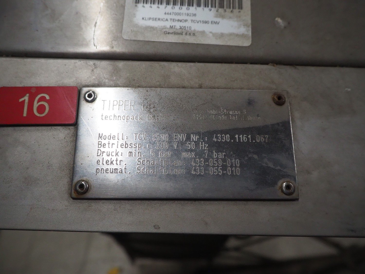 Tipper Tie technopack mobile automatic clipper, model: TCV 1590, number: 4330.1161.067, 230 V, 50 Hz, dimensions: 1600 mm x 800 mm x 1900 mm.