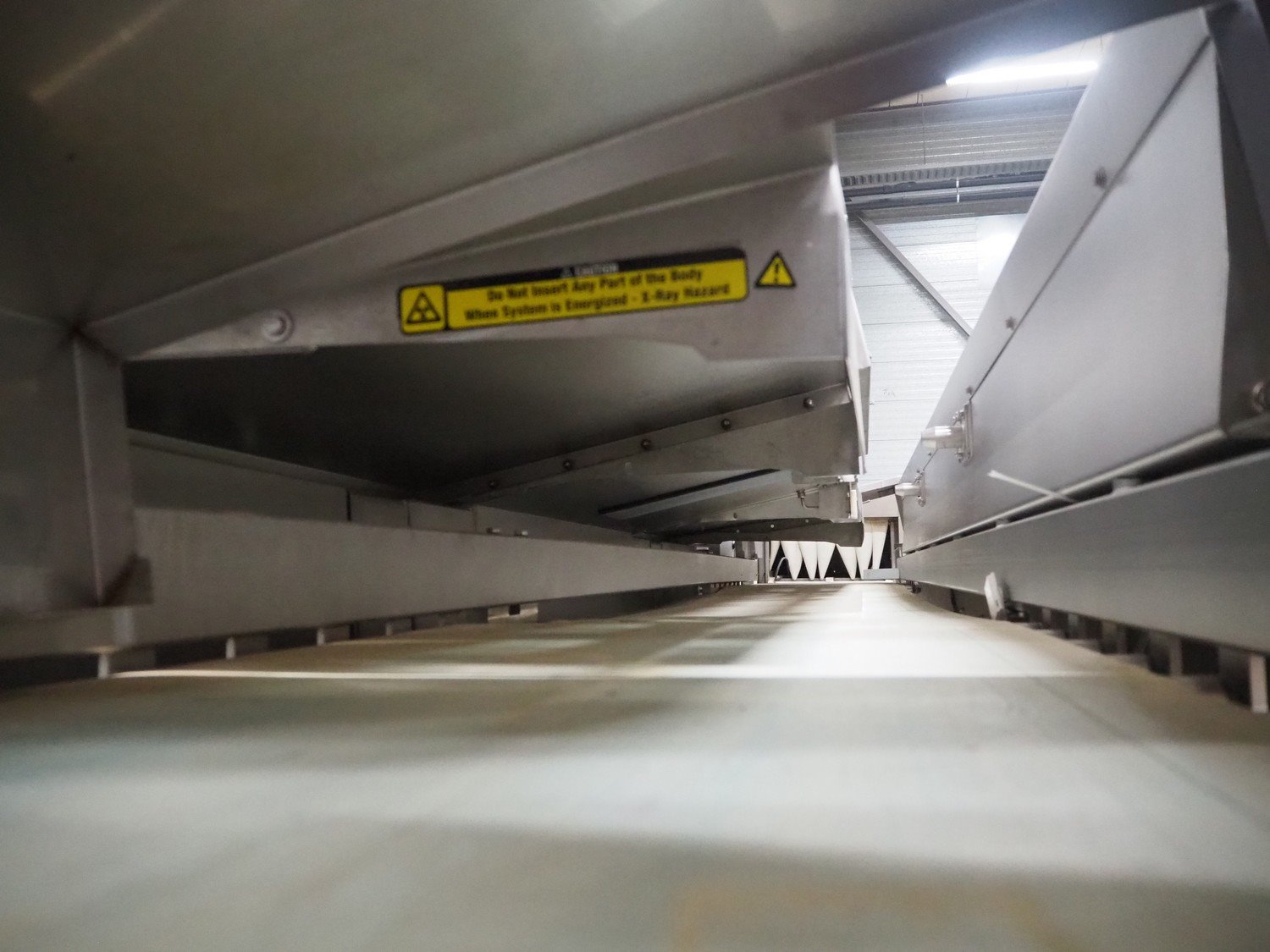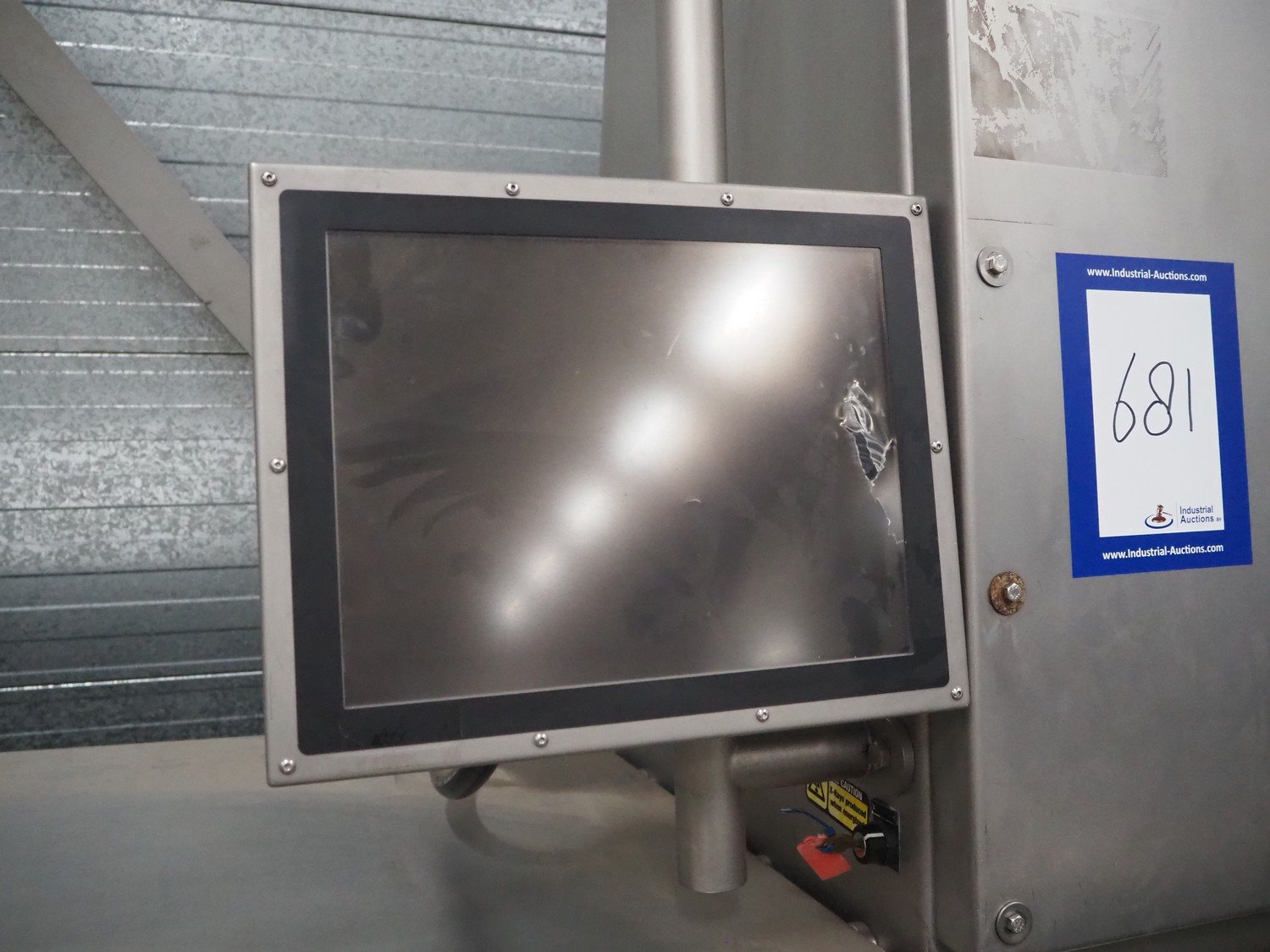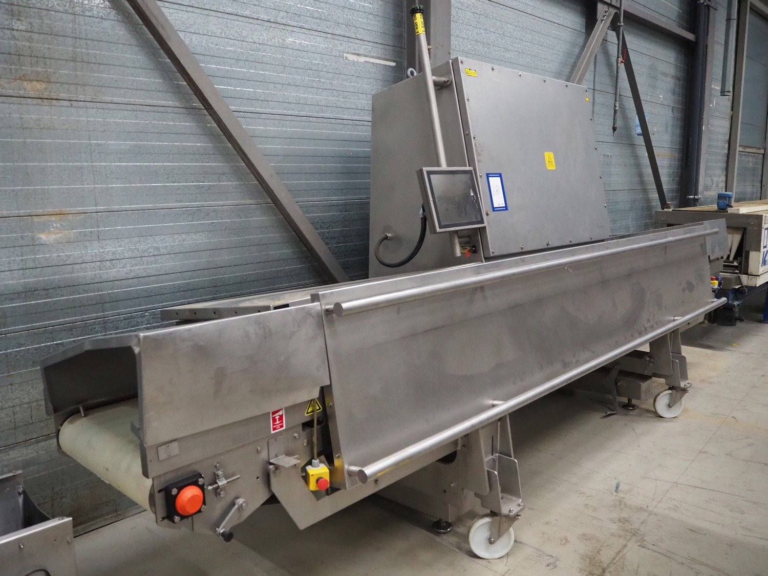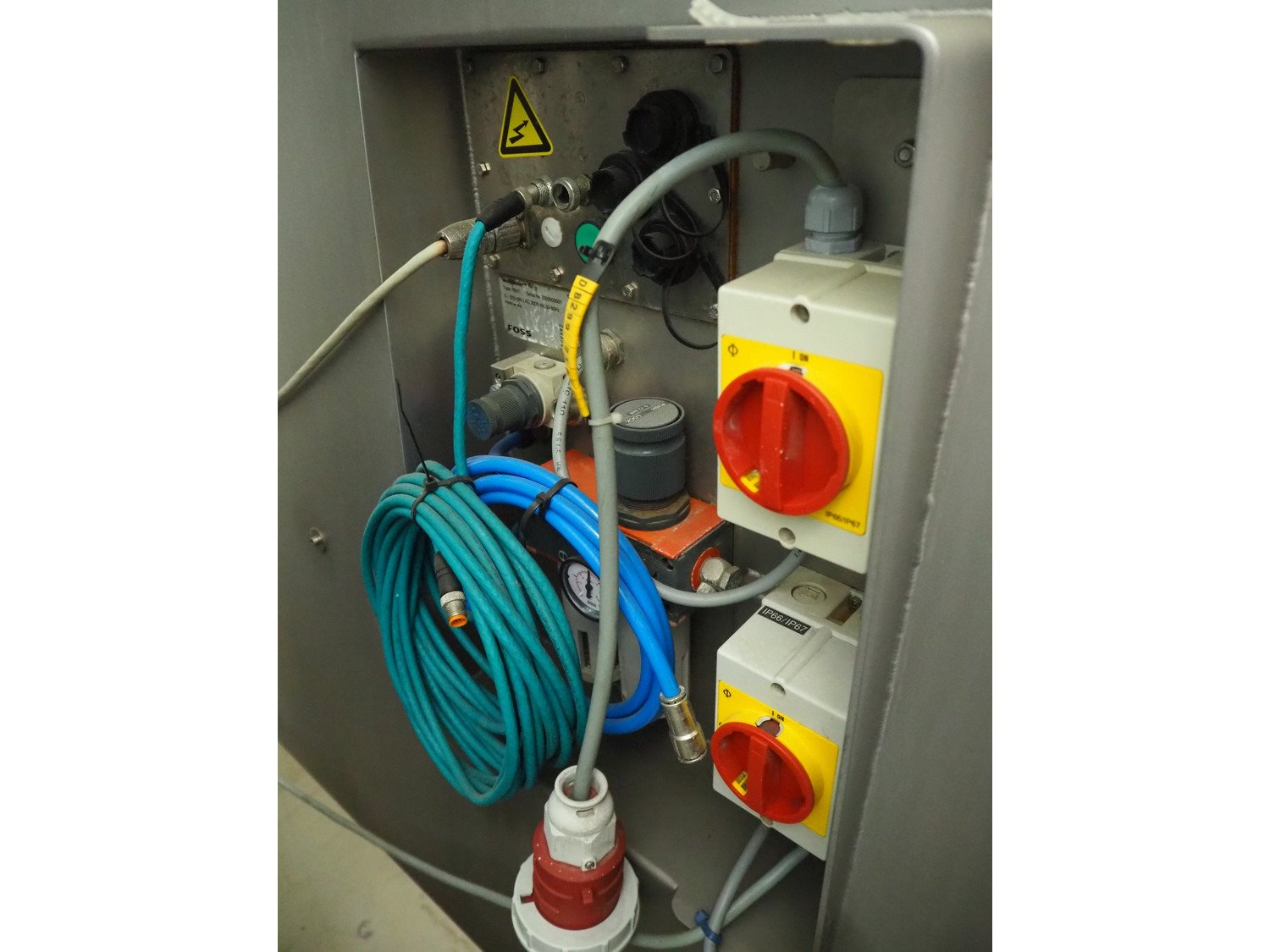 Foss mobile analyser, model: MeatMaster, type: 78010, serial number: 2309200501, 370-420 V, 3 Ph, 50-60 Hz, 2000 VA, plastic belt, belt width: 650 mm, total dimensions: 5350 mm x 1150 mm x 2700 mm. Screen damaged.