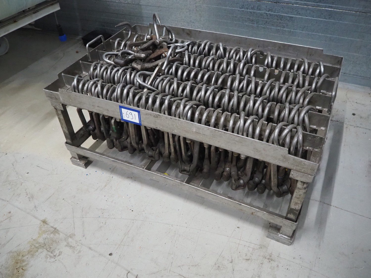 S/s rack with large amount of meat hooks, total dimensions: 1200 mm x 800 mm x 580 mm.