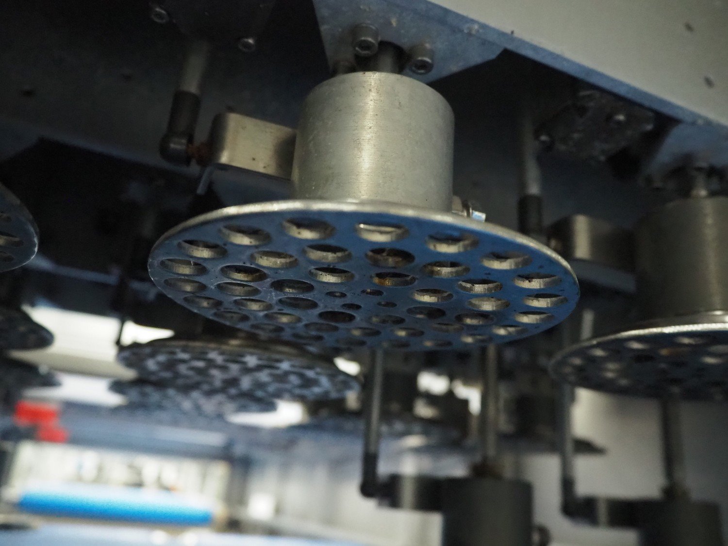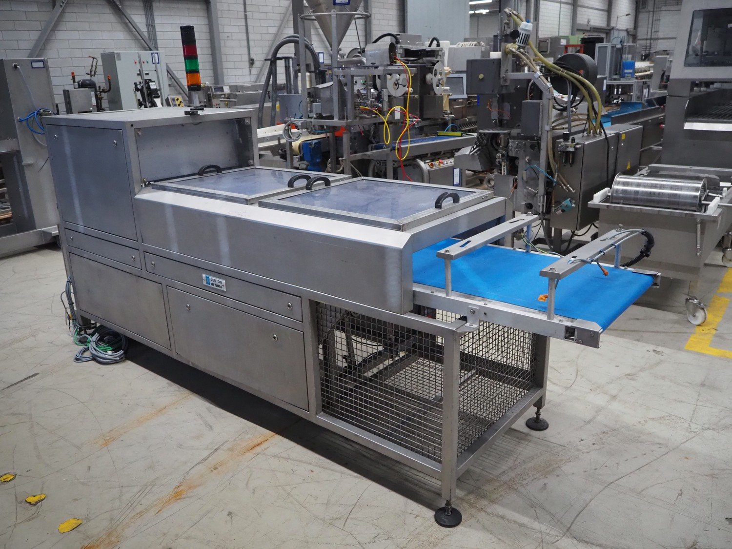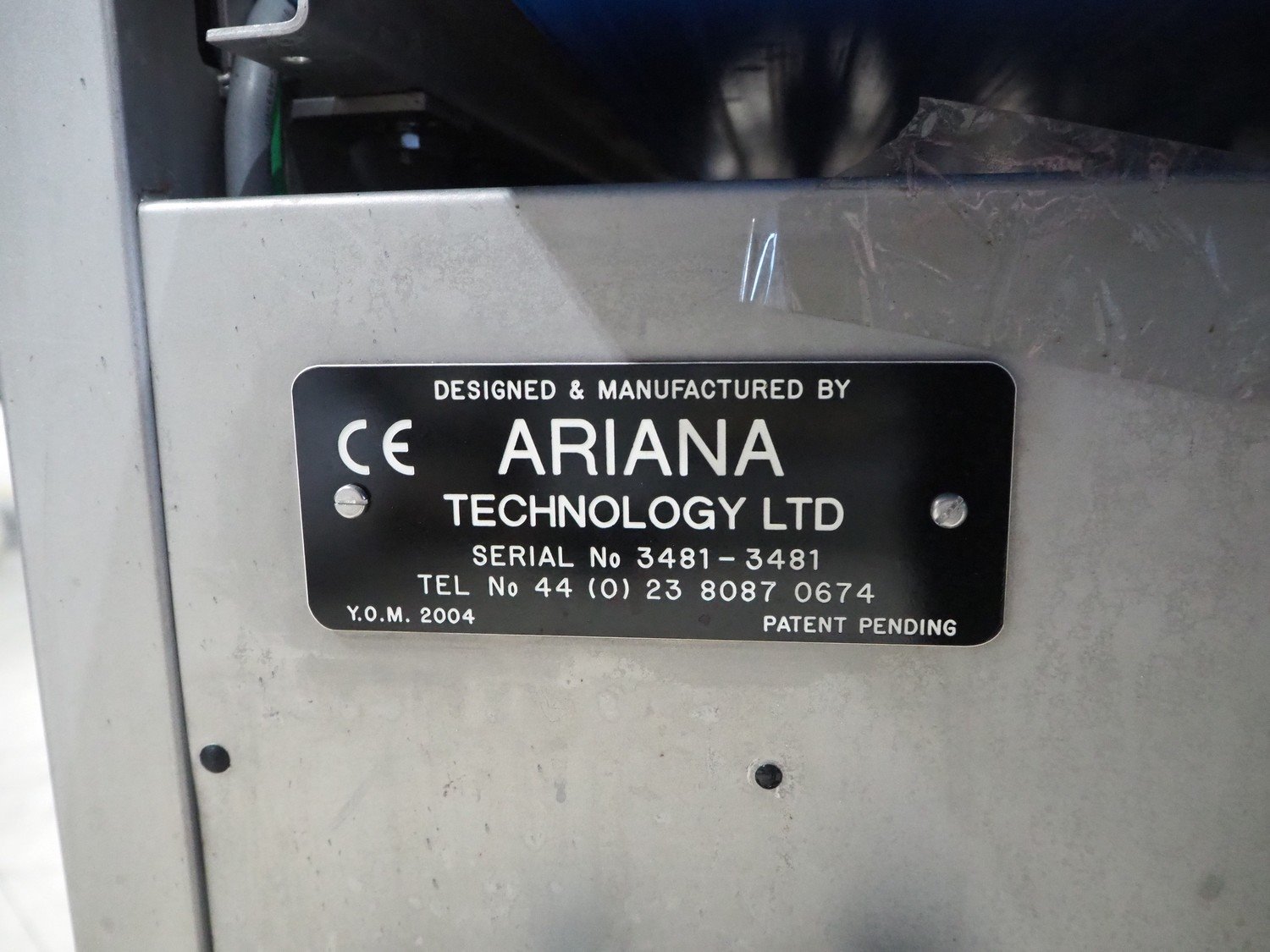 Ariana Technology LTD packaging machine, serial number: 3481-3481, year of construction: 2004, plastic belts, belt width: (2x) 250 mm, (1x) 570 mm, 16 heads, head diameter: Ø 120 mm, total dimensions: 3400 mm x 1040 mm x 1800 mm.