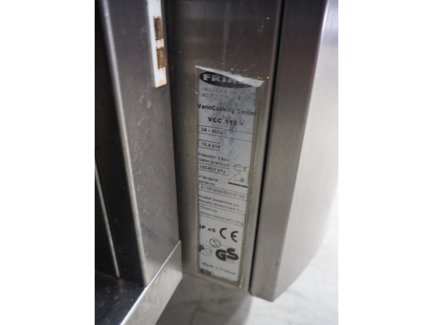 Frima VarioCooking Center, model: VCC 112+, serial number: E11PG09058005166, 400 V, 3 Ph, 19.4 kW, dimensions: 1200 mm x 800 mm x 1050 mm.